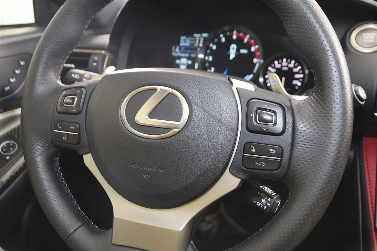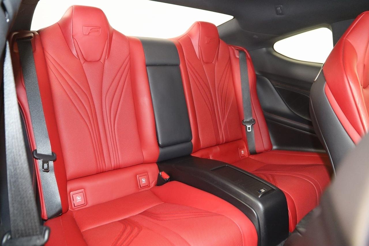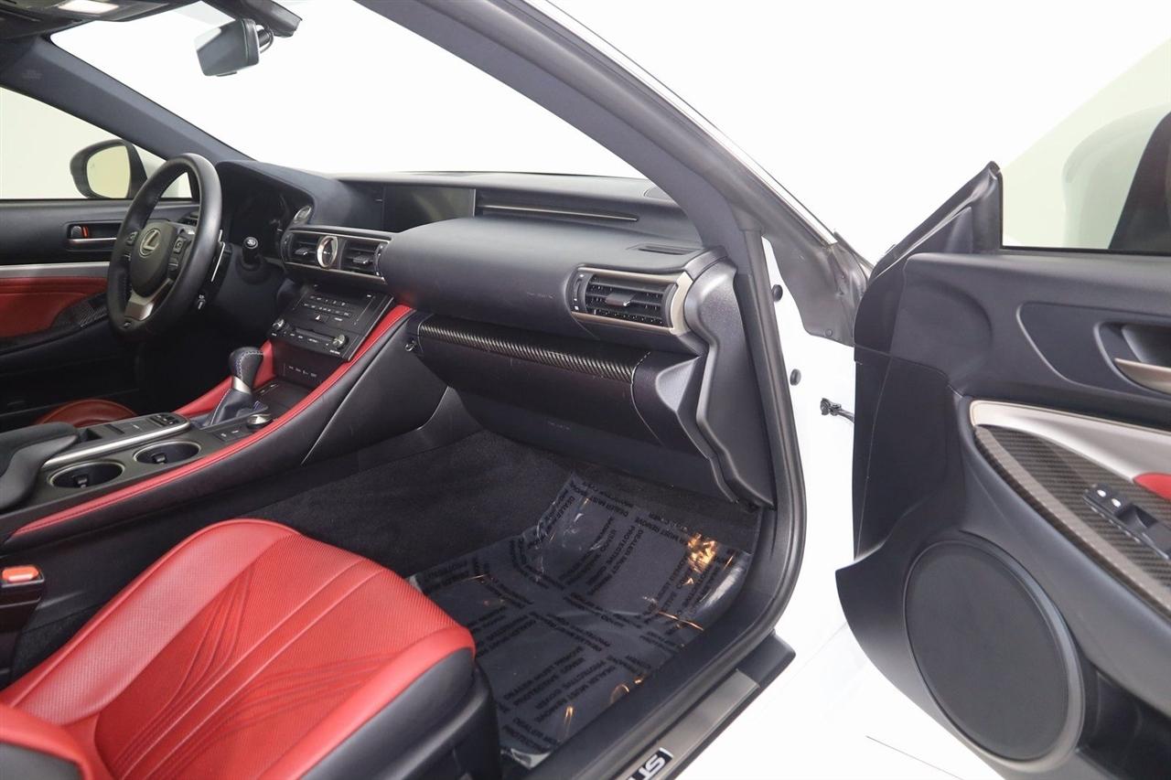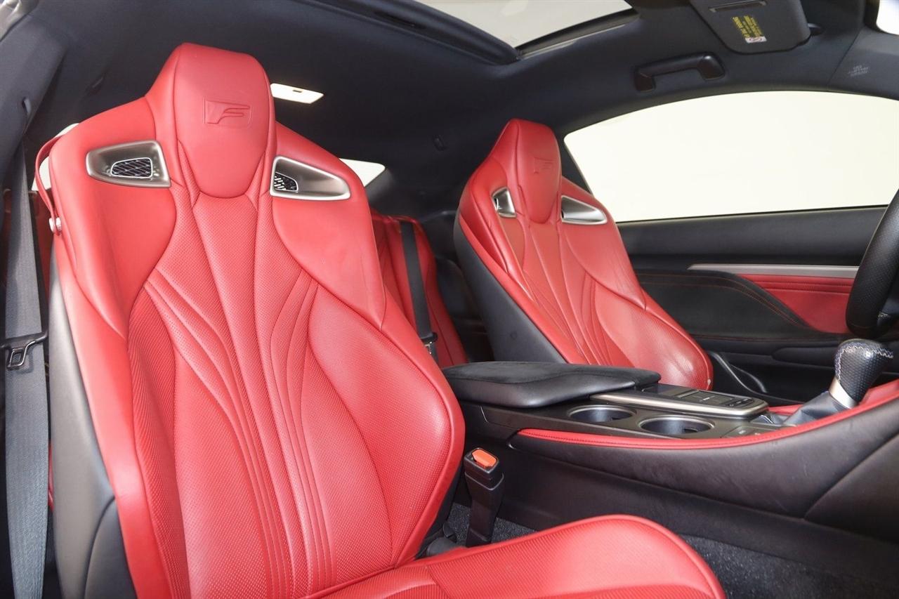 Navigation, Back Up Camera, Bluetooth, Sun/Moon Roof, Touch Screen, Heated Front Seats, Ventilated Front Seats, Blind Spot, RC F, 2D Coupe, 5.0L DOHC, 8-Speed Automatic with Direct Shift, RWD, Ultra White, F-Sport Rioja Red w/F Sport Nuluxe Seat Trim, Back-Up Monitor w/Dynamic Grid Lines, Blind Spot Monitor w/Rear Cross Traffic Alert, Carbon Fiber Interior Trim, Driver Seat Memory, Electro-Chromic Auto Dimming Mirrors, Glove Box w/Key, Heated & Vented Driver & Passenger Seats, LED Headlamps, Lexus Enform, Navigation System, Navigation System Package, Park Assist, Premium Package, Radio: AM/FM/In-Dash CD/DVD & Navigation, Rain Sensing Wipers, Speed Sensing Rear Spoiler, Water Repellent Side Windows.