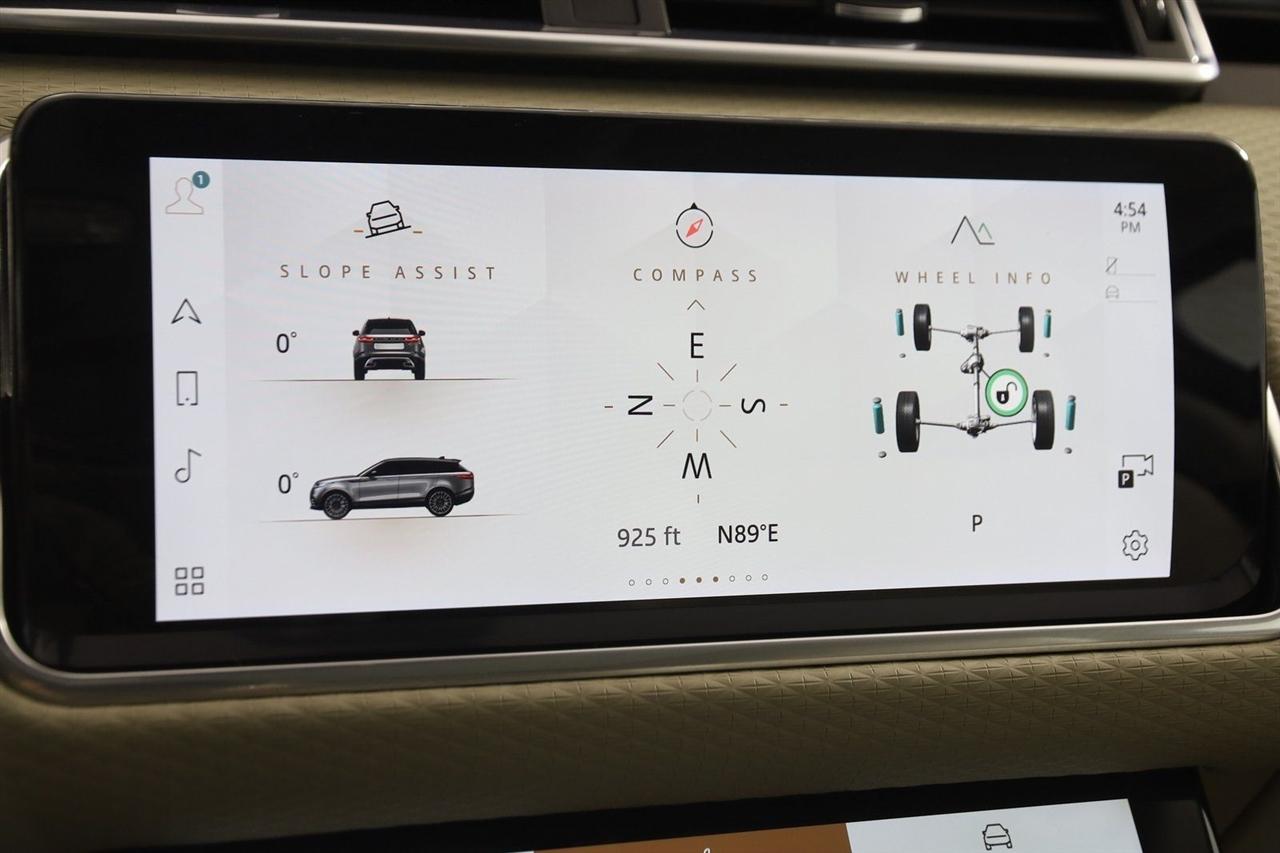 Navigation, Back Up Camera, Bluetooth, Panoramic Roof, Touch Screen, Heated Front Seats, Heated Steering Wheel, Blind Spot, Apple CarPlay/Android Auto, Range Rover Velar P250 R-Dynamic S, 4D Sport Utility, 2.0L I4 Turbocharged DOHC 16V LEV3-SULEV30 247hp, 8-Speed Automatic, 4WD, Byron Blue Metallic, Acorn Leather, Cold Climate Pack, Heated Steering Wheel, Heated Windshield, Navigation System, Navigation system: Connected Navigation PIVI Pro.