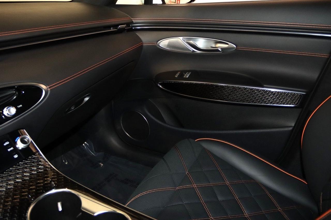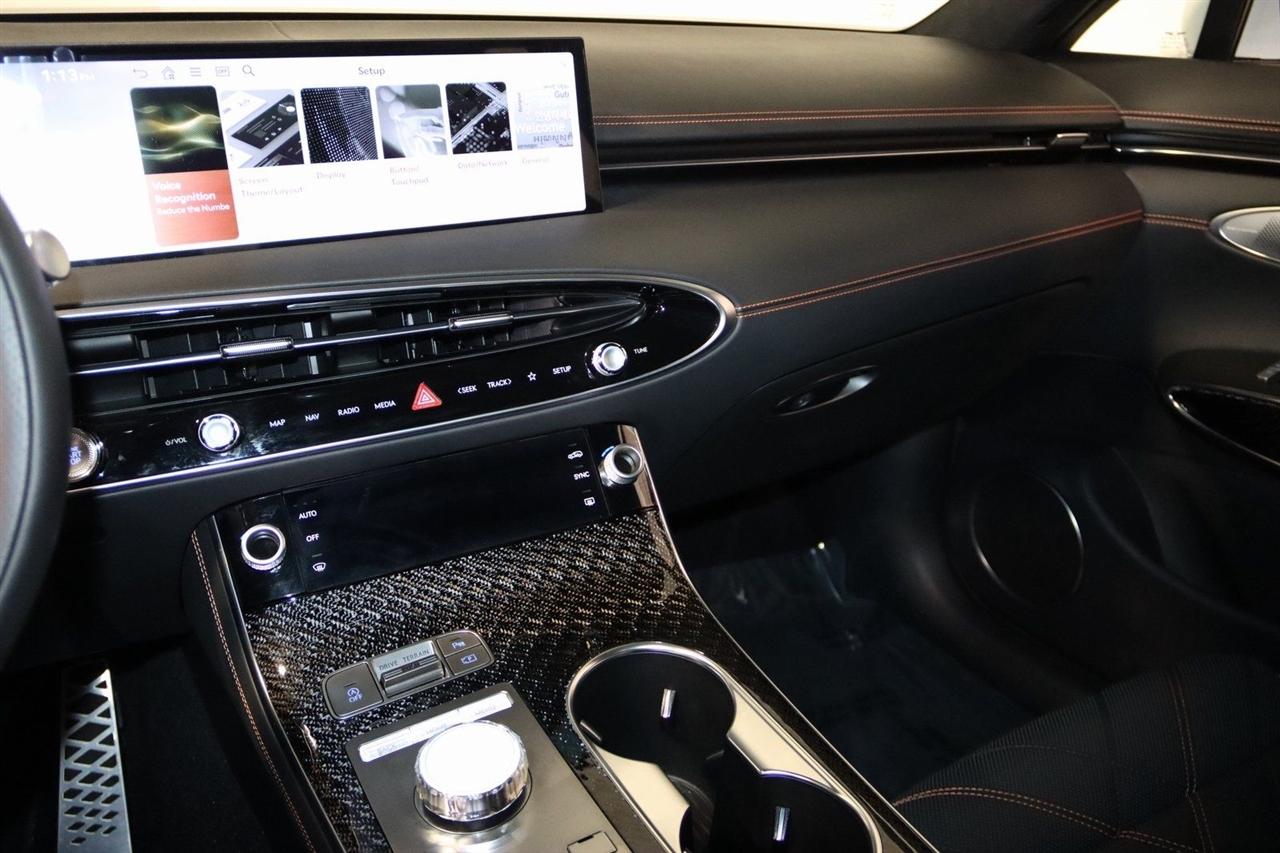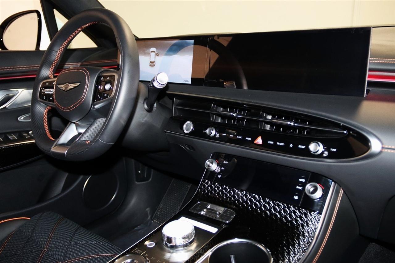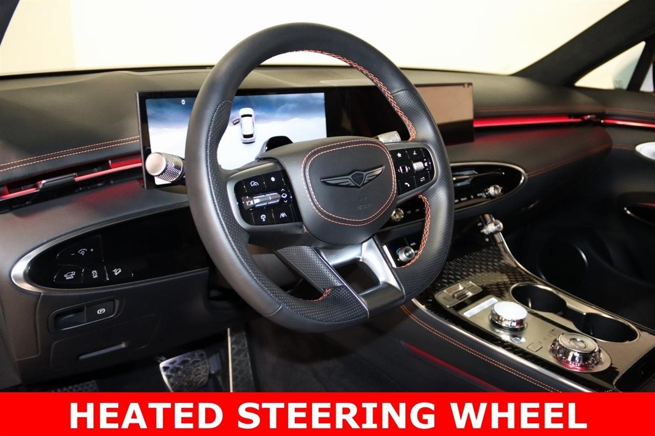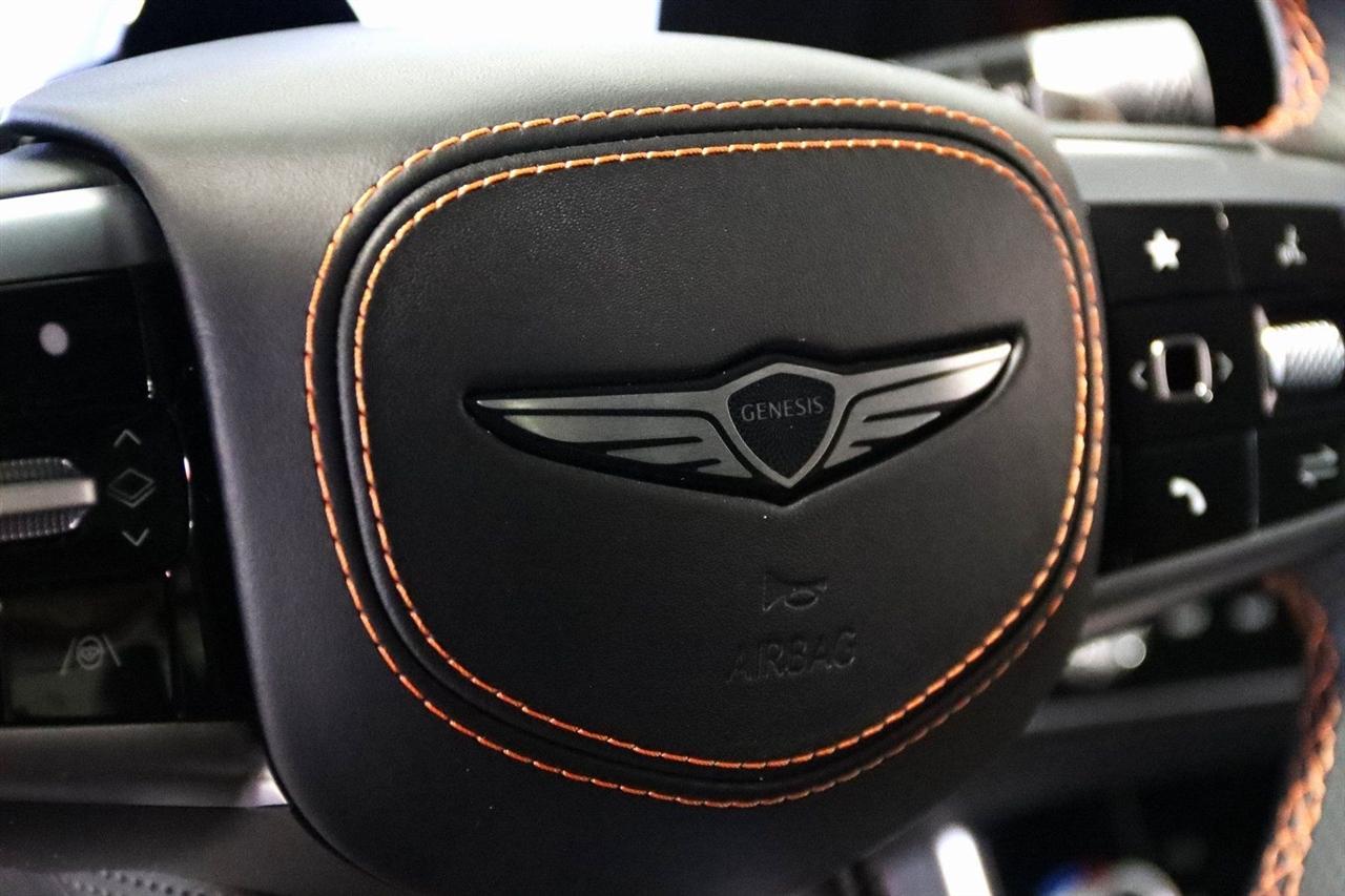 Navigation, Bluetooth, Back Up Camera, Panoramic Roof, Heated Seats, Touch Screen, 16 Speakers, 4-Wheel Disc Brakes, ABS brakes, Adaptive suspension, Air Conditioning, Alloy wheels, AM/FM radio: SiriusXM, Android Auto & Apple CarPlay, Anti-whiplash front head restraints, Auto High-beam Headlights, Auto-dimming door mirrors, Auto-dimming Rear-View mirror, Automatic temperature control, Brake assist, Bumpers: body-color, Cargo Cover, Cargo Net, Cargo Tray, Delay-off headlights, Driver door bin, Driver vanity mirror, Dual front impact airbags, Dual front side impact airbags, Electronic Stability Control, Emergency communication system: Genesis Connected Services, Exterior Parking Camera Rear, First Aid Kit, Four wheel independent suspension, Front anti-roll bar, Front Bucket Seats, Front Center Armrest w/Storage, Front dual zone A/C, Front reading lights, Fully automatic headlights, Garage door transmitter: HomeLink, Heads-Up Display, Heated and Ventilated Front Bucket Seats, Heated door mirrors, Heated front seats, Heated rear seats, Heated steering wheel, Illuminated entry, Knee airbag, Leather steering wheel, Low tire pressure warning, Memory seat, Nappa Leather Seating Surfaces, Navigation System, NFC Key Card, Occupant sensing airbag, Option Group 01, Outside temperature display, Overhead airbag, Overhead console, Panic alarm, Passenger door bin, Passenger vanity mirror, Power door mirrors, Power driver seat, Power Liftgate, Power moonroof, Power passenger seat, Power steering, Power windows, Radio: 14.5" Navigation System with AM/FM/HD, Rain sensing wipers, Rear air conditioning, Rear anti-roll bar, Rear reading lights, Rear seat center armrest, Rear window defroster, Rear window wiper, Remote keyless entry, Security system, Speed control, Speed-sensing steering, Speed-Sensitive Wipers, Split folding rear seat, Spoiler, Steering wheel memory, Steering wheel mounted audio controls, Tachometer, Telescoping steering wheel, Tilt steering wheel, Traction control, Trip computer, Turn signal indicator mirrors, Variably intermittent wipers, Ventilated front seats, Wheels: 21" Dark Sputtering Alloy.
