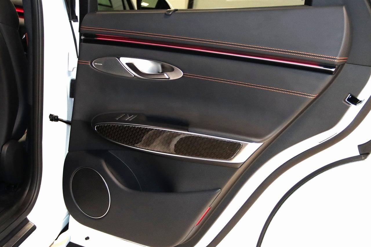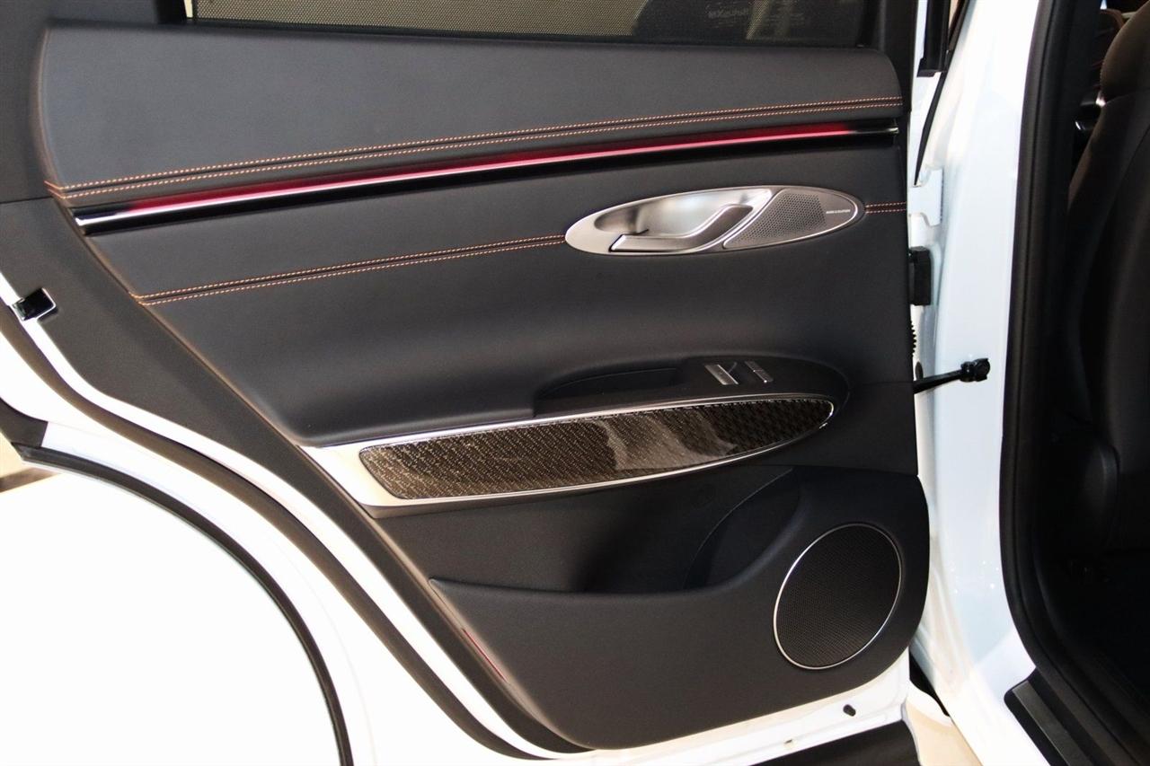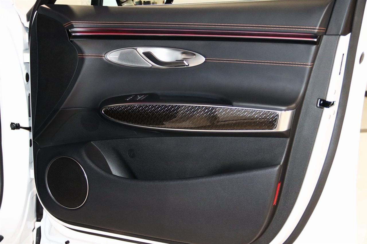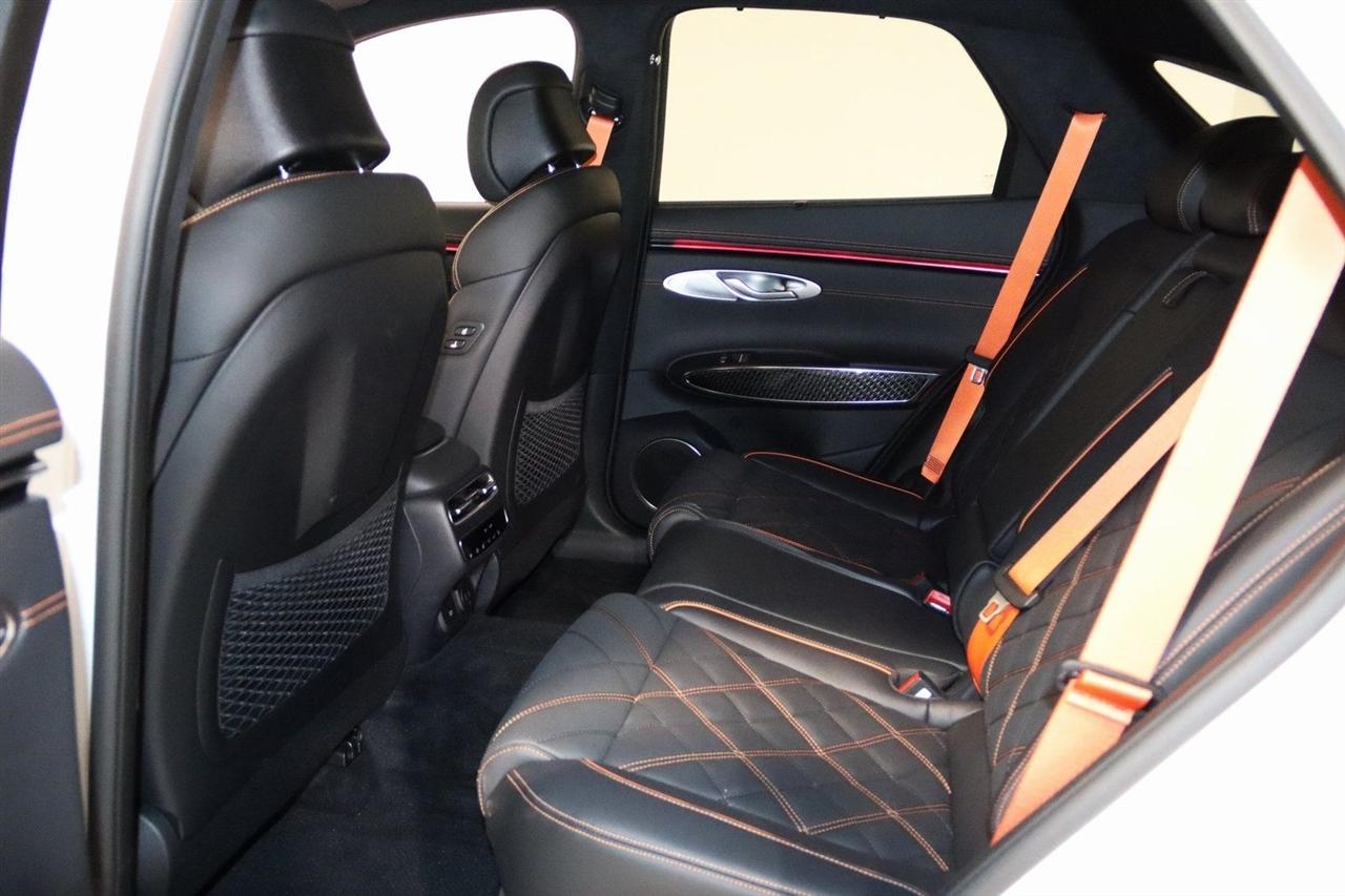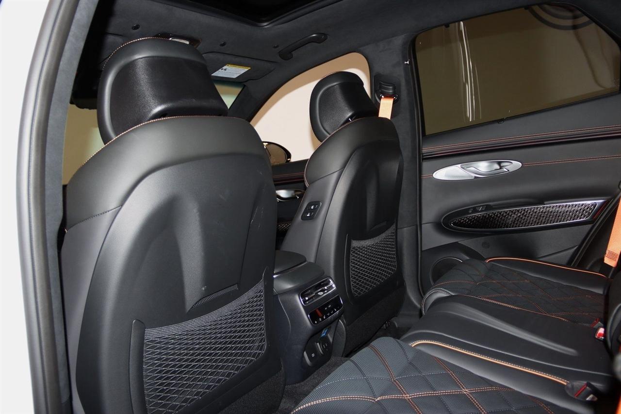 Navigation, Bluetooth, Back Up Camera, Panoramic Roof, Heated Seats, Touch Screen, 16 Speakers, 4-Wheel Disc Brakes, ABS brakes, Adaptive suspension, Air Conditioning, Alloy wheels, AM/FM radio: SiriusXM, Android Auto & Apple CarPlay, Anti-whiplash front head restraints, Auto High-beam Headlights, Auto-dimming door mirrors, Auto-dimming Rear-View mirror, Automatic temperature control, Brake assist, Bumpers: body-color, Cargo Cover, Cargo Net, Cargo Tray, Delay-off headlights, Driver door bin, Driver vanity mirror, Dual front impact airbags, Dual front side impact airbags, Electronic Stability Control, Emergency communication system: Genesis Connected Services, Exterior Parking Camera Rear, First Aid Kit, Four wheel independent suspension, Front anti-roll bar, Front Bucket Seats, Front Center Armrest w/Storage, Front dual zone A/C, Front reading lights, Fully automatic headlights, Garage door transmitter: HomeLink, Heads-Up Display, Heated and Ventilated Front Bucket Seats, Heated door mirrors, Heated front seats, Heated rear seats, Heated steering wheel, Illuminated entry, Knee airbag, Leather steering wheel, Low tire pressure warning, Memory seat, Nappa Leather Seating Surfaces, Navigation System, NFC Key Card, Occupant sensing airbag, Option Group 01, Outside temperature display, Overhead airbag, Overhead console, Panic alarm, Passenger door bin, Passenger vanity mirror, Power door mirrors, Power driver seat, Power Liftgate, Power moonroof, Power passenger seat, Power steering, Power windows, Radio: 14.5" Navigation System with AM/FM/HD, Rain sensing wipers, Rear air conditioning, Rear anti-roll bar, Rear reading lights, Rear seat center armrest, Rear window defroster, Rear window wiper, Remote keyless entry, Security system, Speed control, Speed-sensing steering, Speed-Sensitive Wipers, Split folding rear seat, Spoiler, Steering wheel memory, Steering wheel mounted audio controls, Tachometer, Telescoping steering wheel, Tilt steering wheel, Traction control, Trip computer, Turn signal indicator mirrors, Variably intermittent wipers, Ventilated front seats, Wheels: 21" Dark Sputtering Alloy.