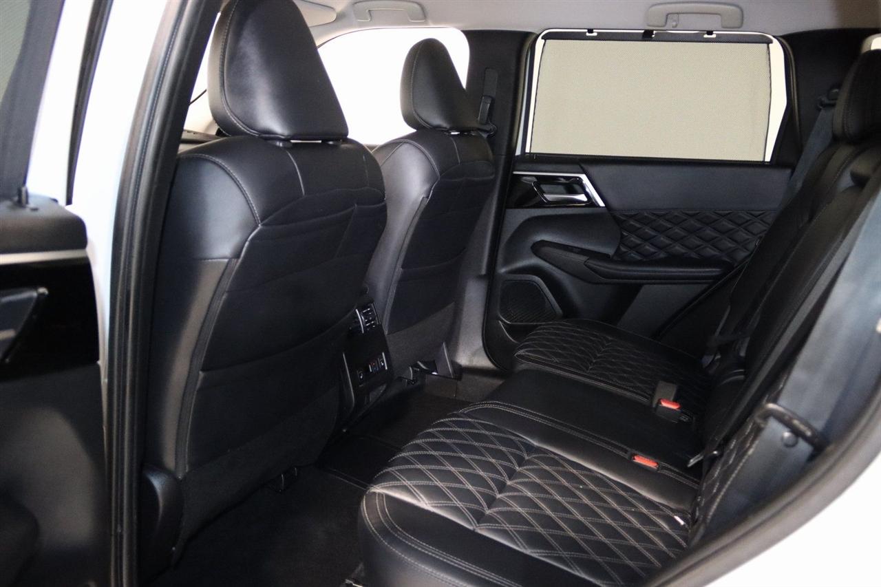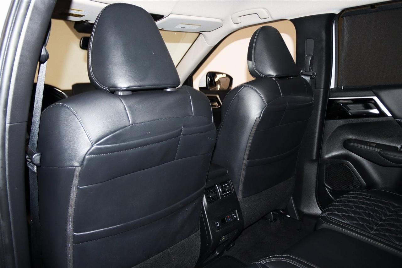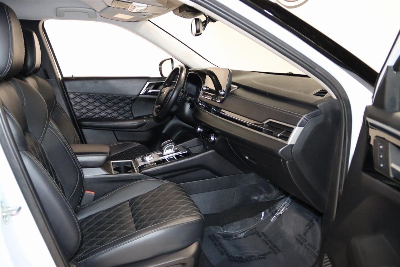 Navigation, Bluetooth, Back Up Camera, 3rd Row, 3rd row seats: split-bench, 4-Wheel Disc Brakes, 6 Speakers, ABS brakes, Active Cruise Control, Air Conditioning, Alloy wheels, AM/FM radio: SiriusXM, Android Auto & Apple CarPlay, Auto High-beam Headlights, Auto-dimming Rear-View mirror, Automatic temperature control, Axle Ratio: TBD, Brake assist, Bumpers: body-color, Driver door bin, Driver vanity mirror, Dual front impact airbags, Dual front side impact airbags, Electronic Stability Control, Emergency communication system: Mitsubishi Connect w/ 24-month trial, Four wheel independent suspension, Front anti-roll bar, Front Bucket Seats, Front Center Armrest w/Storage, Front dual zone A/C, Front fog lights, Front reading lights, Fully automatic headlights, Headlight cleaning, Heated door mirrors, Heated Front Bucket Seats, Heated front seats, Heated rear seats, Illuminated entry, Knee airbag, Leather Seating Surfaces, Leather Shift Knob, Leather steering wheel, Low tire pressure warning, Memory seat, Navigation System, Occupant sensing airbag, Outside temperature display, Overhead airbag, Overhead console, Panic alarm, Passenger door bin, Passenger vanity mirror, Power door mirrors, Power driver seat, Power Liftgate, Power passenger seat, Power steering, Power windows, Radio data system, Radio: AM/FM 9" Smartphone Link Display Audio, Rain sensing wipers, Rear air conditioning, Rear anti-roll bar, Rear seat center armrest, Rear side impact airbag, Rear window defroster, Rear window wiper, Reclining 3rd row seat, Remote keyless entry, Security system, Speed control, Speed-Sensitive Wipers, Split folding rear seat, Spoiler, Steering wheel mounted audio controls, Tachometer, Telescoping steering wheel, Tilt steering wheel, Traction control, Trip computer, Turn signal indicator mirrors, Variably intermittent wipers, Wheels: 20" Two-Tone Alloy. Priced below KBB Fair Purchase Price!