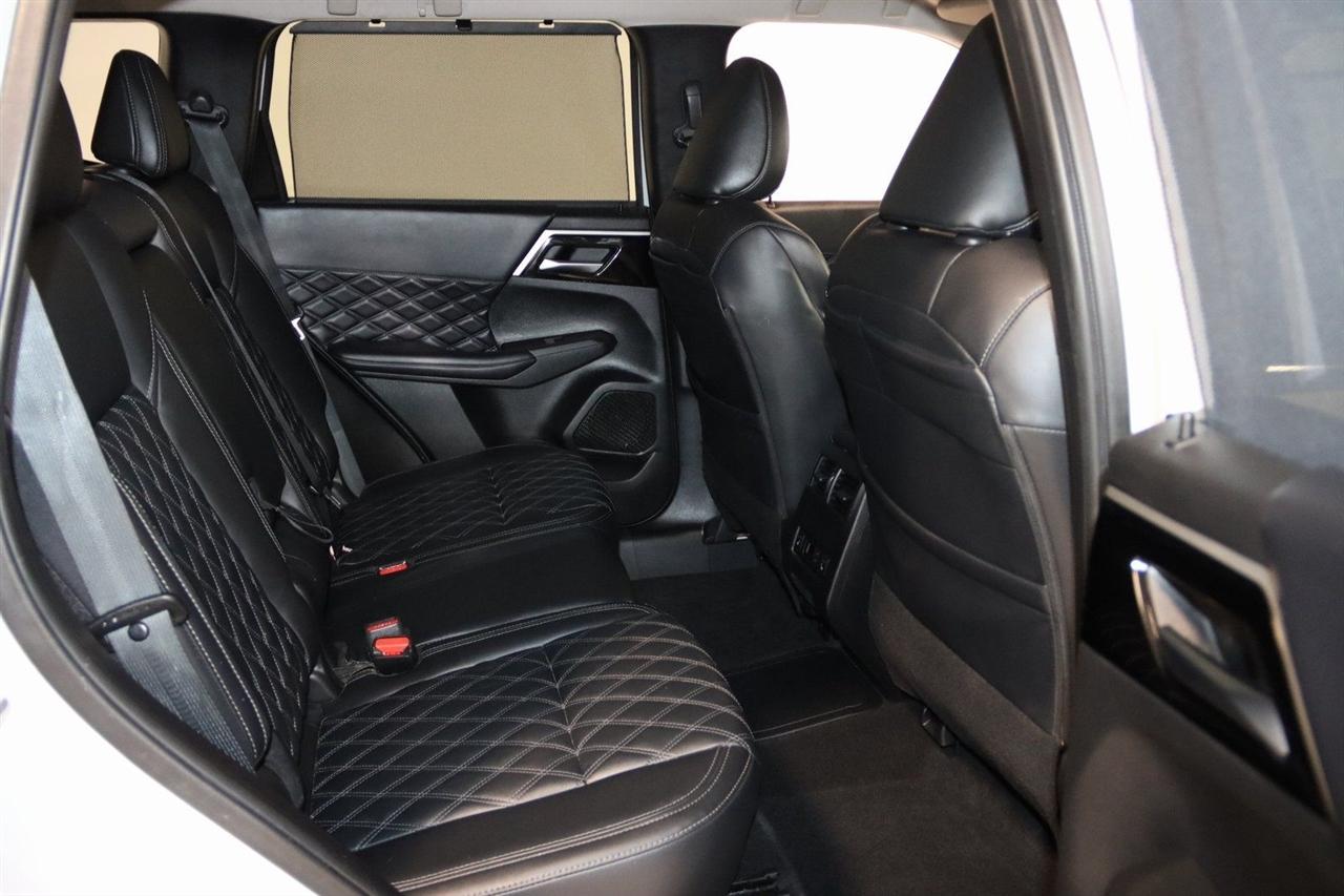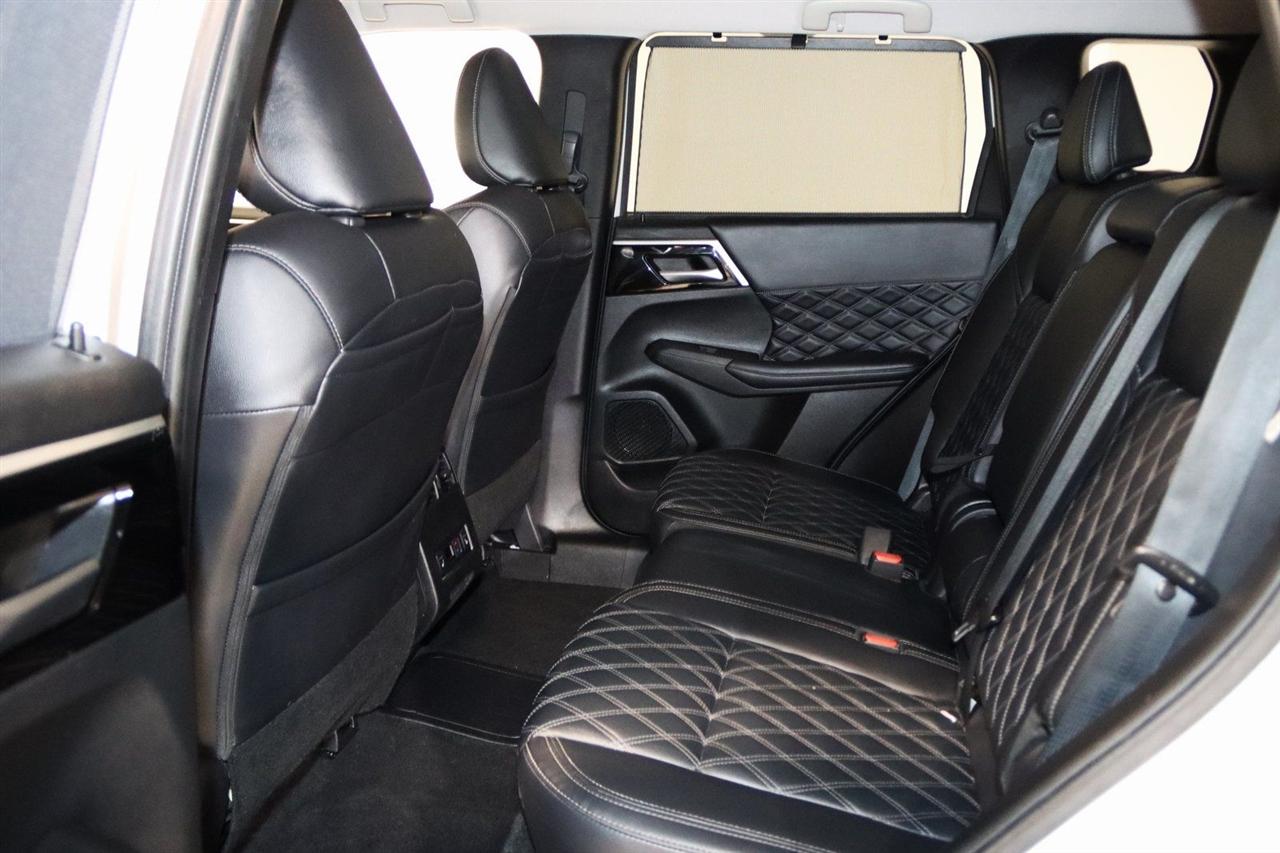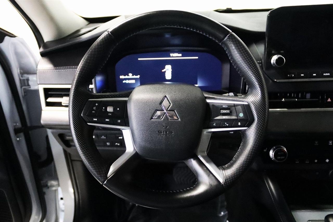 Navigation, Bluetooth, Back Up Camera, 3rd Row, 3rd row seats: split-bench, 4-Wheel Disc Brakes, 6 Speakers, ABS brakes, Active Cruise Control, Air Conditioning, Alloy wheels, AM/FM radio: SiriusXM, Android Auto & Apple CarPlay, Auto High-beam Headlights, Auto-dimming Rear-View mirror, Automatic temperature control, Axle Ratio: TBD, Brake assist, Bumpers: body-color, Driver door bin, Driver vanity mirror, Dual front impact airbags, Dual front side impact airbags, Electronic Stability Control, Emergency communication system: Mitsubishi Connect w/ 24-month trial, Four wheel independent suspension, Front anti-roll bar, Front Bucket Seats, Front Center Armrest w/Storage, Front dual zone A/C, Front fog lights, Front reading lights, Fully automatic headlights, Headlight cleaning, Heated door mirrors, Heated Front Bucket Seats, Heated front seats, Heated rear seats, Illuminated entry, Knee airbag, Leather Seating Surfaces, Leather Shift Knob, Leather steering wheel, Low tire pressure warning, Memory seat, Navigation System, Occupant sensing airbag, Outside temperature display, Overhead airbag, Overhead console, Panic alarm, Passenger door bin, Passenger vanity mirror, Power door mirrors, Power driver seat, Power Liftgate, Power passenger seat, Power steering, Power windows, Radio data system, Radio: AM/FM 9" Smartphone Link Display Audio, Rain sensing wipers, Rear air conditioning, Rear anti-roll bar, Rear seat center armrest, Rear side impact airbag, Rear window defroster, Rear window wiper, Reclining 3rd row seat, Remote keyless entry, Security system, Speed control, Speed-Sensitive Wipers, Split folding rear seat, Spoiler, Steering wheel mounted audio controls, Tachometer, Telescoping steering wheel, Tilt steering wheel, Traction control, Trip computer, Turn signal indicator mirrors, Variably intermittent wipers, Wheels: 20" Two-Tone Alloy. Priced below KBB Fair Purchase Price!