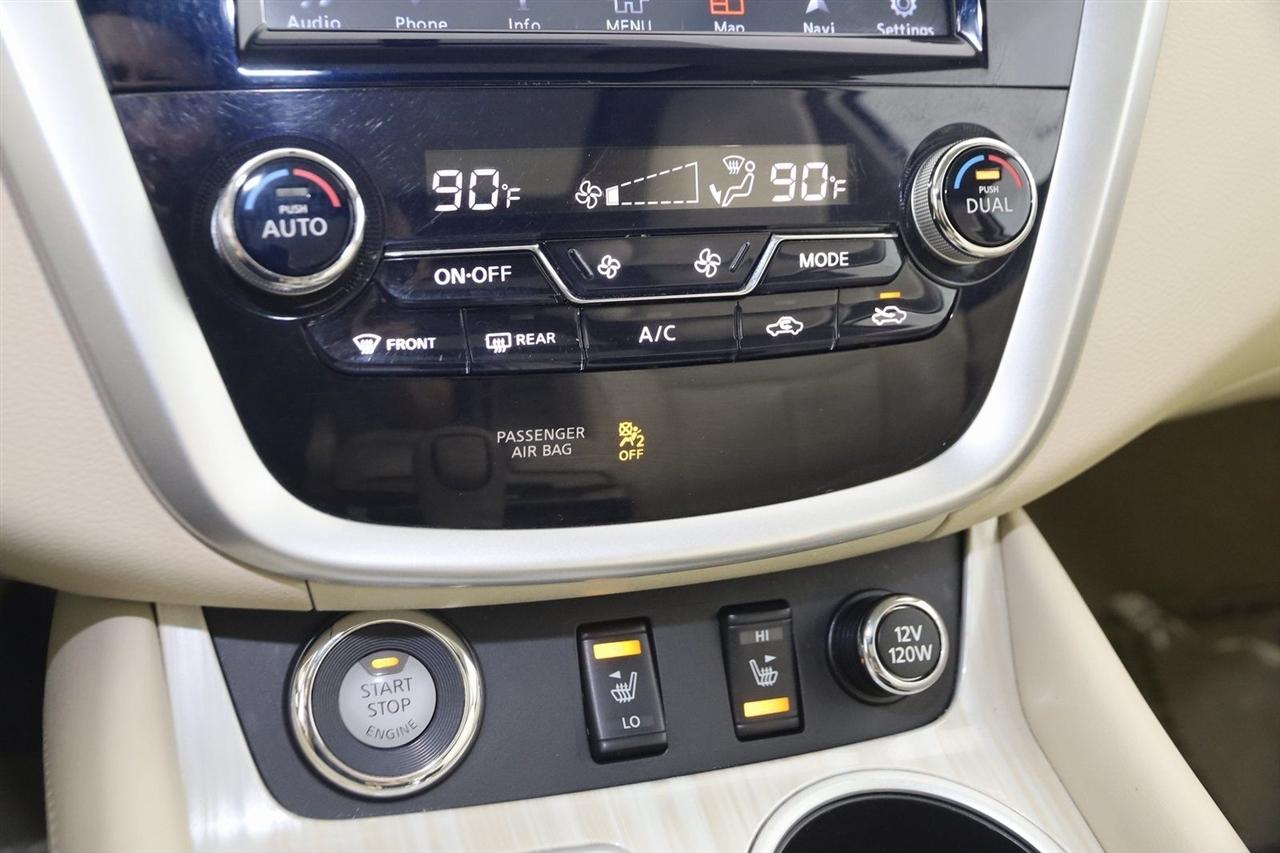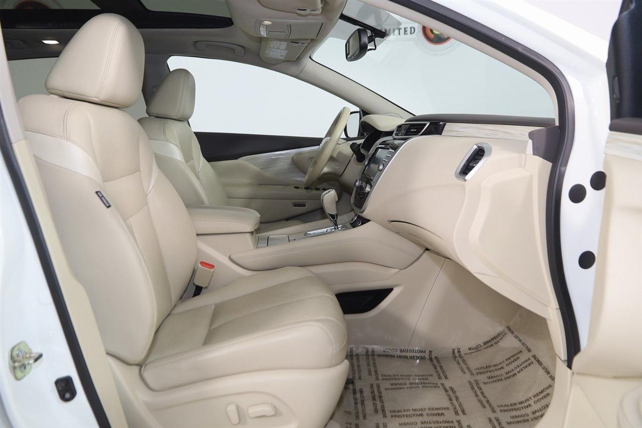 Navigation, Back Up Camera, Bluetooth, Panoramic Roof, Touch Screen, Heated Front Seats, Murano SL, 4D Sport Utility, 3.5L V6 DOHC, CVT with Xtronic, AWD, Pearl White, Beige Leather, Intelligent Cruise Control, Navigation System, Power Panoramic Moonroof, Predictive Forward Collision Warning (PFCW), SL Technology Package.
