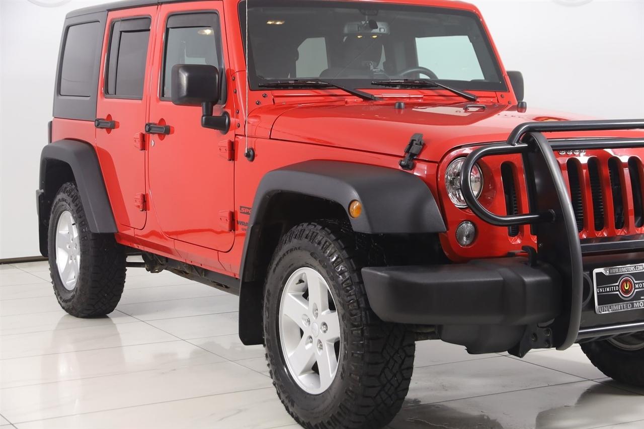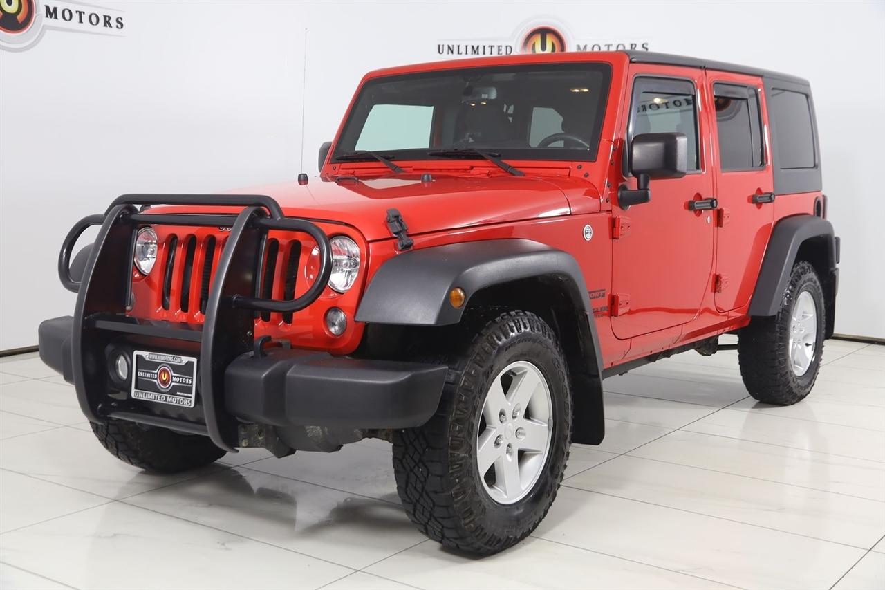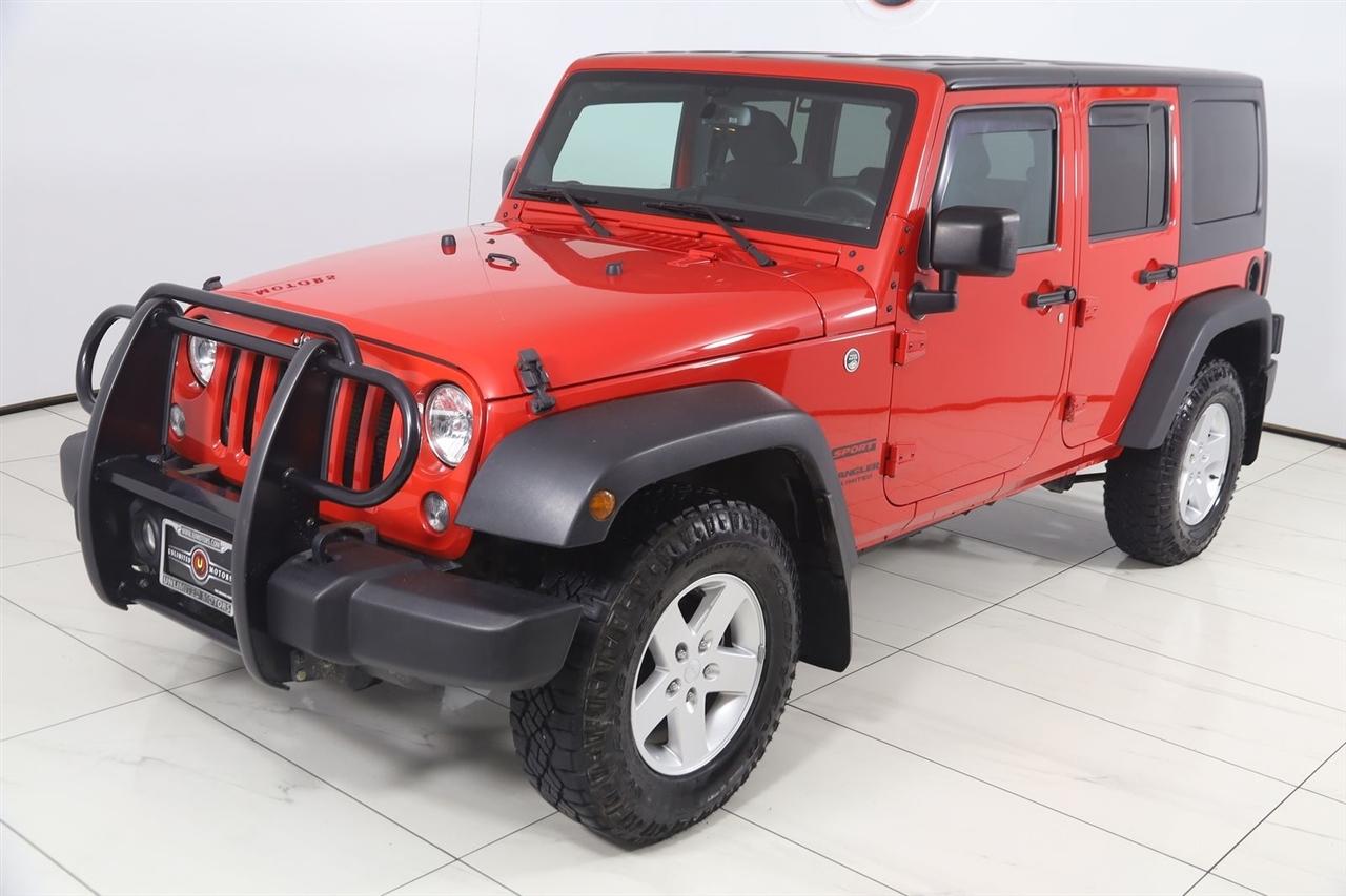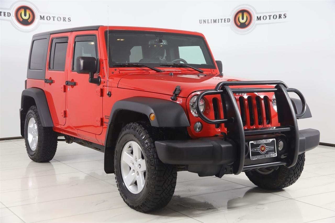 Sun/Moon Roof, Winch, Wrangler Unlimited Sport, 4D Sport Utility, 3.6L V6 24V VVT, 5-Speed Automatic, 4WD, Firecracker Red Clearcoat, Black Cloth, 17" x 7.5" Aluminum Wheels, Auto-Dimming Mirror w/Reading Lamp, Class II Receiver Hitch, Connectivity Group, Deep Tint Sunscreen Windows, Front 1-Touch Down Power Windows, Leather Wrapped Steering Wheel, Power Convenience Group, Power Heated Mirrors, Power Locks, Quick Order Package 24S, Remote Keyless Entry, Remote USB Port, Security Alarm, Tire Pressure Monitoring Display, Trailer Tow Group, Trailer Tow w/4-Pin Connector Wiring, Uconnect Voice Command w/Bluetooth, Vehicle Information Center.