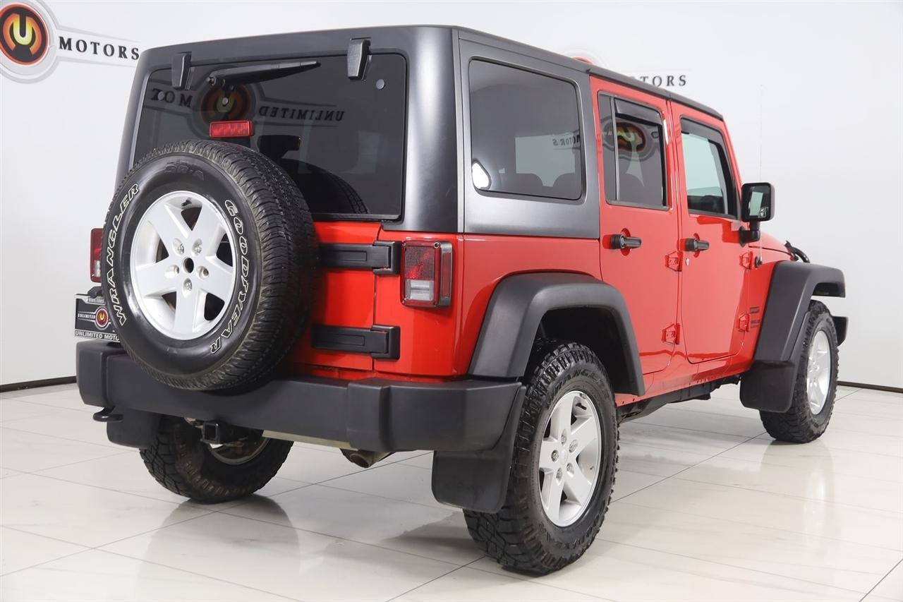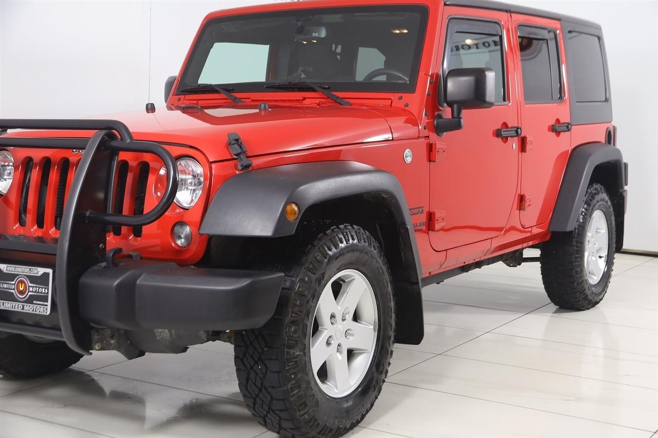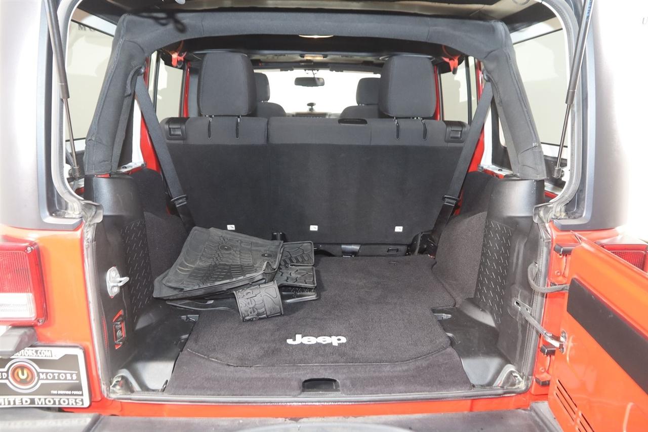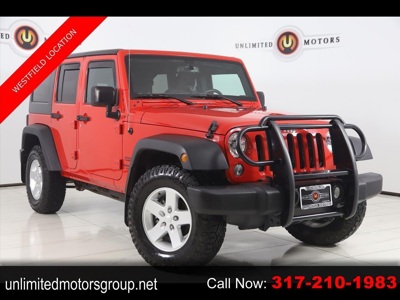 Sun/Moon Roof, Winch, Wrangler Unlimited Sport, 4D Sport Utility, 3.6L V6 24V VVT, 5-Speed Automatic, 4WD, Firecracker Red Clearcoat, Black Cloth, 17" x 7.5" Aluminum Wheels, Auto-Dimming Mirror w/Reading Lamp, Class II Receiver Hitch, Connectivity Group, Deep Tint Sunscreen Windows, Front 1-Touch Down Power Windows, Leather Wrapped Steering Wheel, Power Convenience Group, Power Heated Mirrors, Power Locks, Quick Order Package 24S, Remote Keyless Entry, Remote USB Port, Security Alarm, Tire Pressure Monitoring Display, Trailer Tow Group, Trailer Tow w/4-Pin Connector Wiring, Uconnect Voice Command w/Bluetooth, Vehicle Information Center.