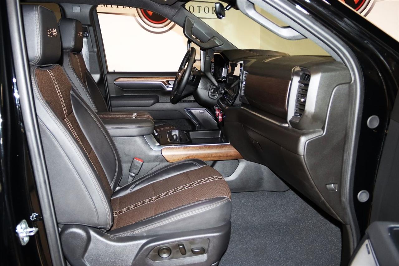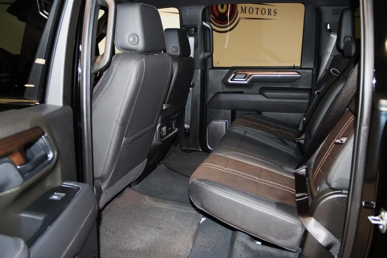 Bluetooth, Back Up Camera, Towing, Heated Seats, Touch Screen, 10-Way Power Driver Seat Adjuster with Lumbar, 10-Way Power Passenger Seat Adjuster with Lumbar, 120-Volt Bed Mounted Power Outlet, 120-Volt Interior Power Outlet, 15" Diagonal Multicolor Head-Up Display, 170 Amp Alternator, 220 Amp Alternator, 3.73 Rear Axle Ratio, 4-Wheel Disc Brakes, 6" Rectangular Chromed Tubular Assist Steps, 7 Speakers, 720 Cold-Cranking Amps Heavy-Duty Battery, ABS brakes, Air Conditioning, Alloy wheels, AM/FM radio: SiriusXM with 360L, Apple CarPlay/Android Auto, Auto High-beam Headlights, Auto-dimming door mirrors, Auto-Dimming Inside Rear-View Mirror, Auto-dimming Rear-View mirror, Automatic temperature control, Bed View Camera with Two Trailer Camera Provisions, Black Chevytec Spray-on Bedliner, Black Name Plates, Black Tailgate Lettering, Bluetooth® For Phone, Bodyside moldings, BOSE Premium 7-Speaker Sound System, Brake assist, Bumpers: body-color, Chevrolet Connected Access Capable, Chrome Door Handles, Chrome Mirror Caps, Color-Keyed Carpeting Floor Covering, Compass, Dark Essentials Package, Deep-Tinted Glass, Delay-off headlights, Driver door bin, Driver Memory, Driver vanity mirror, Dual front impact airbags, Dual front side impact airbags, Durabed Pickup Bed, Electric Rear-Window Defogger, Electronic Stability Control, Emergency communication system: OnStar, Engine Block Heater, Exhaust Brake, Floor-Mounted Center Console, Front anti-roll bar, Front Black Bowtie Emblem, Front Bucket Seats, Front Carpeted Floor Mats, Front Center Armrest, Front Chrome Recovery Hooks, Front dual zone A/C, Front fog lights, Front LED Fog Lamps, Front Rain-Sensing Wipers, Front reading lights, Front wheel independent suspension, Fully automatic headlights, Garage door transmitter, Genuine wood console insert, Genuine wood dashboard insert, Genuine wood door panel insert, Heated 2nd Row Outboard Seats, Heated door mirrors, Heated Driver and Front Outboard Passenger Seating, Heated front seats, Heated rear seats, Heated Steering Wheel, Heated steering wheel, Hitch Guidance with Hitch View, Illuminated entry, in-Vehicle Trailering App System, Keyless Open and Start, LED Cargo Area Lighting, LED Smoked Amber Roof Marker Lamps, Low tire pressure warning, Manual Tilt and Telescoping Steering Column, Memory seat, Occupant sensing airbag, OnStar Services Capable, Outside temperature display, Overhead airbag, Overhead console, Panic alarm, Passenger door bin, Passenger vanity mirror, Perforated Leather Seat Trim, Polished Exhaust Tip, Power Door Locks, Power door mirrors, Power driver seat, Power Front Windows with Driver Express Up/Down, Power Front Windows with Passenger Express Up/Down, Power passenger seat, Power Rear Windows with Express Down, Power Sliding Rear Window with Defogger, Power steering, Power Up/Down Tailgate Function with Power Lock and Release, Power windows, Preferred Equipment Group 3LZ, Premium audio system: Chevrolet Infotainment 3 Premium, Push Button Start, Radio: Chevrolet Infotainment 3 Premium System, Rain sensing wipers, Rear Camera Mirror, Rear Carpeted Floor Mats, Rear Cross Traffic Alert, Rear reading lights, Rear seat center armrest, Rear step bumper, Rear Wheelhouse Liners, Rear window defroster, Remote keyless entry, Remote Vehicle Starter System, Security system, SiriusXM with 360L Trial Subscription, Speed control, Speed-sensing steering, Split folding rear seat, Standard Tailgate, Steering Wheel Audio Controls, Steering wheel mounted audio controls, Suspension Package, Tachometer, Technology Package, Telescoping steering wheel, Tilt steering wheel, Traction control, Trailer Camera Provisions, Trip computer, Turn signal indicator mirrors, Ultrasonic Front and Rear Park Assist, Unauthorized Entry Theft-Deterrent System, Universal Home Remote, Up-Level Rear Seat with Storage Package, Variably intermittent wipers, Ventilated Driver and Front Passenger Seats, Ventilated front seats, Voltmeter, Wheels: 20" 8-Spoke Polished, W