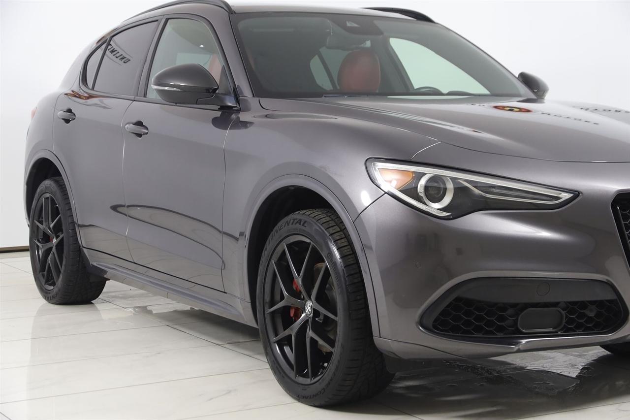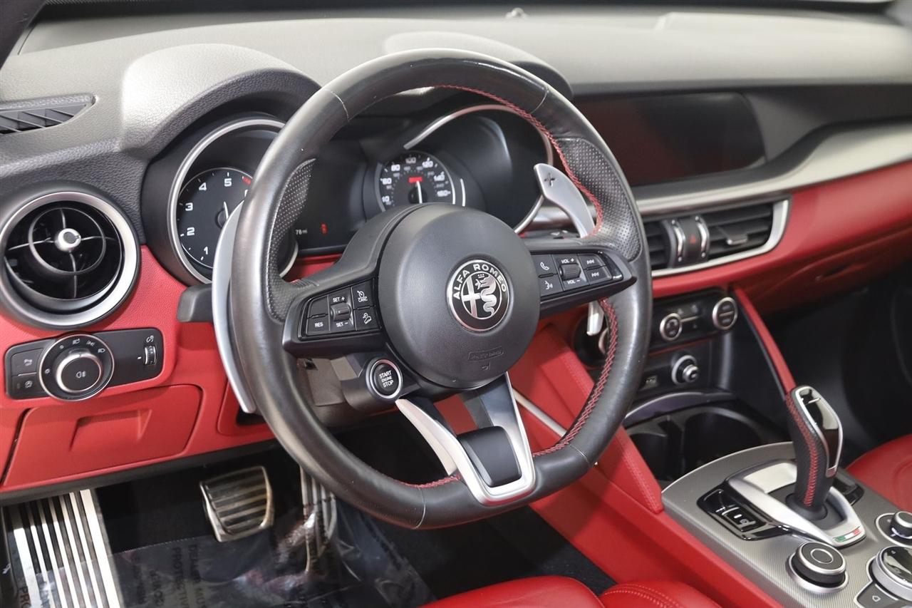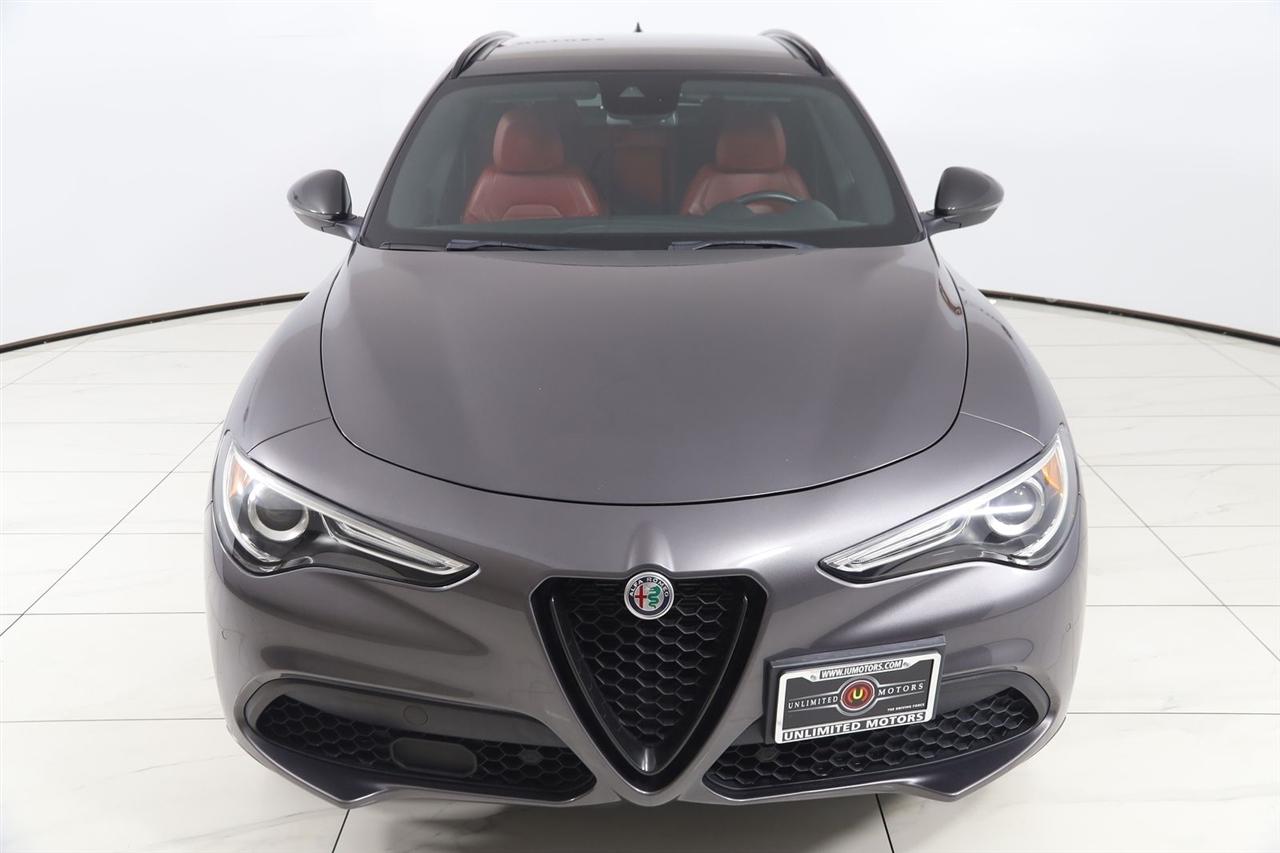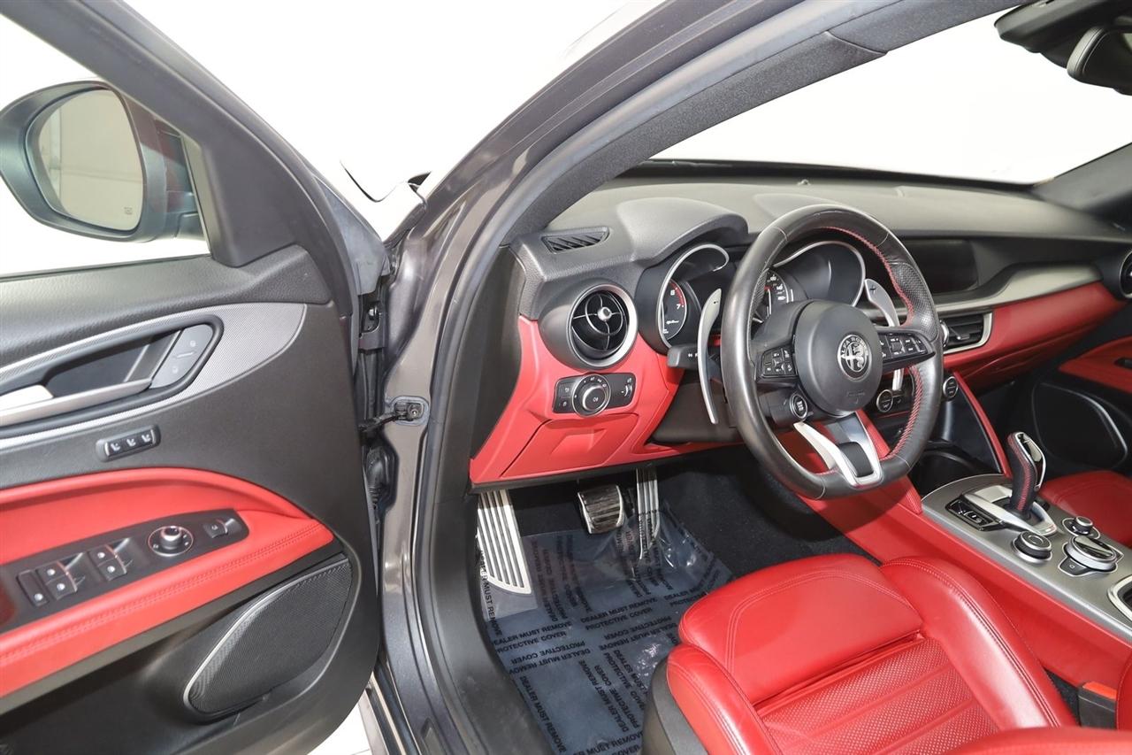 Navigation, Back Up Camera, Bluetooth, Panoramic Roof, Touch Screen, Heated Front Seats, Heated Steering Wheel, Blind Spot, Stelvio Ti Sport, 4D Sport Utility, I4, 8-Speed Automatic, AWD, Vesuvio Gray Metallic, Red/Black Leather, GPS Navigation, Navigation System.