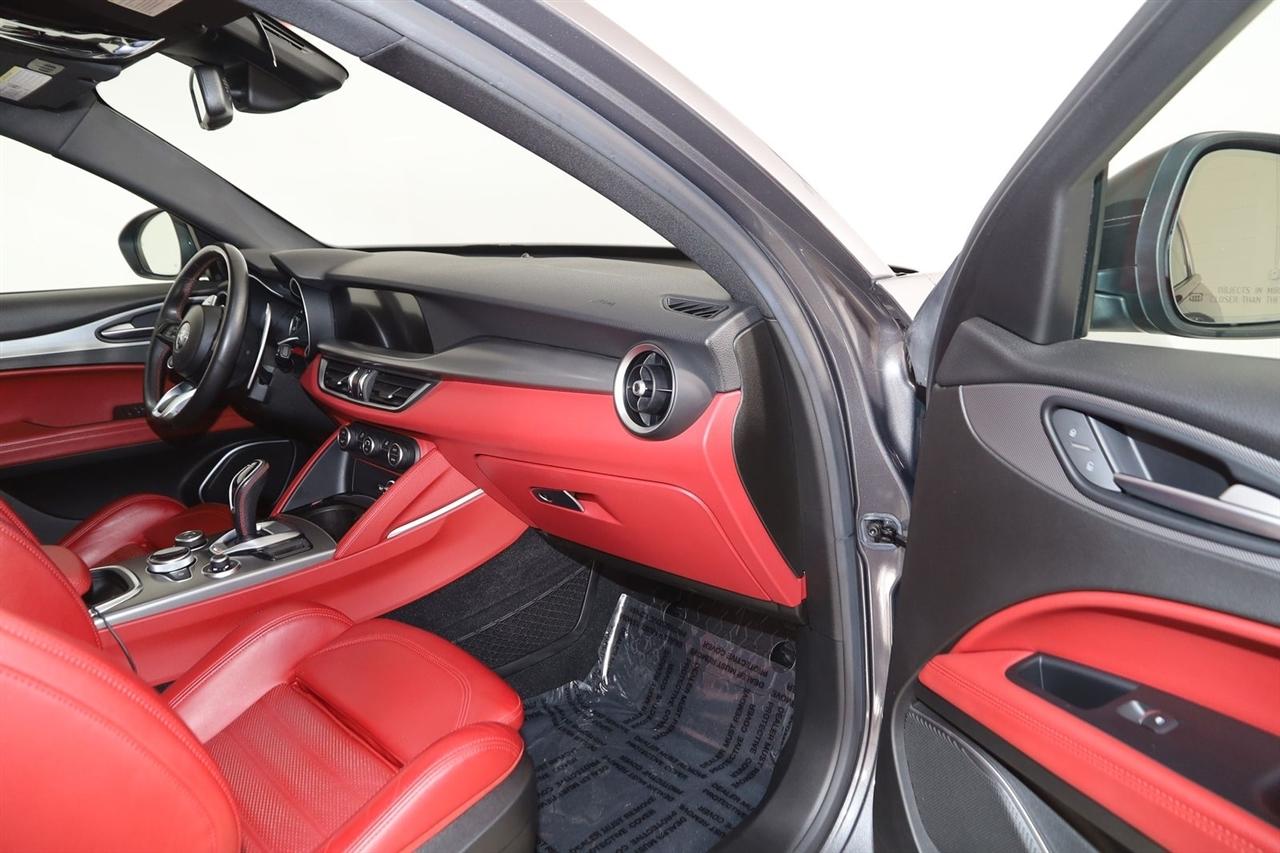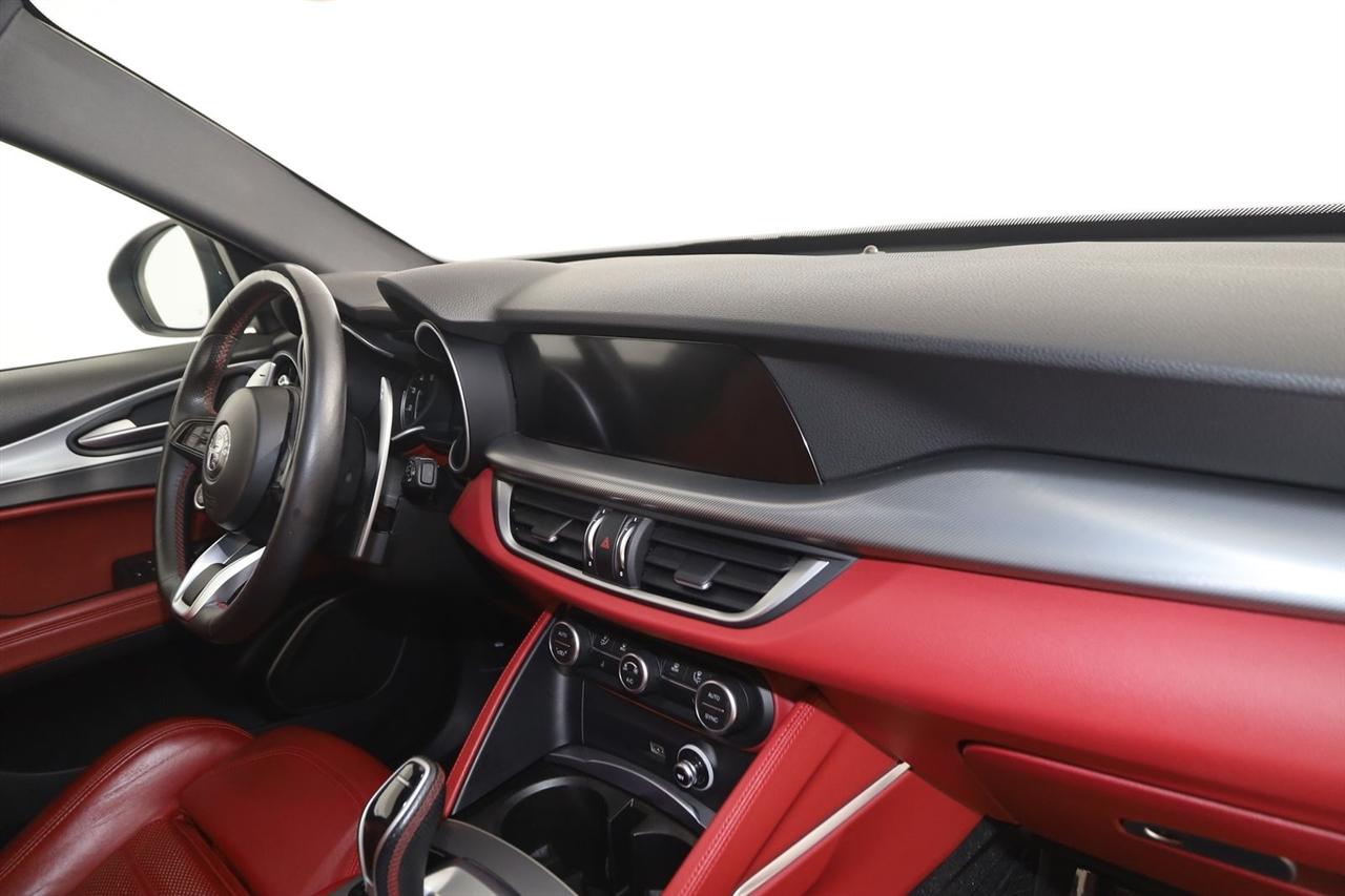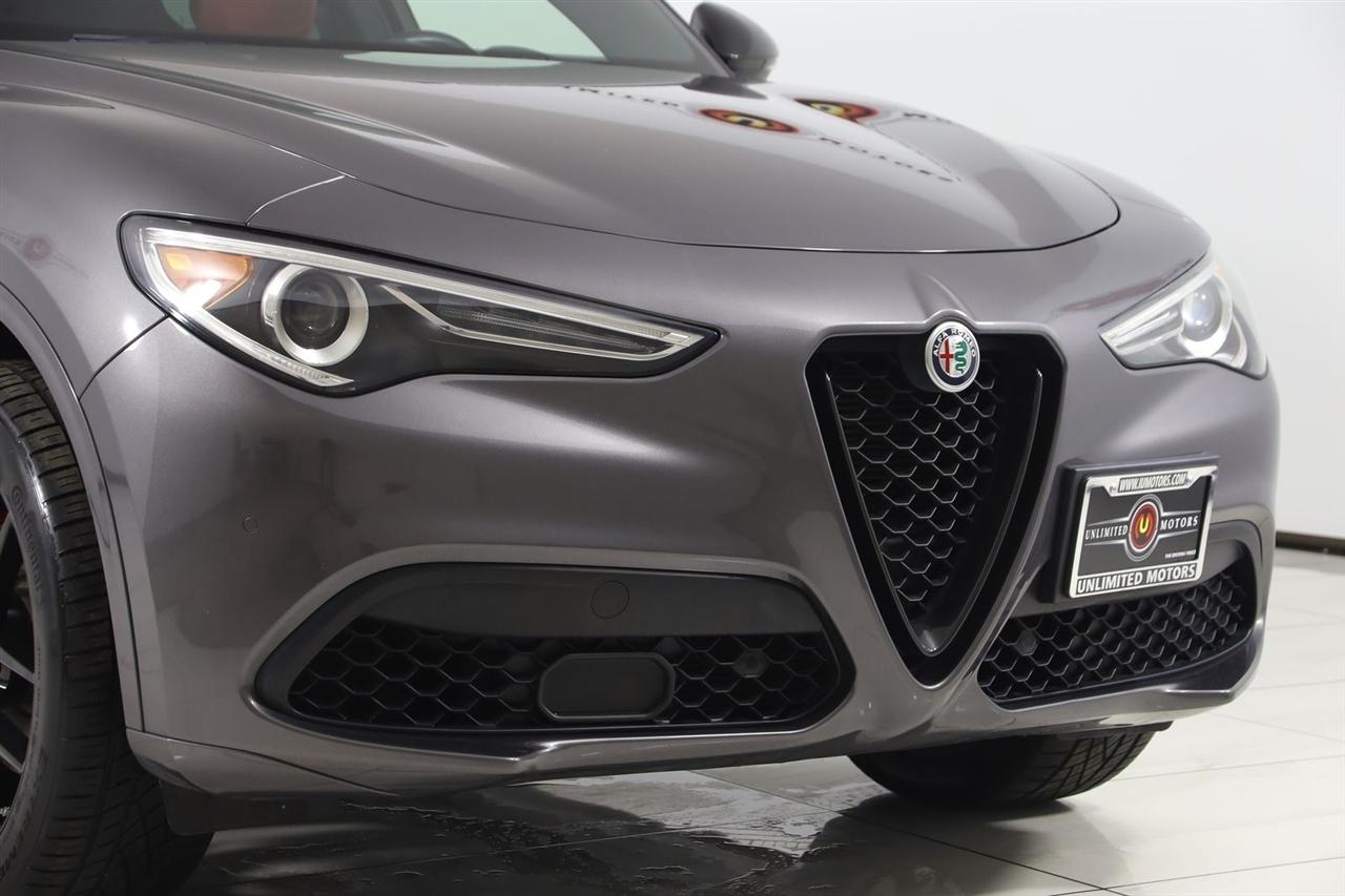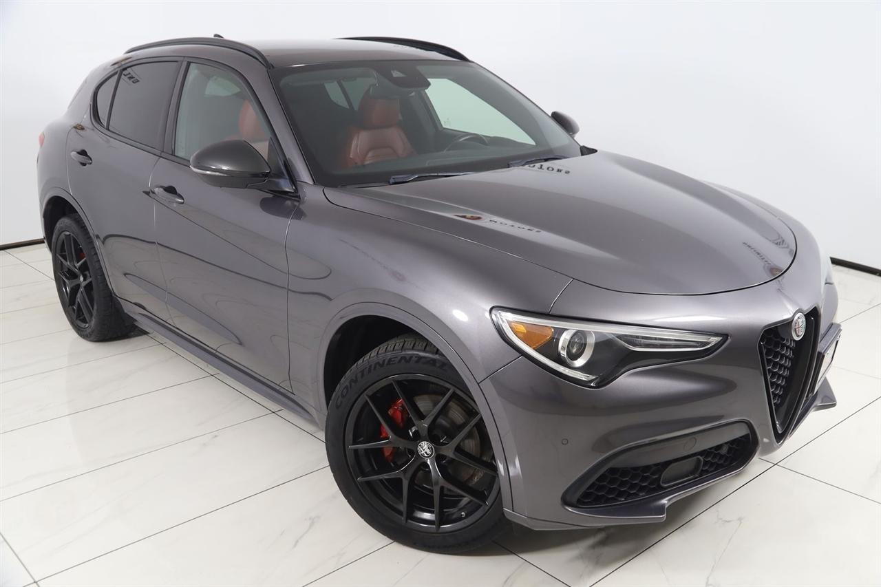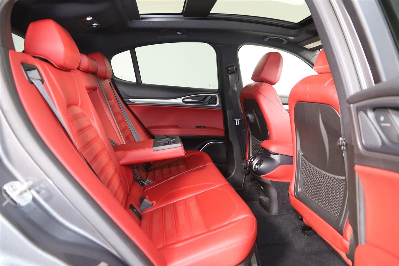 Navigation, Back Up Camera, Bluetooth, Panoramic Roof, Touch Screen, Heated Front Seats, Heated Steering Wheel, Blind Spot, Stelvio Ti Sport, 4D Sport Utility, I4, 8-Speed Automatic, AWD, Vesuvio Gray Metallic, Red/Black Leather, GPS Navigation, Navigation System.