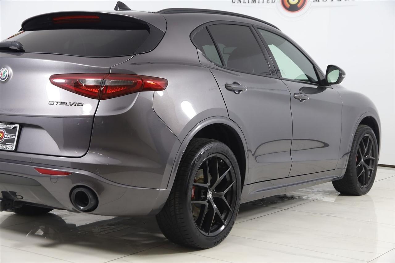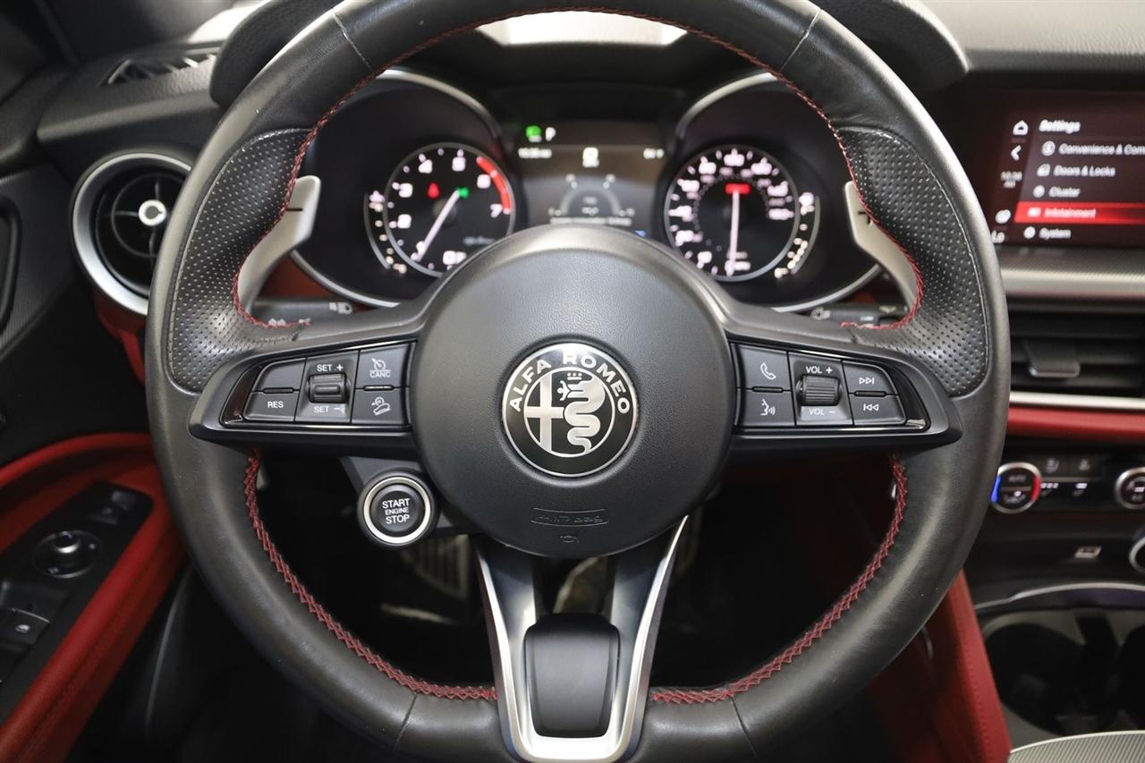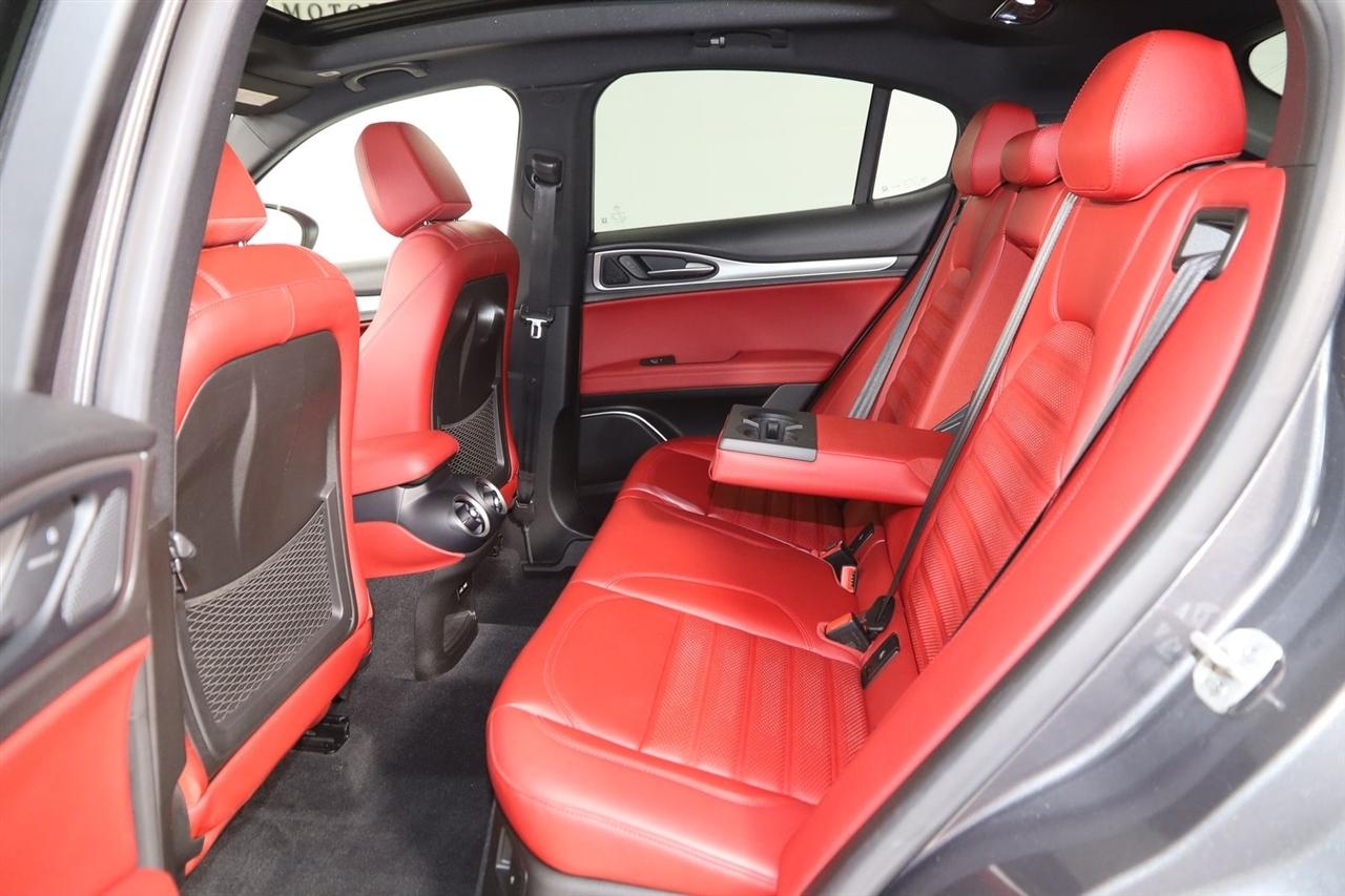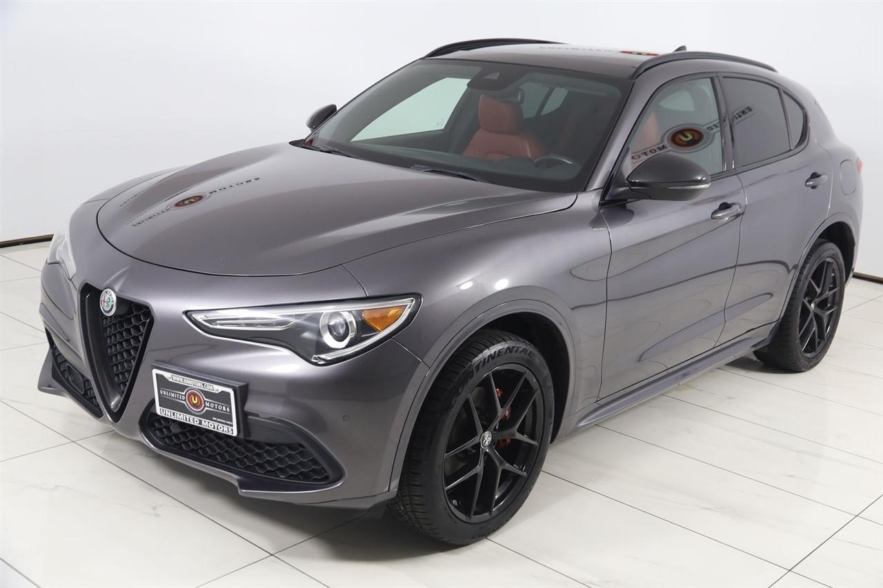 Navigation, Back Up Camera, Bluetooth, Panoramic Roof, Touch Screen, Heated Front Seats, Heated Steering Wheel, Blind Spot, Stelvio Ti Sport, 4D Sport Utility, I4, 8-Speed Automatic, AWD, Vesuvio Gray Metallic, Red/Black Leather, GPS Navigation, Navigation System.