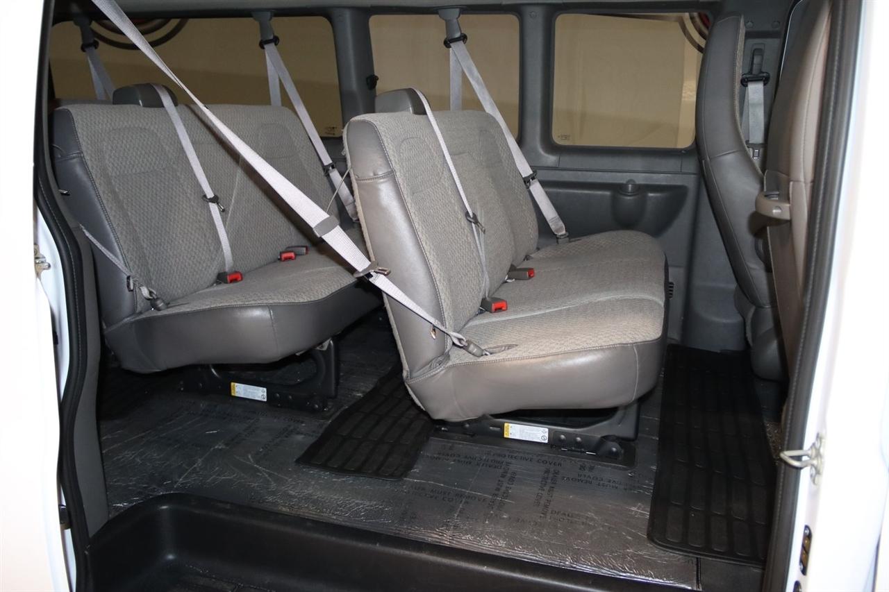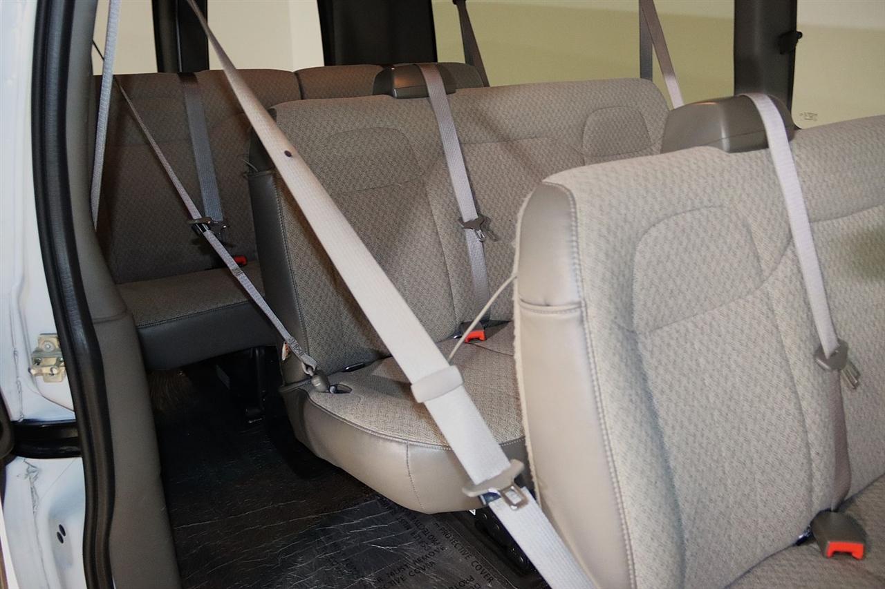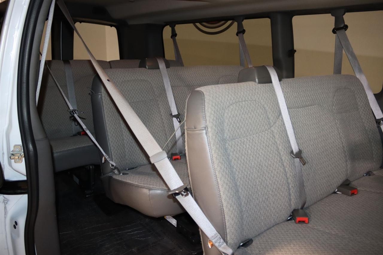 Bluetooth, Back Up Camera, 3rd Row, Touch Screen, 12-Passenger Seating (2-3-3-4 Seating Config), 16" x 6.5" Steel Wheels, 2 Speakers, 3.42 Rear Axle Ratio, 3rd row seats: bench, 4-Wheel Disc Brakes, 4th-Row Bench Seat, ABS brakes, Air Conditioning, AM/FM radio, AM/FM Stereo w/MP3 Player, Bumpers: chrome, Chrome Appearance Package, Chrome Grille, Compass, Custom Cloth Seat Trim, Delay-off headlights, Deluxe Console w/Swing Out Storage Bin, Driver door bin, Driver vanity mirror, Driver's Seat Mounted Armrest, Dual front impact airbags, Dual front side impact airbags, Electronic Stability Control, Forward Collision Alert, Front & Rear Chrome Bumpers w/Step-Pad, Front anti-roll bar, Front Bucket Seats, Front reading lights, Front wheel independent suspension, Full-Floor Color-Keyed Carpeting, Fully automatic headlights, Heated door mirrors, Illuminated entry, Keyless Entry Control Module (LPO), Lane Departure Warning System, Low tire pressure warning, Occupant sensing airbag, Overhead airbag, Panic alarm, Passenger cancellable airbag, Passenger door bin, Passenger seat mounted armrest, Passenger vanity mirror, Power door mirrors, Power steering, Power windows, Preferred Equipment Group 1LT, Rear air conditioning, Rear Park Assist, Rear reading lights, Reclining Front Bucket Seats w/Inboard Armrests, Remote Keyless Entry, Remote keyless entry, Security system, Side Blind Zone Alert, Sliding Passenger-Side Door, Speed control, Tachometer, Theft Alarm Notification, Tilt steering wheel, Traction control, Trip computer, Variably intermittent wipers, Voltmeter, Wheel Trim w/Chrome Center Caps. CARFAX One-Owner. Clean CARFAX. Priced below KBB Fair Purchase Price!