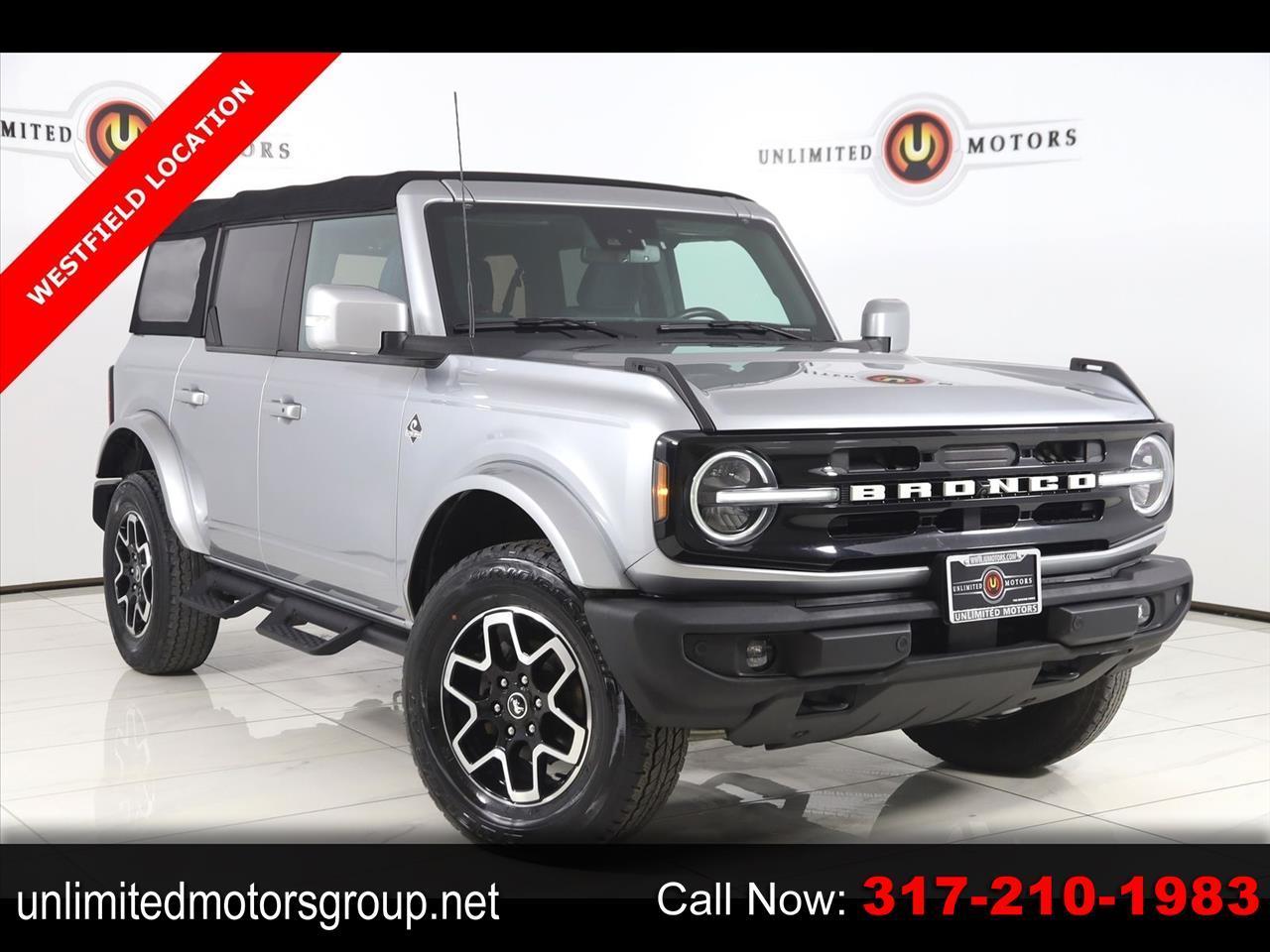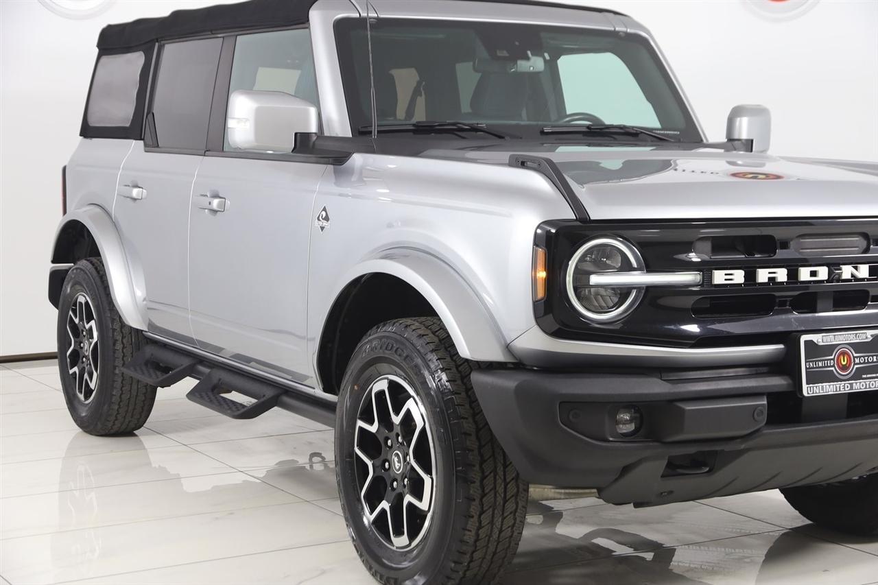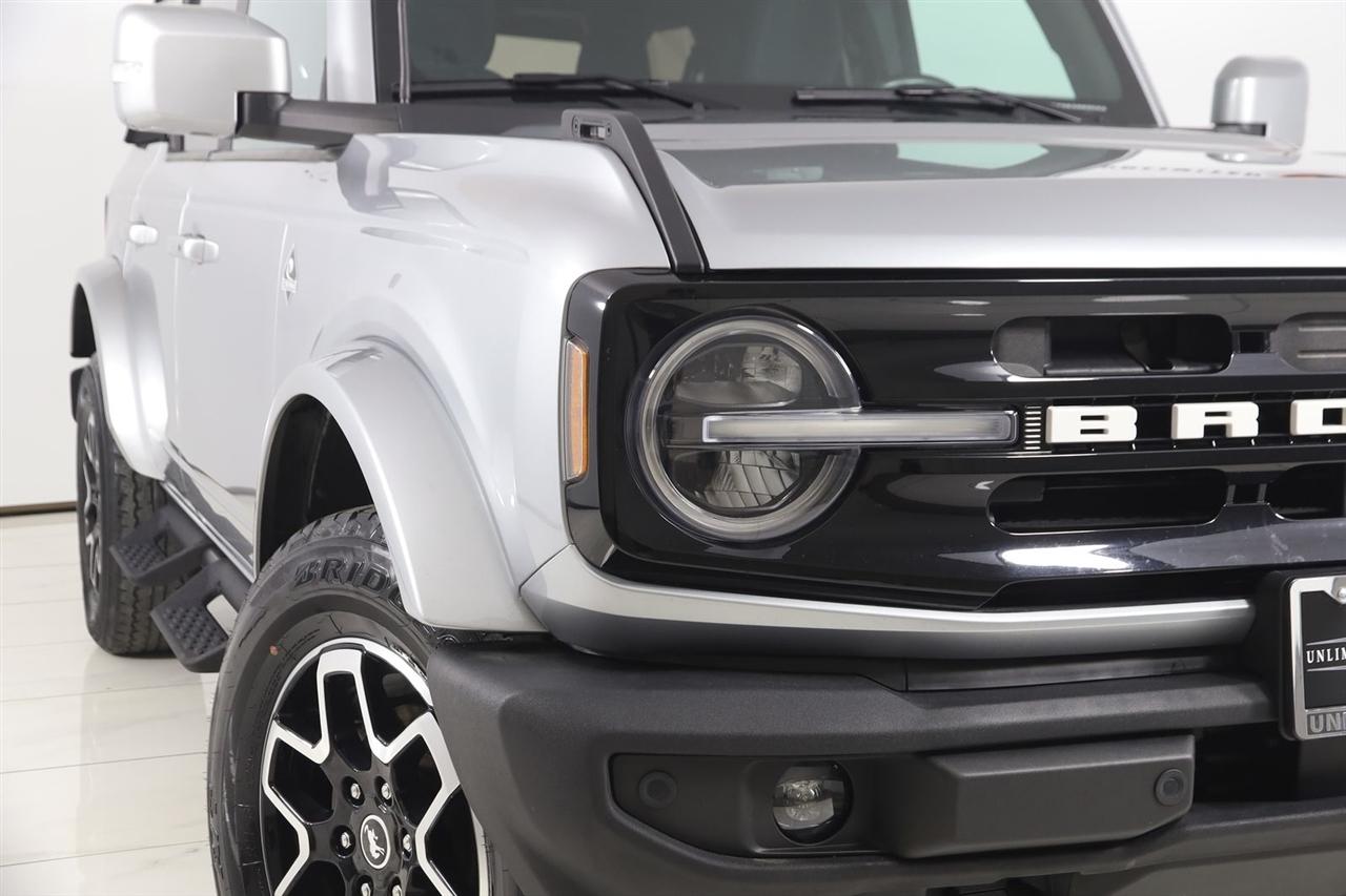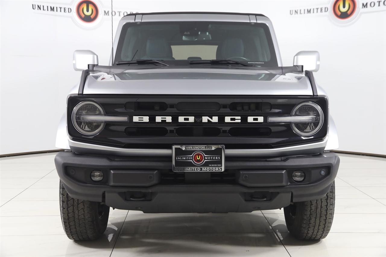 Navigation, Back Up Camera, Bluetooth, Sun/Moon Roof, Running Boards, Winch, Touch Screen, Heated Front Seats, Heated Steering Wheel, Blind Spot, Apple CarPlay/Android Auto, Bronco Outer Banks Advanced, 4D Sport Utility, 2.3L EcoBoost I-4, 10-Speed Automatic, 4WD, Silver Metallic, Dark Gray W/Navy Pier Cloth, Navigation System, Navigation system: Connected Navigation.