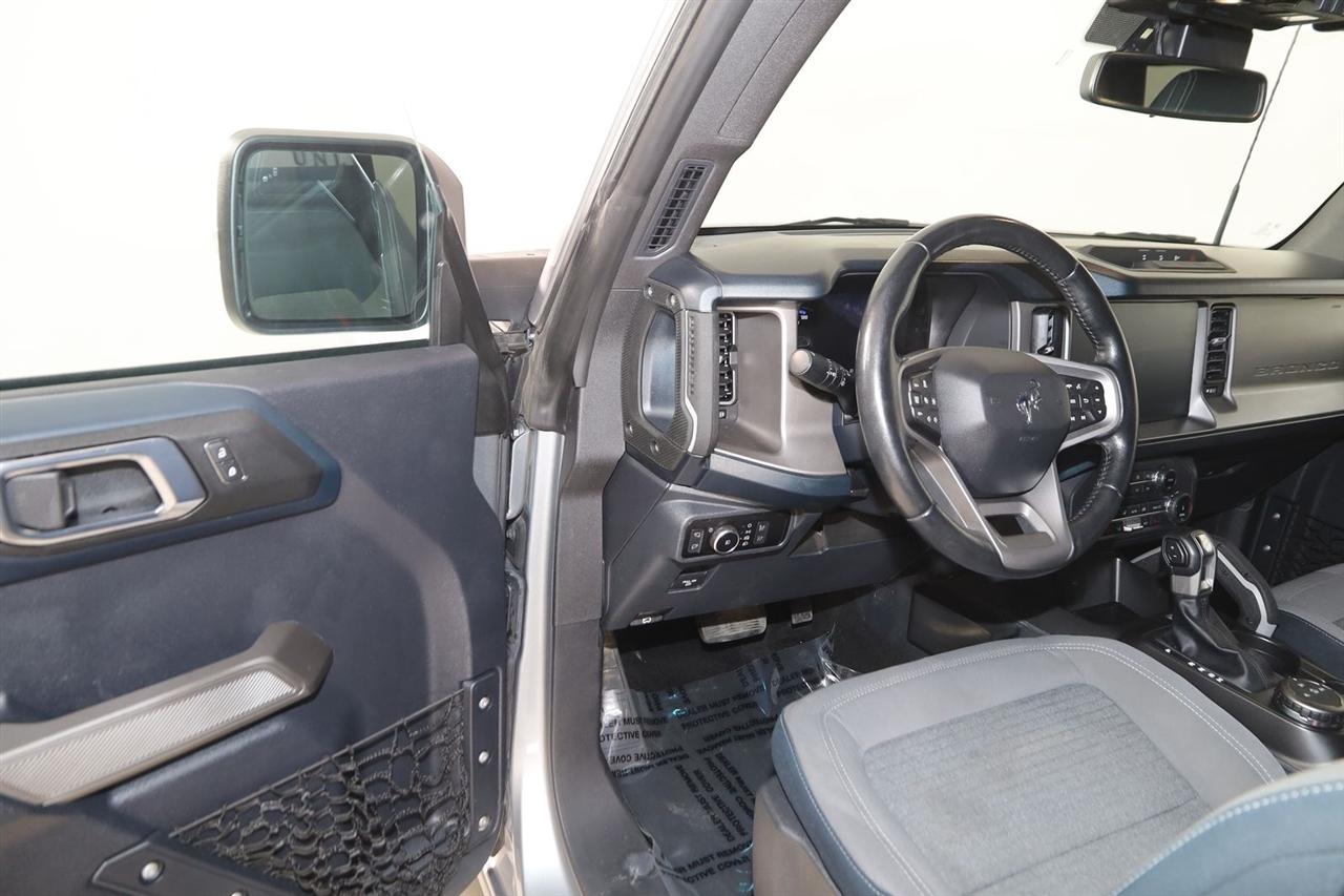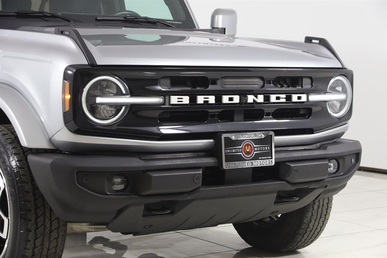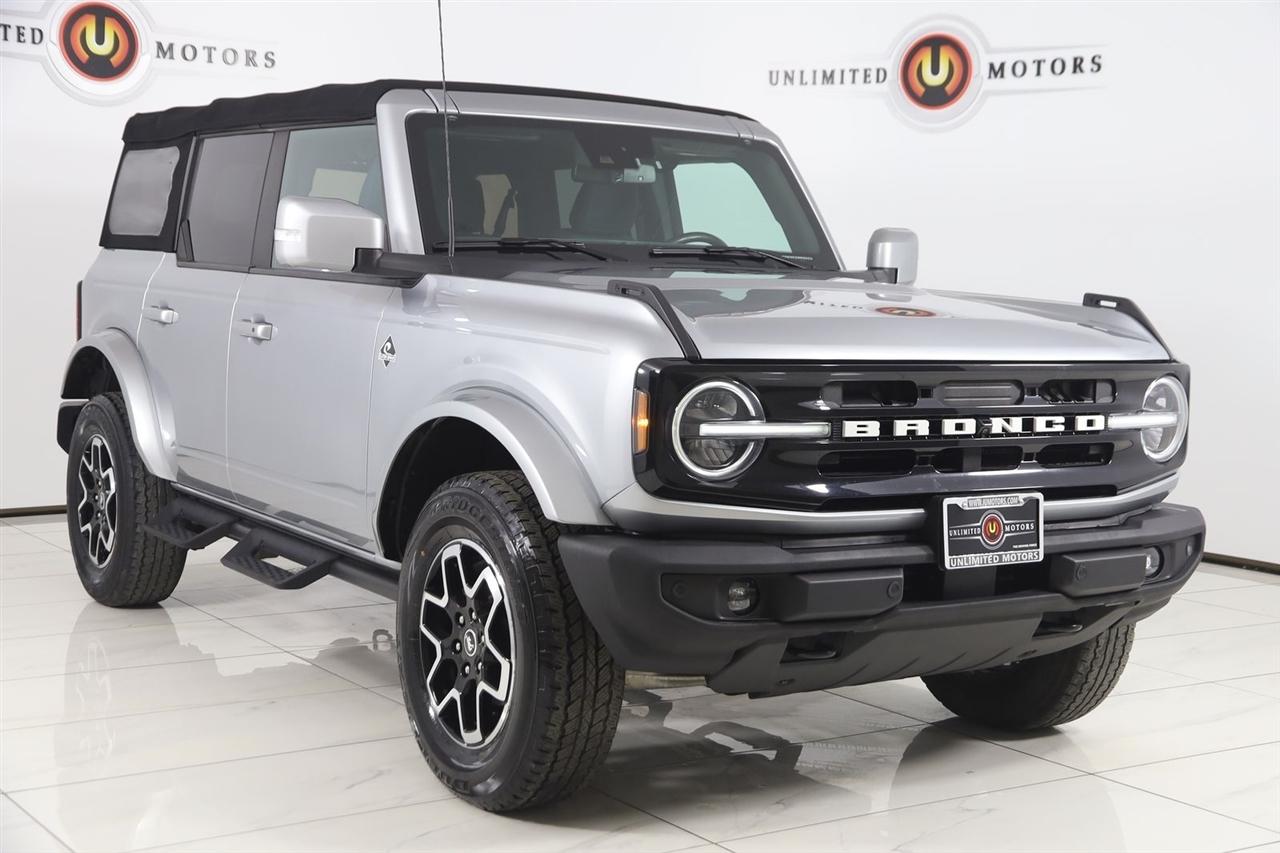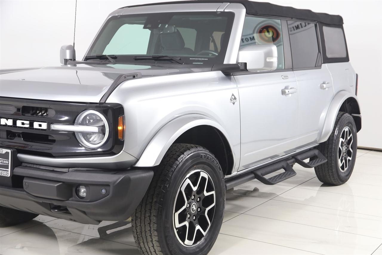 Navigation, Back Up Camera, Bluetooth, Sun/Moon Roof, Running Boards, Winch, Touch Screen, Heated Front Seats, Heated Steering Wheel, Blind Spot, Apple CarPlay/Android Auto, Bronco Outer Banks Advanced, 4D Sport Utility, 2.3L EcoBoost I-4, 10-Speed Automatic, 4WD, Silver Metallic, Dark Gray W/Navy Pier Cloth, Navigation System, Navigation system: Connected Navigation.