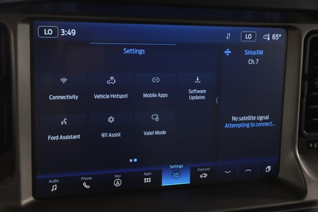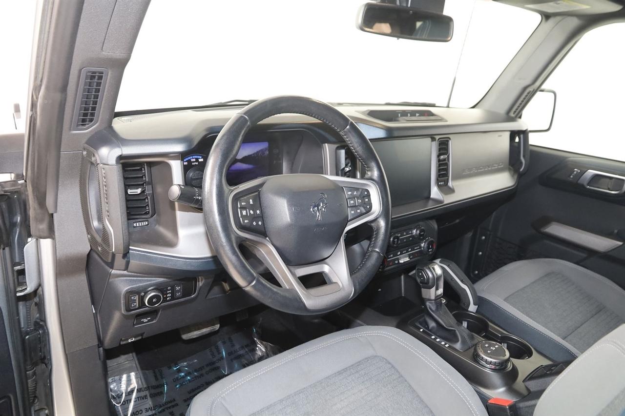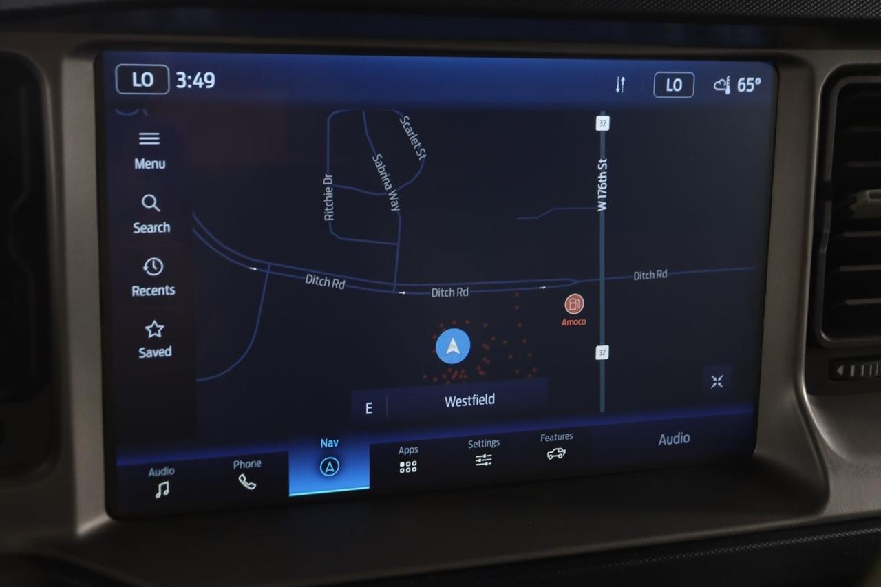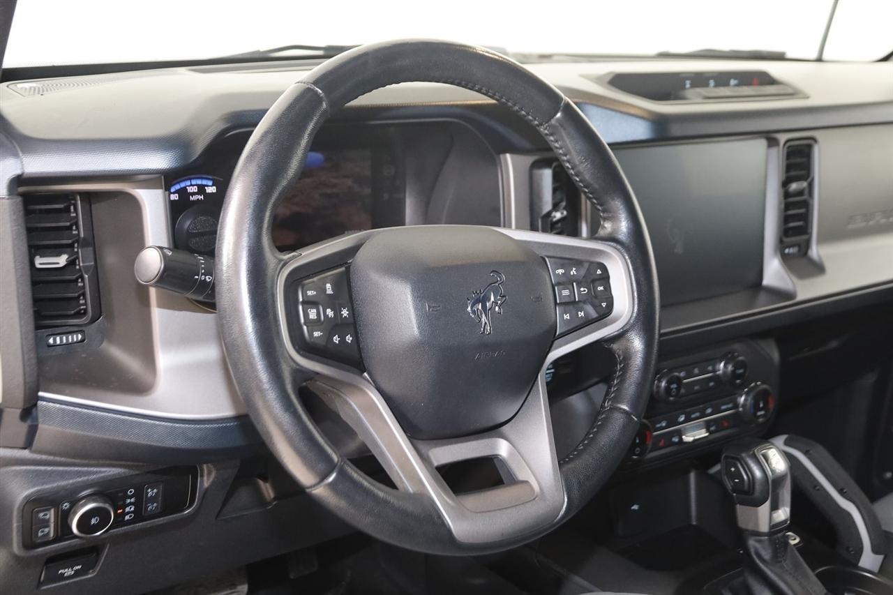 Navigation, Back Up Camera, Bluetooth, Sun/Moon Roof, Running Boards, Winch, Touch Screen, Heated Front Seats, Heated Steering Wheel, Blind Spot, Apple CarPlay/Android Auto, Bronco Outer Banks Advanced, 4D Sport Utility, 2.3L EcoBoost I-4, 10-Speed Automatic, 4WD, Silver Metallic, Dark Gray W/Navy Pier Cloth, Navigation System, Navigation system: Connected Navigation.