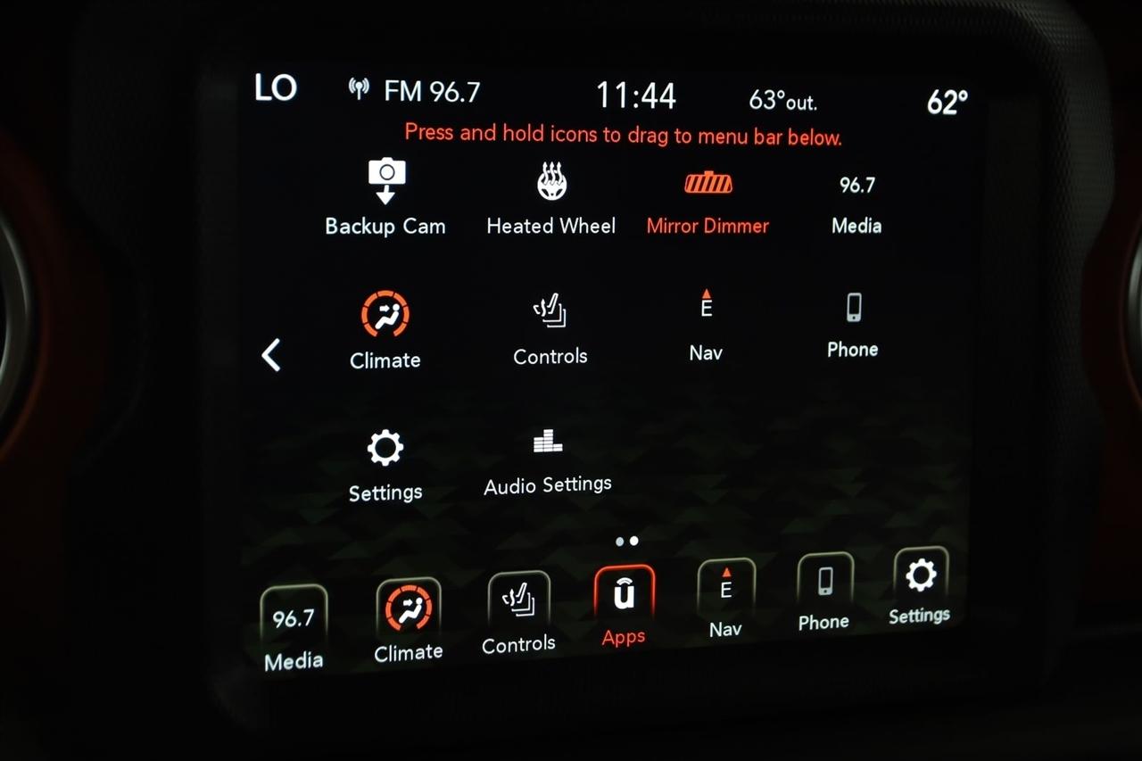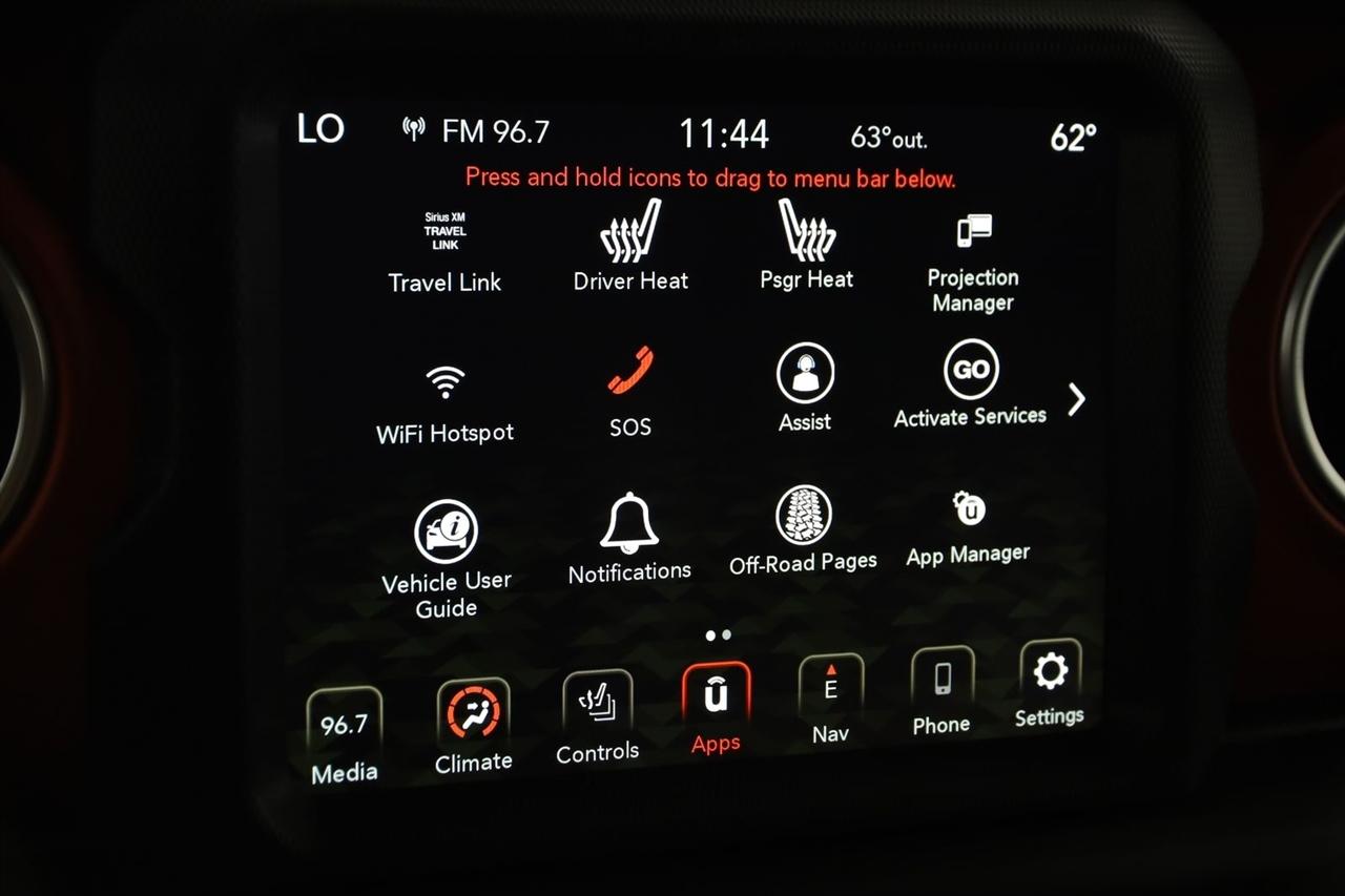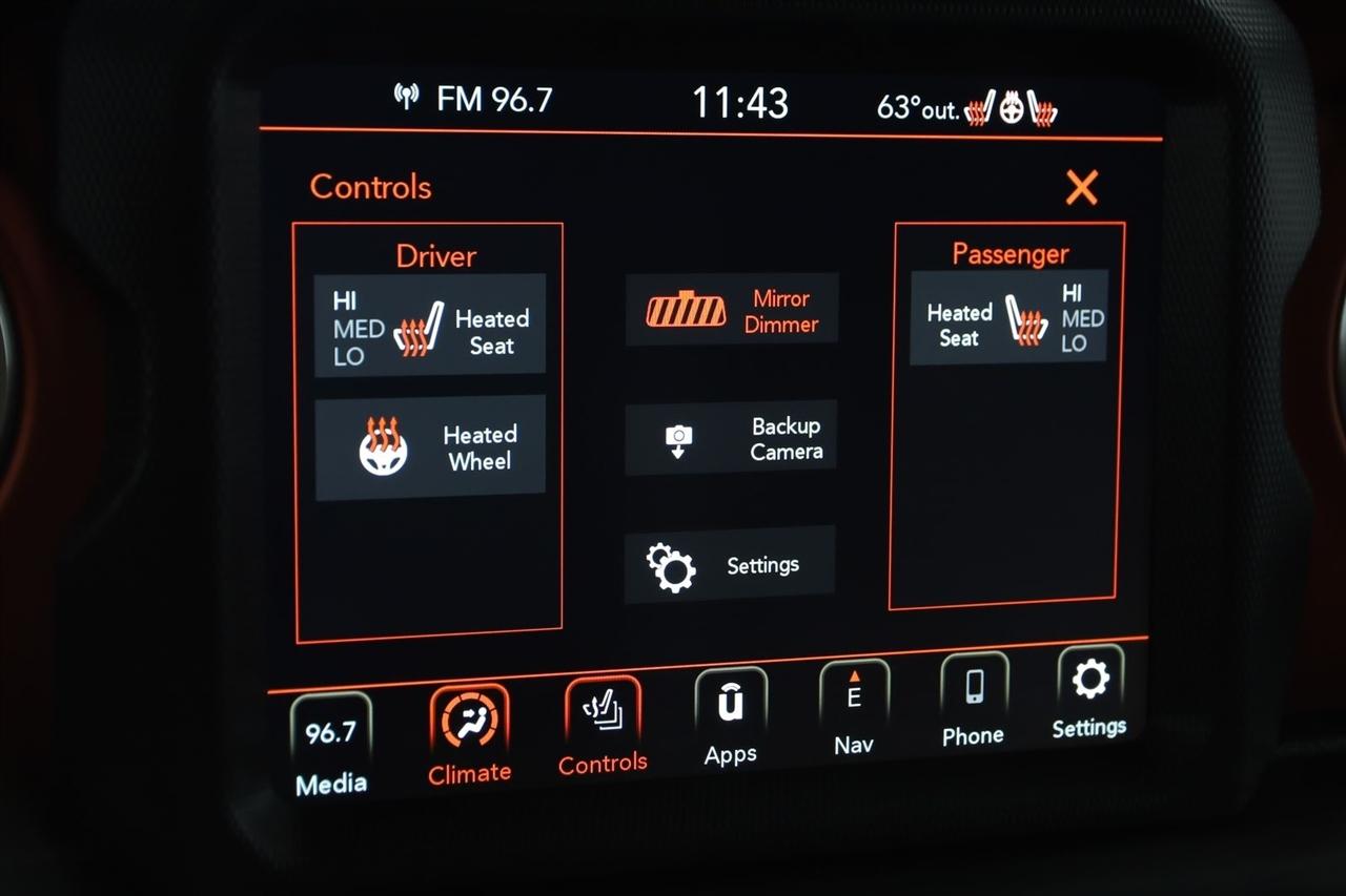 Navigation, Back Up Camera, Bluetooth, Sun/Moon Roof, Winch, Touch Screen, Heated Front Seats, Blind Spot, 1-Year SiriusXM Guardian Trial, 240 Amp Alternator, 4G LTE Wi-Fi Hot Spot, 5-Year SiriusXM Traffic Service, 5-Year SiriusXM Travel Link Service, 7 & 4 Pin Wiring Harness, 700 Amp Maintenance Free Battery, 8.4" Radio & Premium Audio Group, 8.4" Touchscreen Display, Advanced Brake Assist, Advanced Safety Group, Alpine Premium Audio System, Auto-Dimming Rear-View Mirror, Auxiliary Switches, Black 3-Piece Hard Top, Blind Spot & Cross Path Detection, Class II Receiver Hitch, Cold Weather Group, Daytime Running Lamps LED Accents, Dual Top Group, Emergency/Assistance Call, For Details, Visit DriveUconnect.com, Front LED Fog Lamps, Full Speed Forward Collision Warning Plus, GPS Navigation, HD Radio, Heated Front Seats, Heated Steering Wheel, LED Lighting Group, LED Reflector Headlamps, LED Taillamps, Navigation System, ParkSense Rear Park Assist System, Premium Black Sunrider Soft Top w/Dual Top Group, Quick Order Package 23R, Radio: Uconnect 4C Nav w/8.4" Display, Safety Group, SiriusXM Traffic Plus, SiriusXM Travel Link, Steel Bumper Group, Steel Front Bumper, Steel Rear Bumper, Trailer Tow & HD Electrical Group.