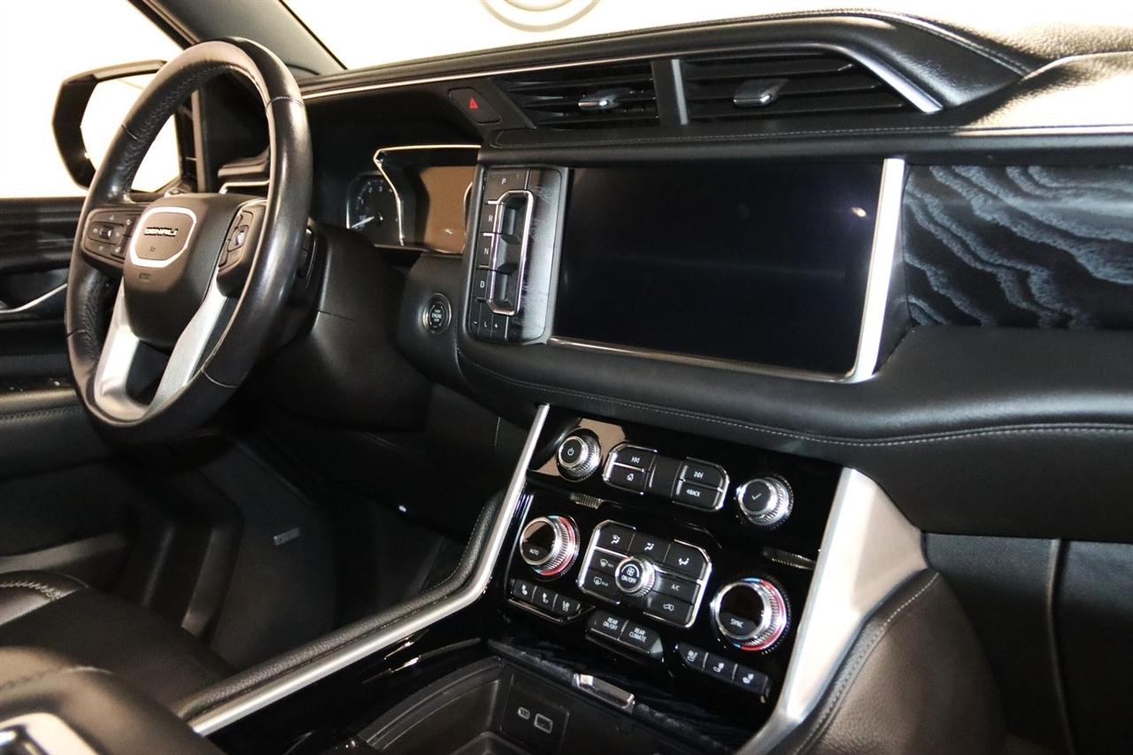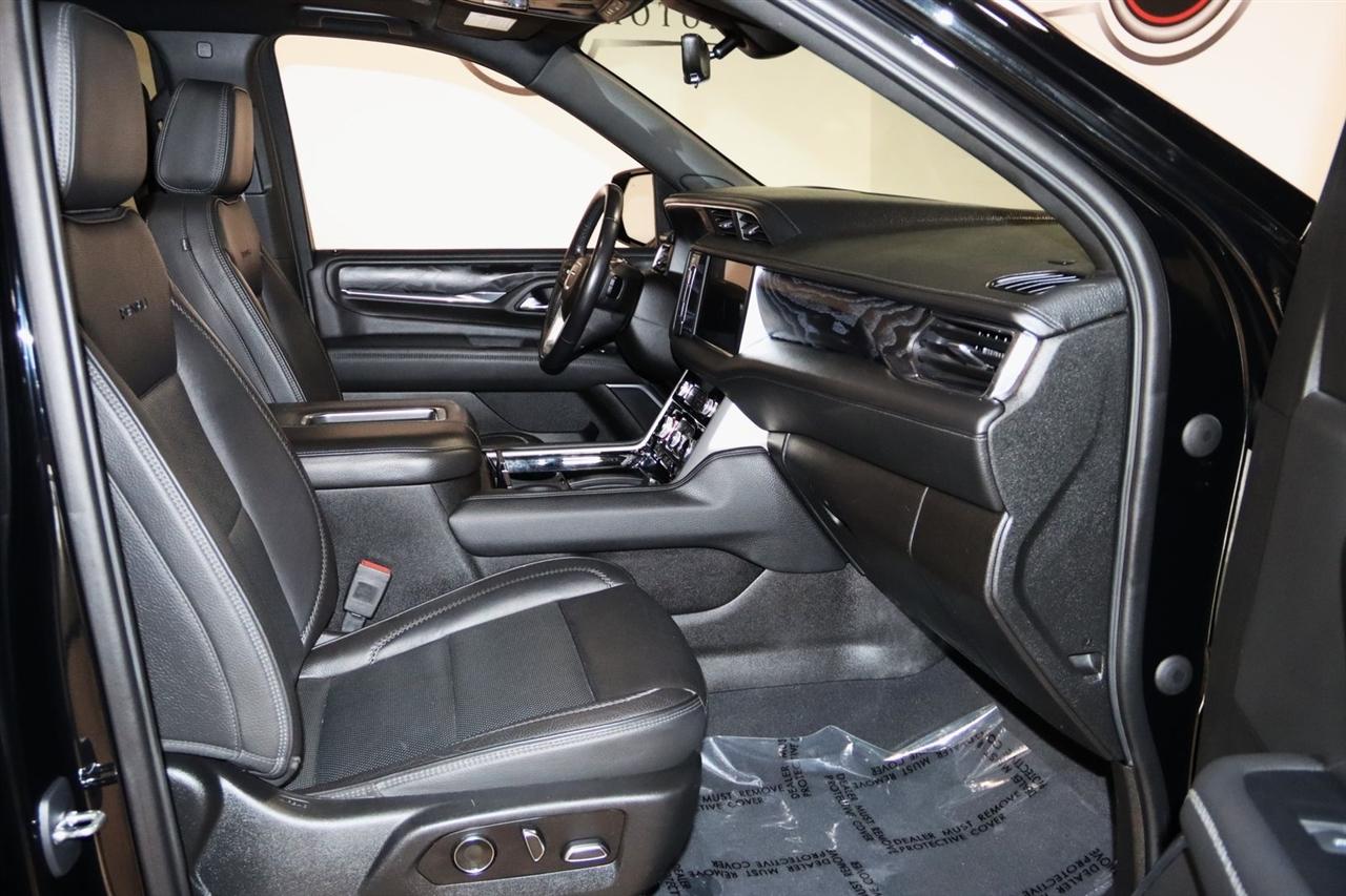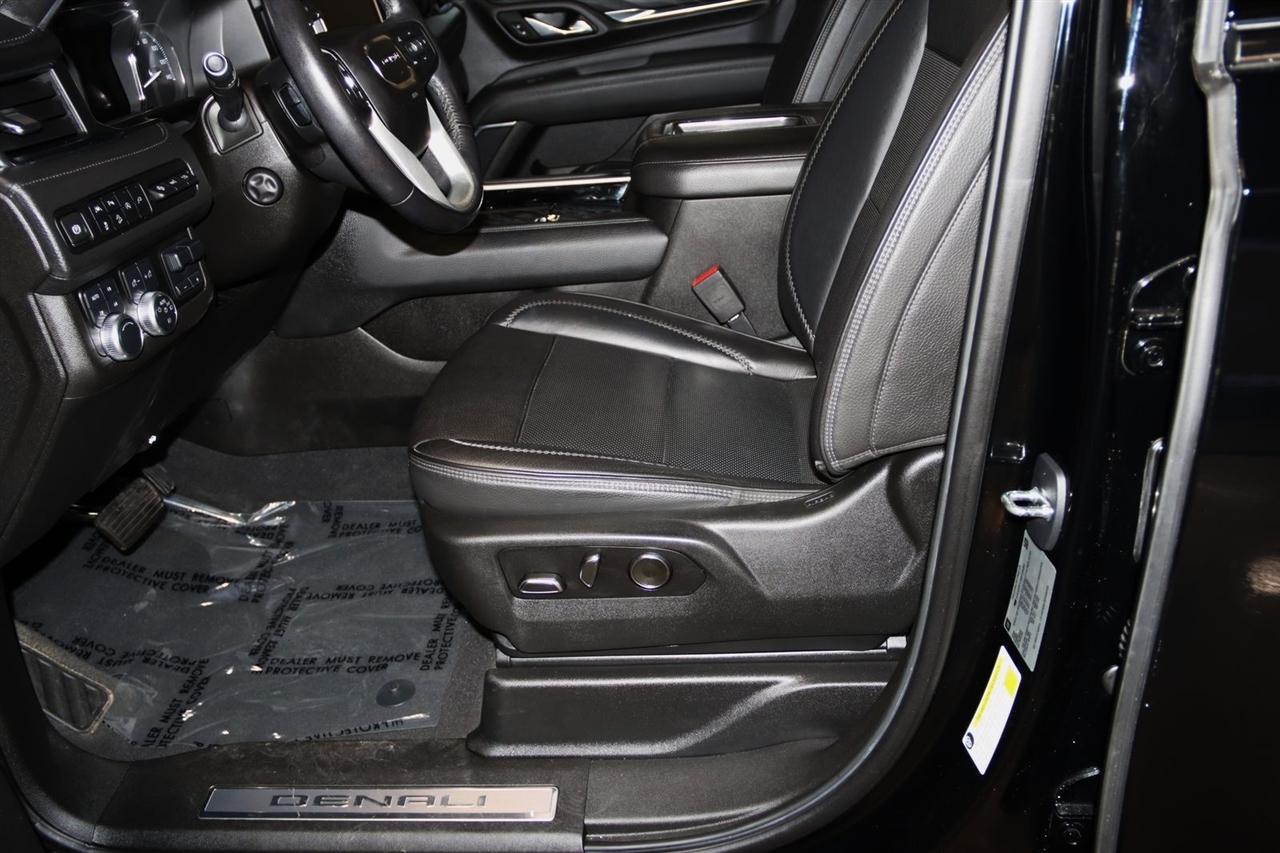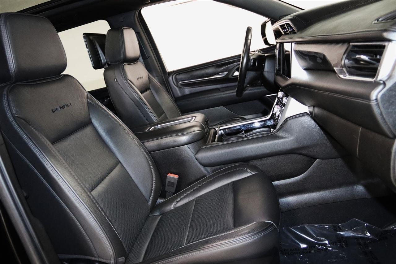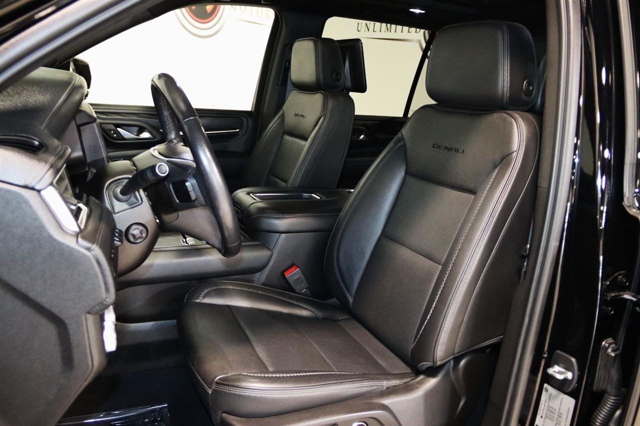 Navigation, Bluetooth, Back Up Camera, Entertainment, Panoramic Roof, 3rd Row, Heated Seats, Touch Screen, 12-Way Power Seat Adjusters, 14 Speakers, 15" Diagonal Multi-Color Head-Up Display, 2 Presets For Outside Rearview Mirrors, 3.23 Rear Axle Ratio, 3rd Row 60/40 Power-Folding Split-Bench Seat, 3rd row seats: split-bench, 4-Wheel Disc Brakes, ABS brakes, Adaptive Cruise Control, Adaptive suspension, Advanced Security Package, Advanced Technology Package, Air Conditioning, Alloy wheels, AM/FM radio: SiriusXM with 360L, Apple CarPlay/Android Auto, Auto High-beam Headlights, Auto-dimming door mirrors, Auto-dimming Rear-View mirror, Auto-leveling suspension, Automatic Emergency Braking, Automatic temperature control, Bodyside moldings, Bose 14-Speaker Surround w/CenterPoint, Brake assist, Bright Front & Rear Door Sill Plates, Bumpers: body-color, Chrome Door Handles w/Body-Color Strip, Compass, Delay-off headlights, Denali Premium Package, Driver door bin, Driver vanity mirror, Dual Exhaust System, Dual front impact airbags, Dual front side impact airbags, Dual-Pane Panoramic Power Sunroof, Electronic Stability Control, Emergency communication system: OnStar and GMC connected services capable, Enhanced Automatic Emergency Braking, Extra Capacity Cooling System, Following Distance Indicator, Forward Collision Alert, Four wheel independent suspension, Front & Rear Park Assist, Front anti-roll bar, Front Bucket Seats, Front Center Armrest, Front dual zone A/C, Front fog lights, Front Pedestrian Braking, Front reading lights, Fully automatic headlights, Galvano Bodyside Moldings, Garage door transmitter, Glass Breakage Sensor, Hands-Free Power Programmable Rear Liftgate, HD Radio, HD Surround Vision, Heads-Up Display, Heated & Ventilated Driver & Front Passenger Seats, Heated 2nd Row Outboard Position Seats, Heated Automatic Steering Wheel, Heated door mirrors, Heated Driver & Front Passenger Seats, Heated front seats, Heated rear seats, Heated steering wheel, Hill Descent Control, Hitch Guidance w/Hitch View, Illuminated entry, In-Vehicle Trailering App, Inside Rear-View Auto-Dimming Mirror, Inside Rearview Auto-Dimming Rear Camera Mirror, Integrated Trailer Brake Controller, IntelliBeam Automatic High Beam On/Off, Jet Black Interior Trim, Lane Change Alert w/Side Blind Zone Alert, Lane Keep Assist w/Lane Departure Warning, Leather steering wheel, Low tire pressure warning, Magnetic Ride Control Suspension, Max Trailering Package, Memory seat, Navigation System, Occupant sensing airbag, Outside Heated Power-Adjustable Mirrors, Outside temperature display, Overhead airbag, Overhead console, Panic alarm, Passenger door bin, Passenger vanity mirror, Perforated Leather Seating Surfaces, Power door mirrors, Power driver seat, Power Liftgate, Power passenger seat, Power Release 2nd Row 60/40 Split-Folding Bench Seat, Power Release 2nd Row Bucket Seats, Power steering, Power Tilt & Telescopic Steering Column, Power windows, Power-Retractable Assist Steps, Preferred Equipment Group 5SA, Radio: AM/FM/SiriusXM w/Navigation, Rain sensing wipers, Rear air conditioning, Rear anti-roll bar, Rear Camera Mirror Washer, Rear Cross Traffic Alert, Rear Pedestrian Alert, Rear reading lights, Rear Seat Media System, Rear window defroster, Rear window wiper, Remote keyless entry, Roof rack: rails only, Safety Alert Seat, Security system, SiriusXM w/360L, Speed control, Speed-sensing steering, Split folding rear seat, Spoiler, Steering wheel memory, Steering wheel mounted audio controls, Tachometer, Telescoping steering wheel, Theft-Deterrent Alarm System, Tilt steering wheel, Traction control, Trailer Side Blind Zone Alert, Trip computer, Turn signal indicator mirrors, Universal Home Remote, Variably intermittent wipers, Vehicle Inclination Sensor, Vehicle Interior Movement Sensor, Ventilated front seats, Voltmeter, Wheel Locks, Wheels: 22" x 9" Bright Machined Aluminum. Clean CARFAX. Odometer is 21379 miles below market average!