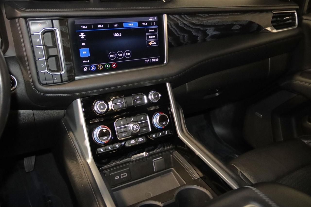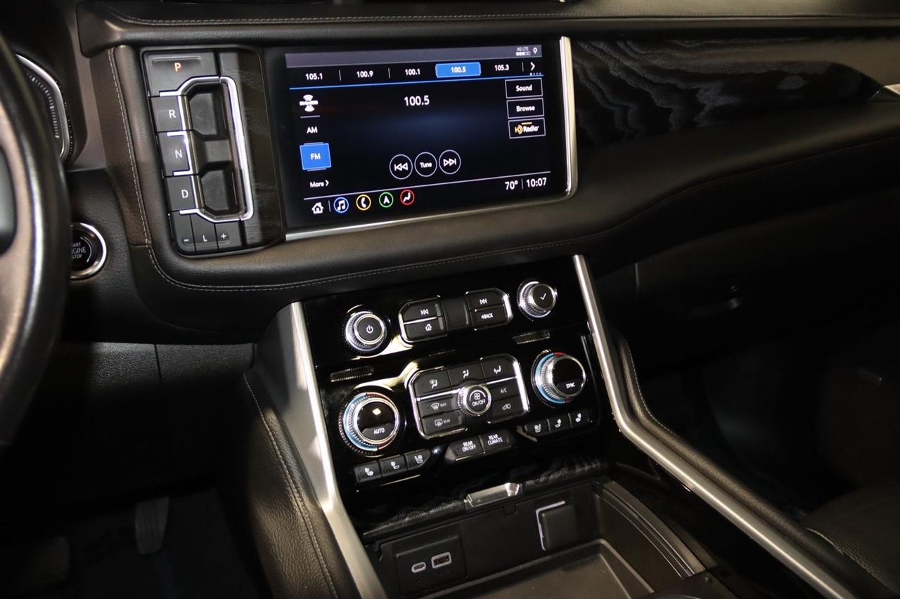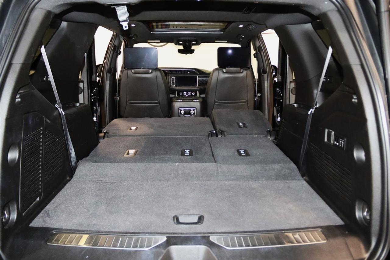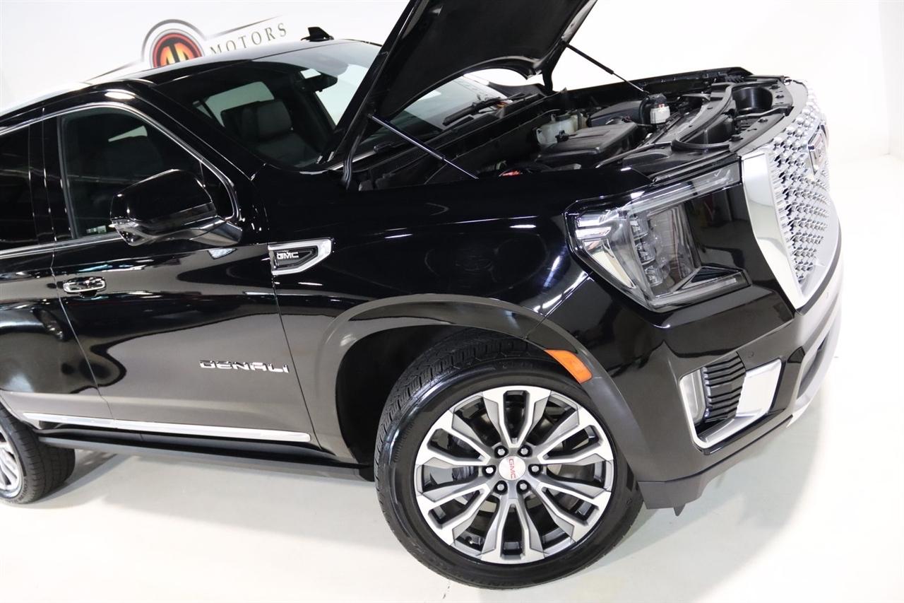 Navigation, Bluetooth, Back Up Camera, Entertainment, Panoramic Roof, 3rd Row, Heated Seats, Touch Screen, 12-Way Power Seat Adjusters, 14 Speakers, 15" Diagonal Multi-Color Head-Up Display, 2 Presets For Outside Rearview Mirrors, 3.23 Rear Axle Ratio, 3rd Row 60/40 Power-Folding Split-Bench Seat, 3rd row seats: split-bench, 4-Wheel Disc Brakes, ABS brakes, Adaptive Cruise Control, Adaptive suspension, Advanced Security Package, Advanced Technology Package, Air Conditioning, Alloy wheels, AM/FM radio: SiriusXM with 360L, Apple CarPlay/Android Auto, Auto High-beam Headlights, Auto-dimming door mirrors, Auto-dimming Rear-View mirror, Auto-leveling suspension, Automatic Emergency Braking, Automatic temperature control, Bodyside moldings, Bose 14-Speaker Surround w/CenterPoint, Brake assist, Bright Front & Rear Door Sill Plates, Bumpers: body-color, Chrome Door Handles w/Body-Color Strip, Compass, Delay-off headlights, Denali Premium Package, Driver door bin, Driver vanity mirror, Dual Exhaust System, Dual front impact airbags, Dual front side impact airbags, Dual-Pane Panoramic Power Sunroof, Electronic Stability Control, Emergency communication system: OnStar and GMC connected services capable, Enhanced Automatic Emergency Braking, Extra Capacity Cooling System, Following Distance Indicator, Forward Collision Alert, Four wheel independent suspension, Front & Rear Park Assist, Front anti-roll bar, Front Bucket Seats, Front Center Armrest, Front dual zone A/C, Front fog lights, Front Pedestrian Braking, Front reading lights, Fully automatic headlights, Galvano Bodyside Moldings, Garage door transmitter, Glass Breakage Sensor, Hands-Free Power Programmable Rear Liftgate, HD Radio, HD Surround Vision, Heads-Up Display, Heated & Ventilated Driver & Front Passenger Seats, Heated 2nd Row Outboard Position Seats, Heated Automatic Steering Wheel, Heated door mirrors, Heated Driver & Front Passenger Seats, Heated front seats, Heated rear seats, Heated steering wheel, Hill Descent Control, Hitch Guidance w/Hitch View, Illuminated entry, In-Vehicle Trailering App, Inside Rear-View Auto-Dimming Mirror, Inside Rearview Auto-Dimming Rear Camera Mirror, Integrated Trailer Brake Controller, IntelliBeam Automatic High Beam On/Off, Jet Black Interior Trim, Lane Change Alert w/Side Blind Zone Alert, Lane Keep Assist w/Lane Departure Warning, Leather steering wheel, Low tire pressure warning, Magnetic Ride Control Suspension, Max Trailering Package, Memory seat, Navigation System, Occupant sensing airbag, Outside Heated Power-Adjustable Mirrors, Outside temperature display, Overhead airbag, Overhead console, Panic alarm, Passenger door bin, Passenger vanity mirror, Perforated Leather Seating Surfaces, Power door mirrors, Power driver seat, Power Liftgate, Power passenger seat, Power Release 2nd Row 60/40 Split-Folding Bench Seat, Power Release 2nd Row Bucket Seats, Power steering, Power Tilt & Telescopic Steering Column, Power windows, Power-Retractable Assist Steps, Preferred Equipment Group 5SA, Radio: AM/FM/SiriusXM w/Navigation, Rain sensing wipers, Rear air conditioning, Rear anti-roll bar, Rear Camera Mirror Washer, Rear Cross Traffic Alert, Rear Pedestrian Alert, Rear reading lights, Rear Seat Media System, Rear window defroster, Rear window wiper, Remote keyless entry, Roof rack: rails only, Safety Alert Seat, Security system, SiriusXM w/360L, Speed control, Speed-sensing steering, Split folding rear seat, Spoiler, Steering wheel memory, Steering wheel mounted audio controls, Tachometer, Telescoping steering wheel, Theft-Deterrent Alarm System, Tilt steering wheel, Traction control, Trailer Side Blind Zone Alert, Trip computer, Turn signal indicator mirrors, Universal Home Remote, Variably intermittent wipers, Vehicle Inclination Sensor, Vehicle Interior Movement Sensor, Ventilated front seats, Voltmeter, Wheel Locks, Wheels: 22" x 9" Bright Machined Aluminum. Clean CARFAX. Odometer is 21379 miles below market average!