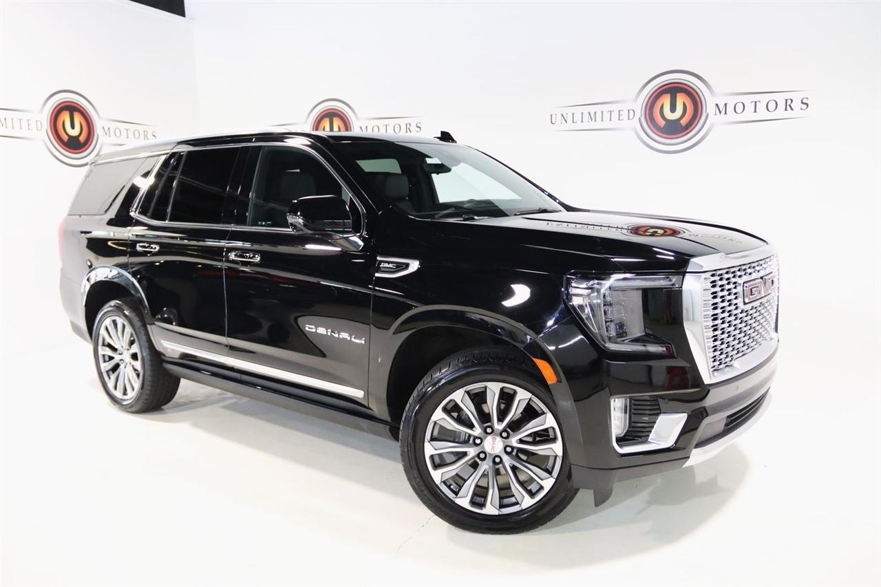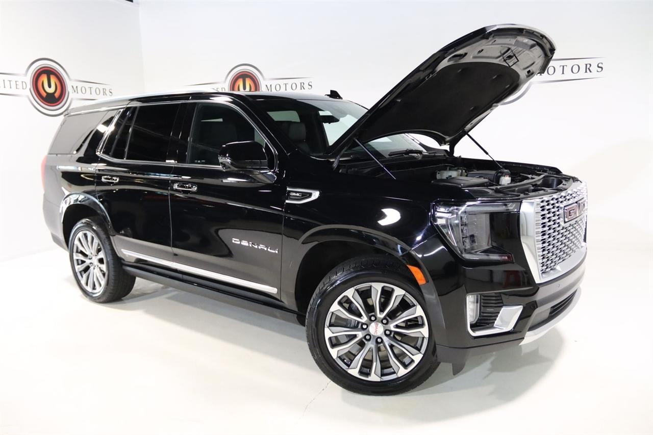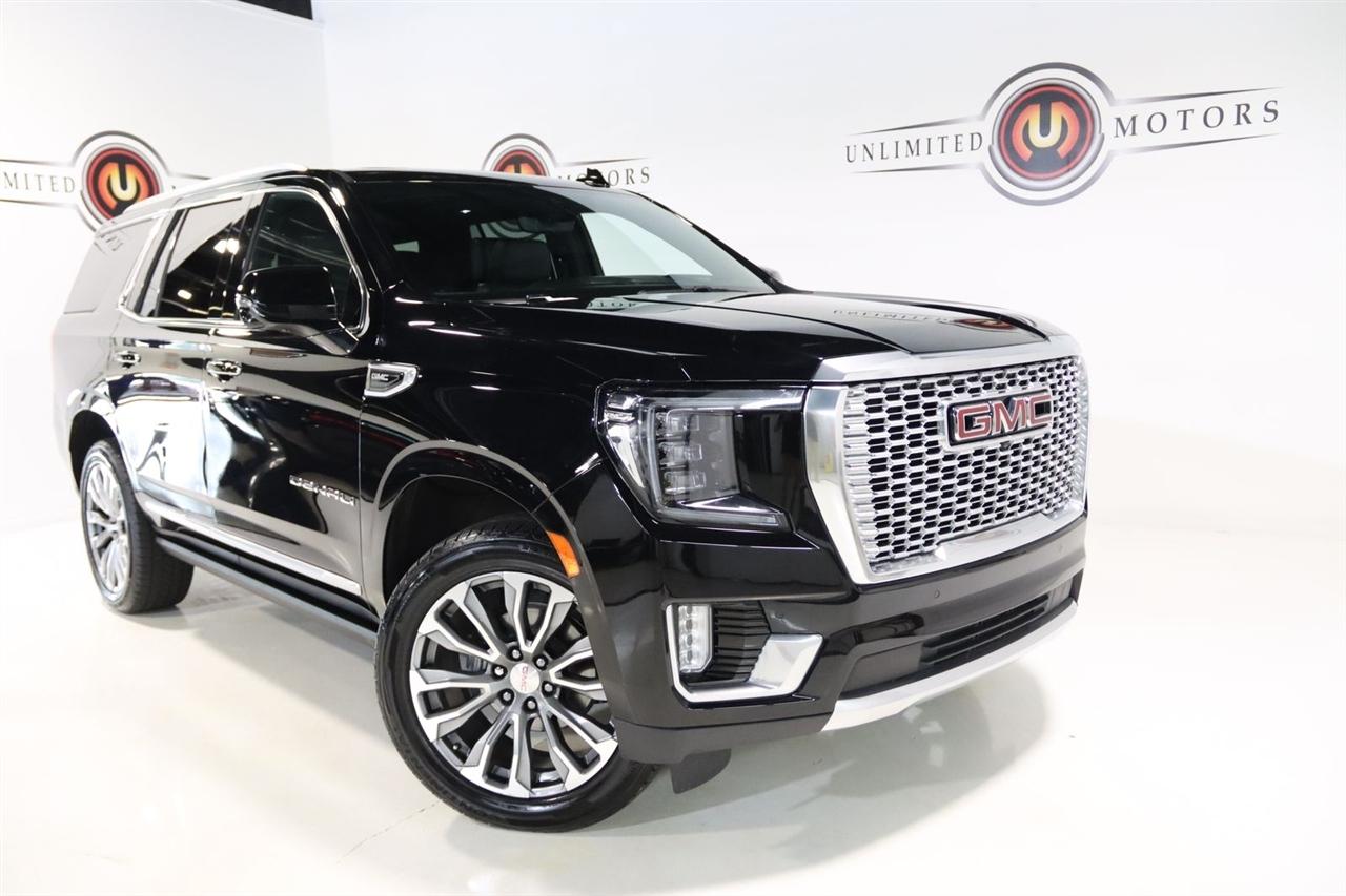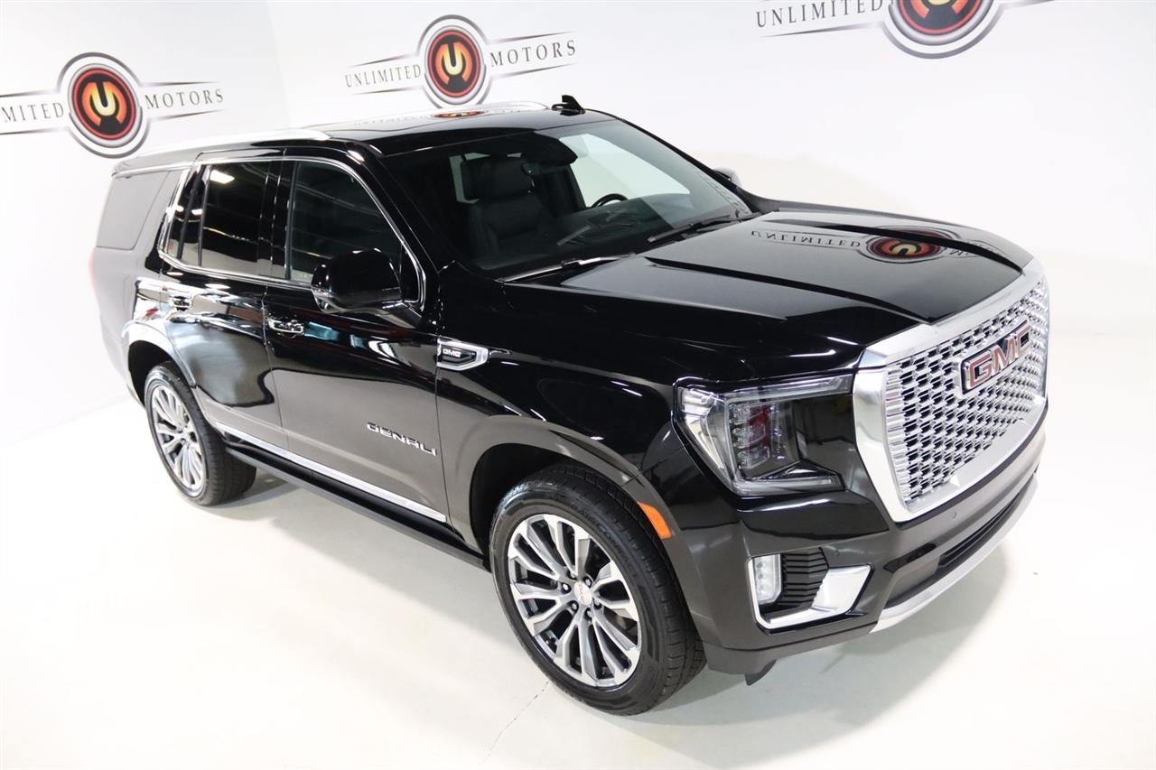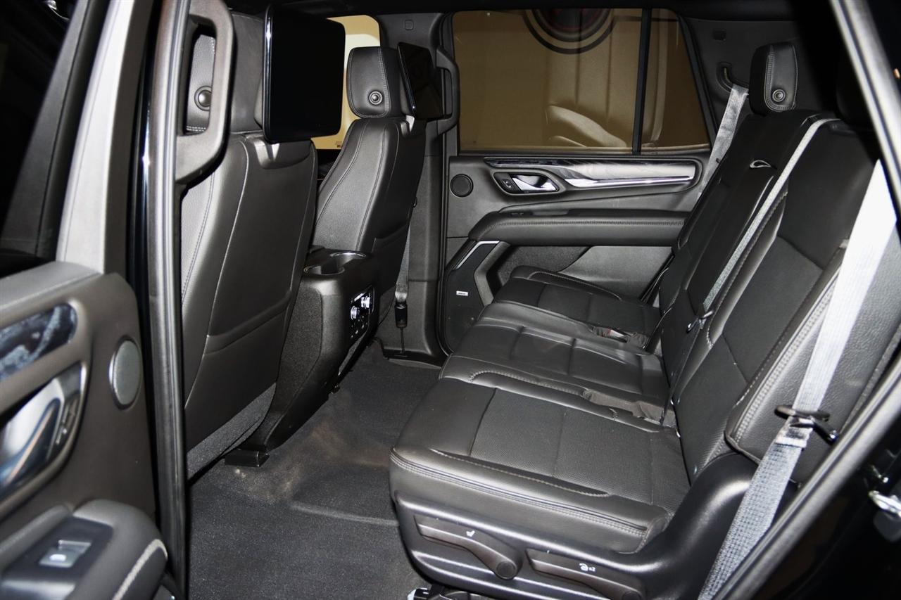 Navigation, Bluetooth, Back Up Camera, Entertainment, Panoramic Roof, 3rd Row, Heated Seats, Touch Screen, 12-Way Power Seat Adjusters, 14 Speakers, 15" Diagonal Multi-Color Head-Up Display, 2 Presets For Outside Rearview Mirrors, 3.23 Rear Axle Ratio, 3rd Row 60/40 Power-Folding Split-Bench Seat, 3rd row seats: split-bench, 4-Wheel Disc Brakes, ABS brakes, Adaptive Cruise Control, Adaptive suspension, Advanced Security Package, Advanced Technology Package, Air Conditioning, Alloy wheels, AM/FM radio: SiriusXM with 360L, Apple CarPlay/Android Auto, Auto High-beam Headlights, Auto-dimming door mirrors, Auto-dimming Rear-View mirror, Auto-leveling suspension, Automatic Emergency Braking, Automatic temperature control, Bodyside moldings, Bose 14-Speaker Surround w/CenterPoint, Brake assist, Bright Front & Rear Door Sill Plates, Bumpers: body-color, Chrome Door Handles w/Body-Color Strip, Compass, Delay-off headlights, Denali Premium Package, Driver door bin, Driver vanity mirror, Dual Exhaust System, Dual front impact airbags, Dual front side impact airbags, Dual-Pane Panoramic Power Sunroof, Electronic Stability Control, Emergency communication system: OnStar and GMC connected services capable, Enhanced Automatic Emergency Braking, Extra Capacity Cooling System, Following Distance Indicator, Forward Collision Alert, Four wheel independent suspension, Front & Rear Park Assist, Front anti-roll bar, Front Bucket Seats, Front Center Armrest, Front dual zone A/C, Front fog lights, Front Pedestrian Braking, Front reading lights, Fully automatic headlights, Galvano Bodyside Moldings, Garage door transmitter, Glass Breakage Sensor, Hands-Free Power Programmable Rear Liftgate, HD Radio, HD Surround Vision, Heads-Up Display, Heated & Ventilated Driver & Front Passenger Seats, Heated 2nd Row Outboard Position Seats, Heated Automatic Steering Wheel, Heated door mirrors, Heated Driver & Front Passenger Seats, Heated front seats, Heated rear seats, Heated steering wheel, Hill Descent Control, Hitch Guidance w/Hitch View, Illuminated entry, In-Vehicle Trailering App, Inside Rear-View Auto-Dimming Mirror, Inside Rearview Auto-Dimming Rear Camera Mirror, Integrated Trailer Brake Controller, IntelliBeam Automatic High Beam On/Off, Jet Black Interior Trim, Lane Change Alert w/Side Blind Zone Alert, Lane Keep Assist w/Lane Departure Warning, Leather steering wheel, Low tire pressure warning, Magnetic Ride Control Suspension, Max Trailering Package, Memory seat, Navigation System, Occupant sensing airbag, Outside Heated Power-Adjustable Mirrors, Outside temperature display, Overhead airbag, Overhead console, Panic alarm, Passenger door bin, Passenger vanity mirror, Perforated Leather Seating Surfaces, Power door mirrors, Power driver seat, Power Liftgate, Power passenger seat, Power Release 2nd Row 60/40 Split-Folding Bench Seat, Power Release 2nd Row Bucket Seats, Power steering, Power Tilt & Telescopic Steering Column, Power windows, Power-Retractable Assist Steps, Preferred Equipment Group 5SA, Radio: AM/FM/SiriusXM w/Navigation, Rain sensing wipers, Rear air conditioning, Rear anti-roll bar, Rear Camera Mirror Washer, Rear Cross Traffic Alert, Rear Pedestrian Alert, Rear reading lights, Rear Seat Media System, Rear window defroster, Rear window wiper, Remote keyless entry, Roof rack: rails only, Safety Alert Seat, Security system, SiriusXM w/360L, Speed control, Speed-sensing steering, Split folding rear seat, Spoiler, Steering wheel memory, Steering wheel mounted audio controls, Tachometer, Telescoping steering wheel, Theft-Deterrent Alarm System, Tilt steering wheel, Traction control, Trailer Side Blind Zone Alert, Trip computer, Turn signal indicator mirrors, Universal Home Remote, Variably intermittent wipers, Vehicle Inclination Sensor, Vehicle Interior Movement Sensor, Ventilated front seats, Voltmeter, Wheel Locks, Wheels: 22" x 9" Bright Machined Aluminum. Clean CARFAX. Odometer is 21379 miles below market average!