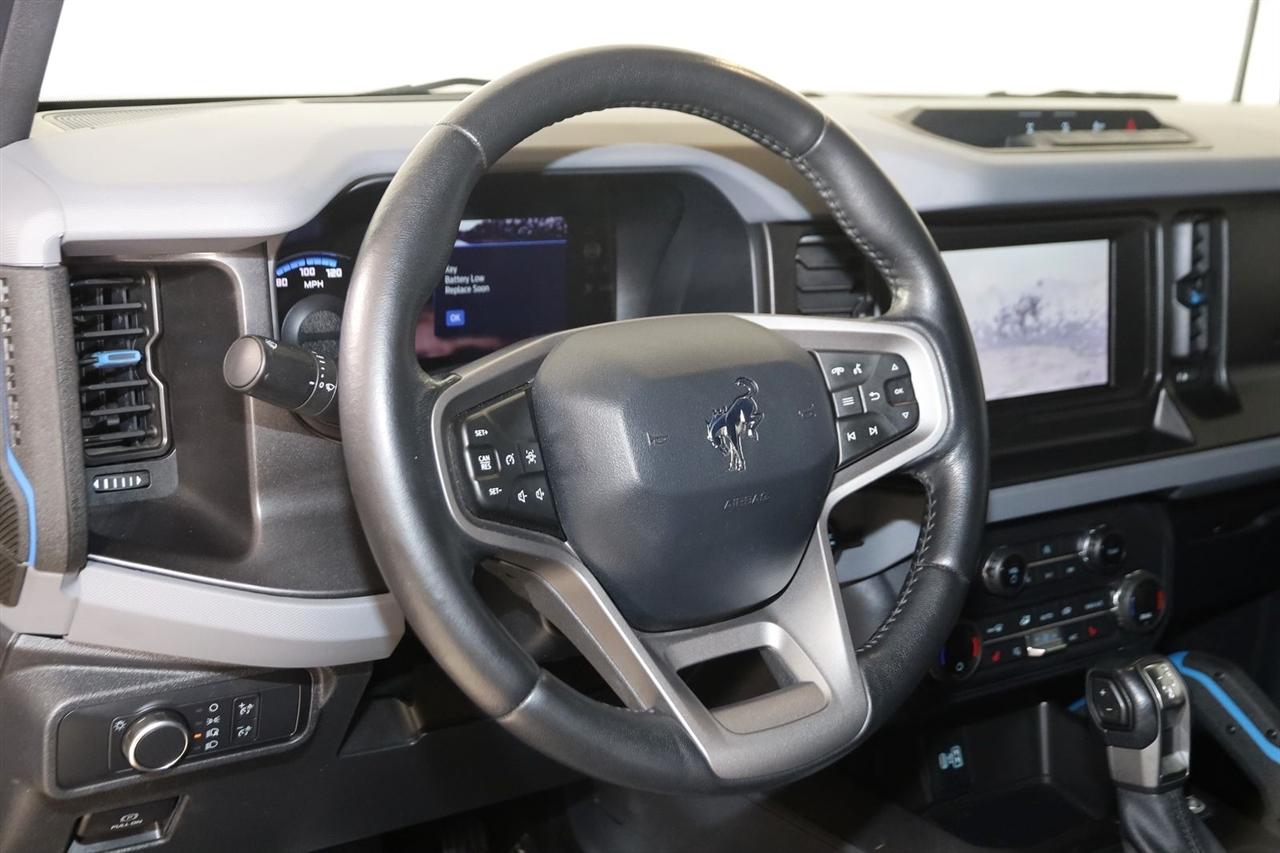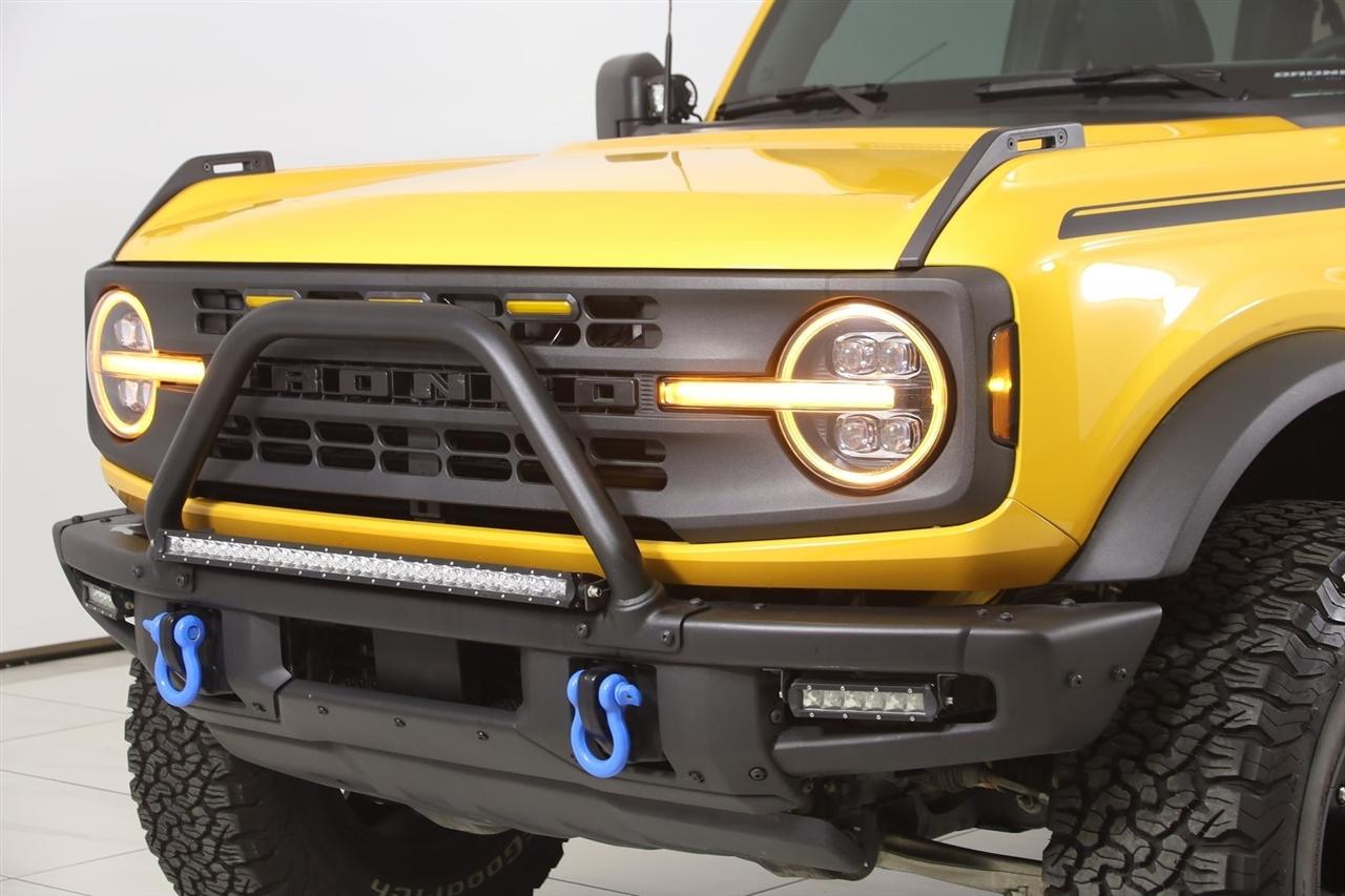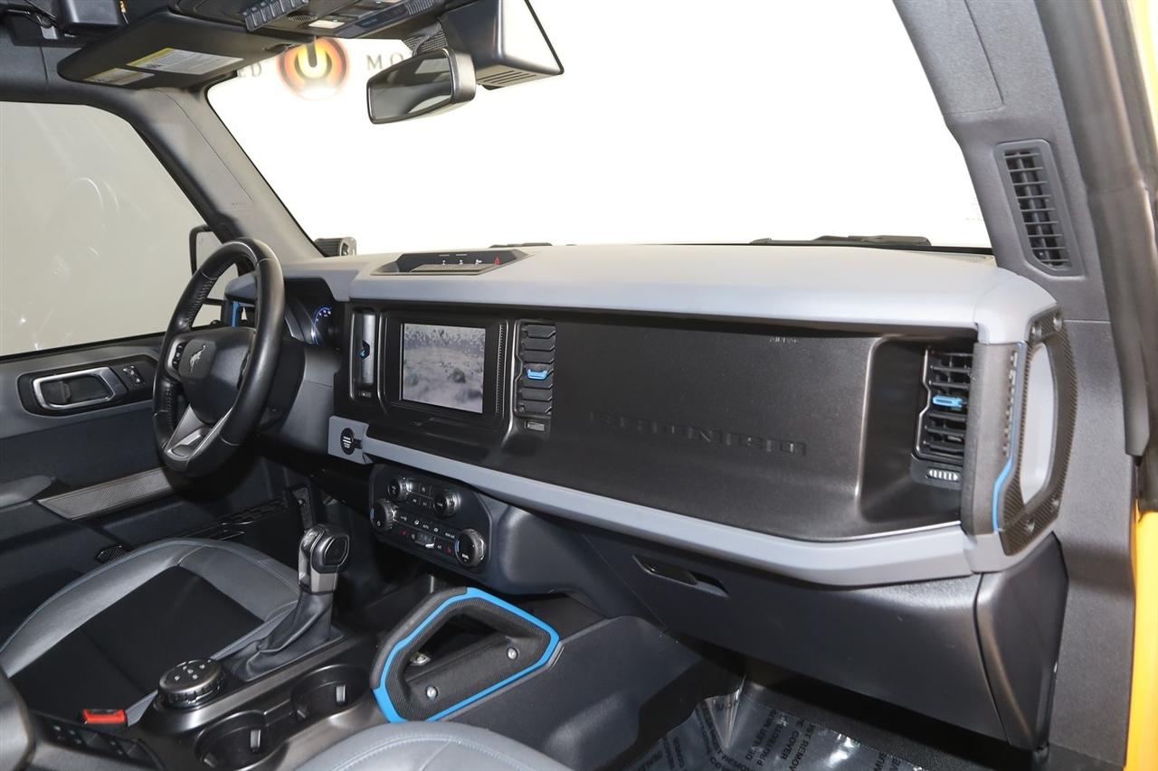Navigation, Back Up Camera, Bluetooth, Sun/Moon Roof, Running Boards, Winch, Touch Screen, Heated Front Seats, Blind Spot, Apple CarPlay/Android Auto, Bronco Black Diamond, 4D Sport Utility, 2.7L EcoBoost V6, 10-Speed Automatic, 4WD, Orange Metallic, Dark Gray W/Black Onyx Vinyl, Navigation System, Navigation system: Connected Navigation.