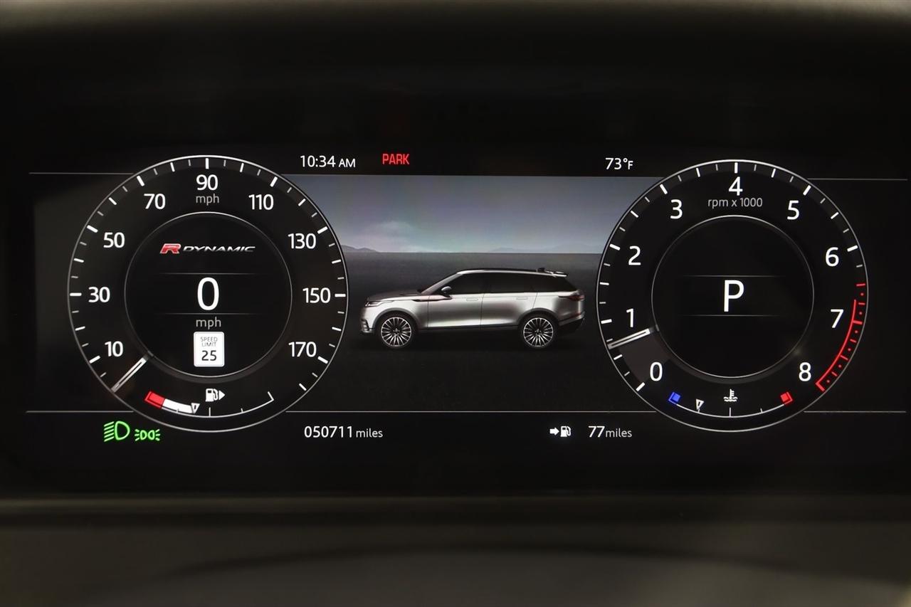 Navigation, Back Up Camera, Bluetooth, Sun/Moon Roof, Panoramic Roof, Touch Screen, Heated Front Seats, Heated Steering Wheel, Ventilated Front Seats, Blind Spot, Memory Driver Seat, Apple CarPlay/Android Auto, Massage Front Seats, Range Rover Velar D180 HSE R-Dynamic, 4D Sport Utility, V6 Supercharged, 8-Speed Automatic, 4WD, Indus Silver Metallic, Black Leather, 360 Surround Camera, 4-Zone Climate Control, Adaptive Cruise w/Steering Assist, Cabin Air Ionization, Chrome IP End Caps, Cold Climate Pack, Configurable Ambient Interior Lighting, Driver Assist Pack, Heated Steering Wheel, Heated Windshield, Hot Climate Pack, Illuminated Metal Front Treadplates w/R-Dynamic, Illuminated Metal Loadspace Scuff Plate, Lockable Cooled Glovebox, Navigation System, Premium Upgrade Interior Pack, Suedecloth Headliner Material.