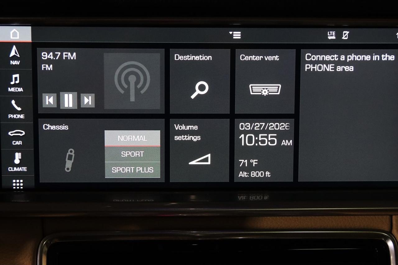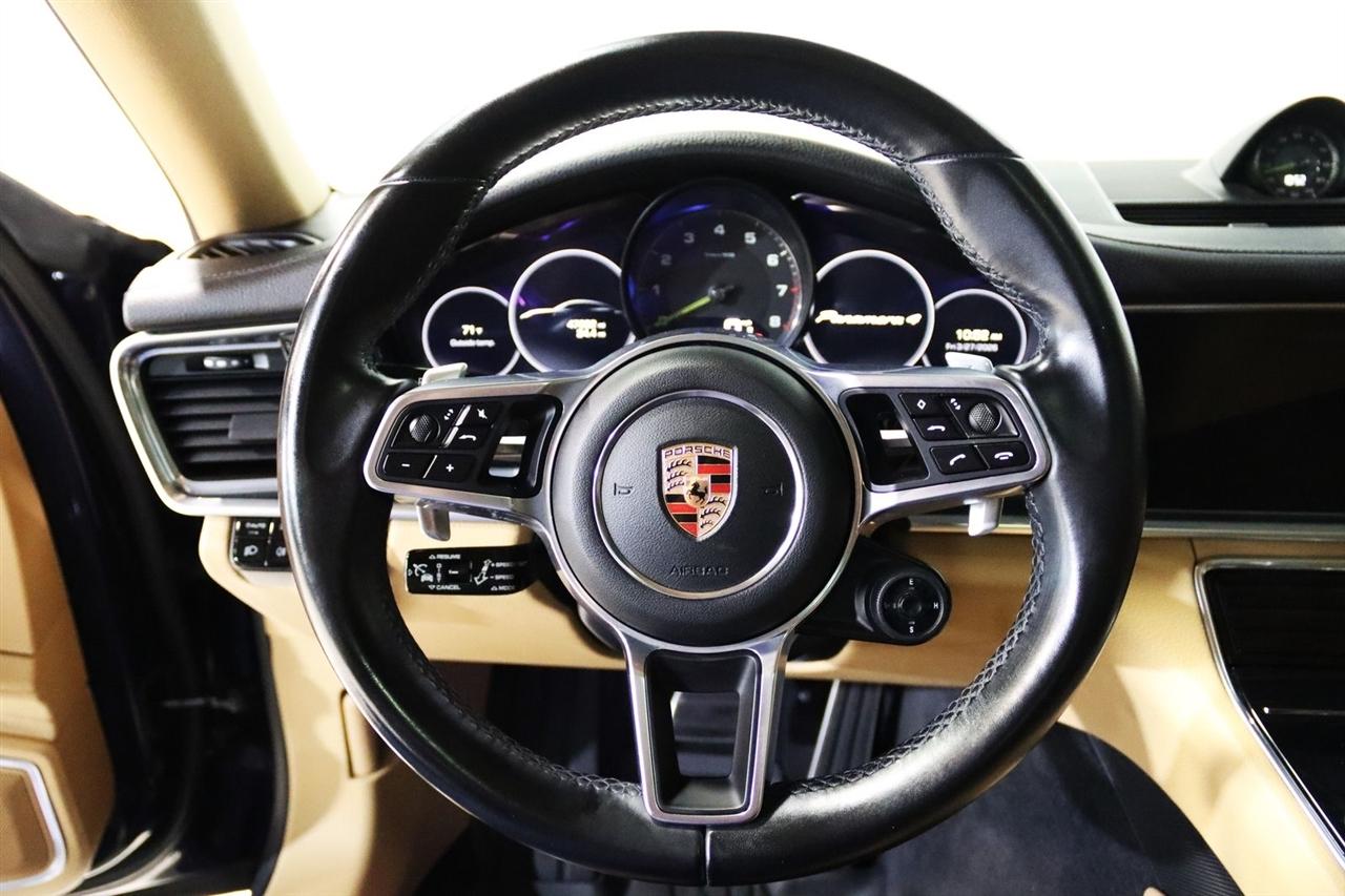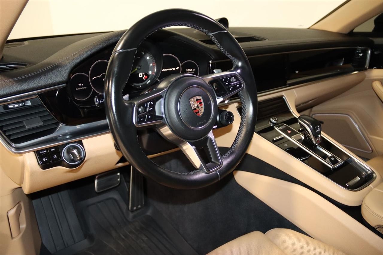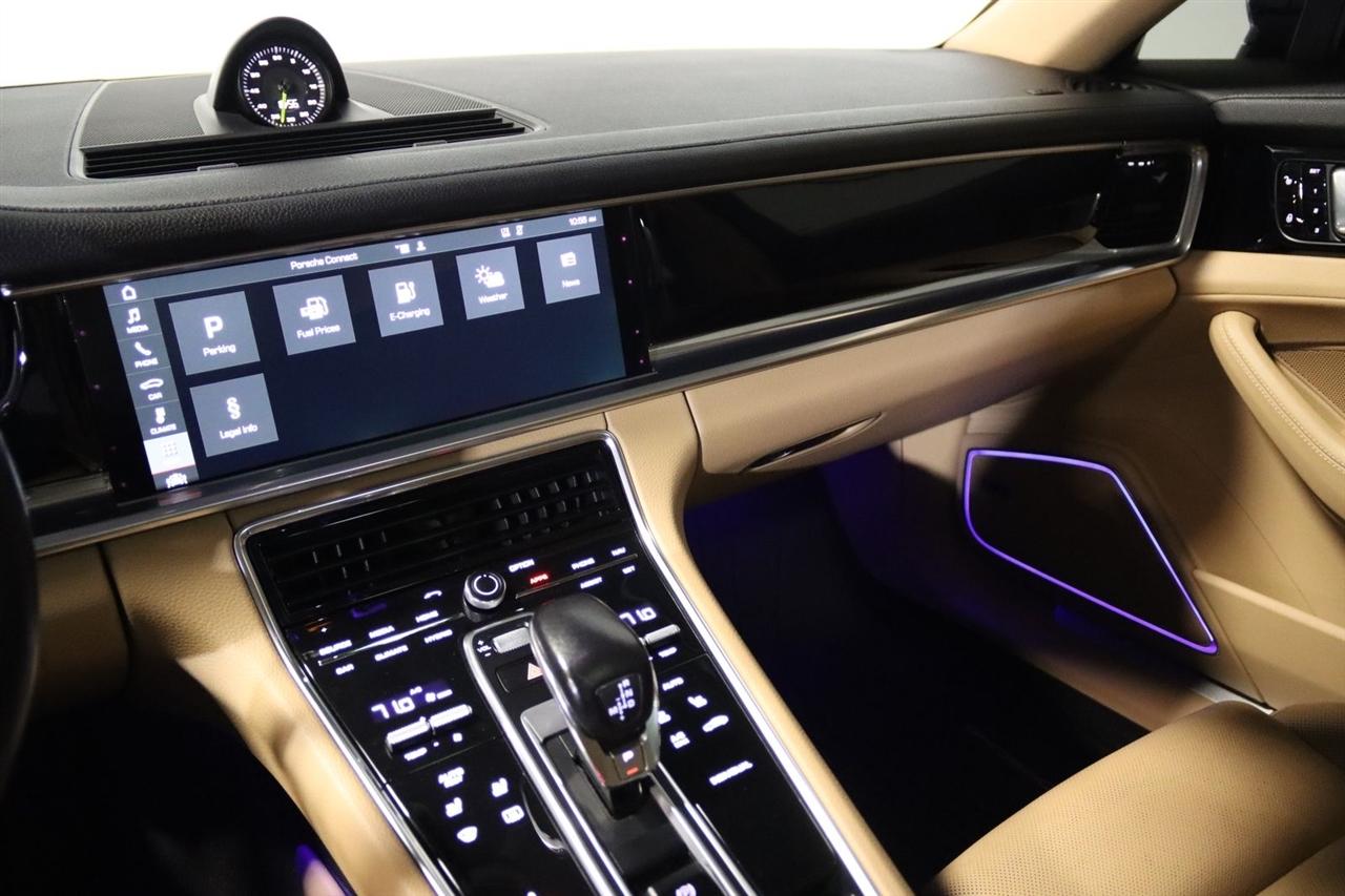 Navigation, Bluetooth, Back Up Camera, Panoramic Roof, Heated Seats, Touch Screen, 10 Speakers, 14-Way Power Seats, 4-Wheel Disc Brakes, 8-Way Power Seats, ABS brakes, Adaptive suspension, Air Conditioning, Alloy wheels, AM/FM radio: SiriusXM, Apple CarPlay, Assistance Package, Auto-dimming door mirrors, Auto-dimming Rear-View mirror, Auto-leveling suspension, Automatic temperature control, BOSE Surround Sound-System, Brake assist, Bumpers: body-color, CD player, Comfort Access, Compass, Delay-off headlights, Driver door bin, Driver vanity mirror, Dual front impact airbags, Dual front side impact airbags, DVD-Audio, Electronic Stability Control, Exterior Parking Camera Rear, Four wheel independent suspension, Front & Rear Seat Heating, Front anti-roll bar, Front Bucket Seats, Front Center Armrest, Front dual zone A/C, Front reading lights, Front Seat Ventilation, Fully automatic headlights, Garage door transmitter: HomeLink, Heated door mirrors, Heated front seats, Illuminated entry, Knee airbag, Lane Change Assist (LCA), Lane Keep Assist w/Speed Limit Indicator, Leather Shift Knob, Leather steering wheel, LED Headlights w/Porsche Dynamic Light System, Low tire pressure warning, Memory seat, Navigation System, Night Vision Assist, Occupant sensing airbag, Outside temperature display, Overhead airbag, Overhead console, Panic alarm, Partial Leather Seat Trim, Passenger door bin, Passenger vanity mirror, Porsche Communication Management, Porsche InnoDrive w/Adaptive Cruise Control, Power door mirrors, Power driver seat, Power Liftgate, Power moonroof, Power passenger seat, Power steering, Power windows, Premium Package Plus, Radio data system, Rain sensing wipers, Rear anti-roll bar, Rear fog lights, Rear reading lights, Rear seat center armrest, Rear side impact airbag, Rear window defroster, Remote keyless entry, Security system, Soft Close Doors, Speed control, Split folding rear seat, Spoiler, Steering wheel mounted audio controls, Tachometer, Telescoping steering wheel, Tilt steering wheel, Traction control, Trip computer, Variably intermittent wipers, Wheels: 20" Panamera Turbo. Clean CARFAX. Odometer is 5796 miles below market average!