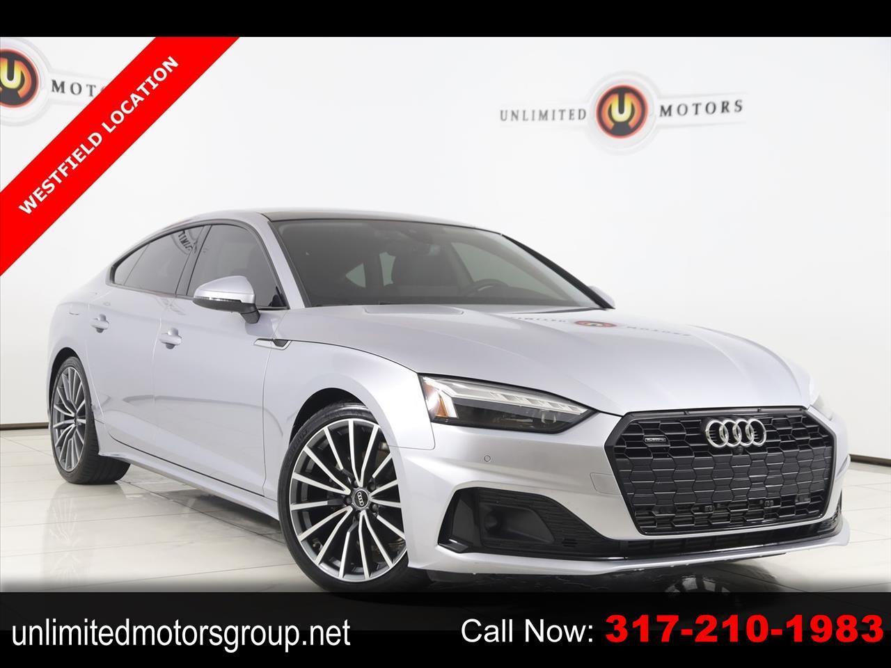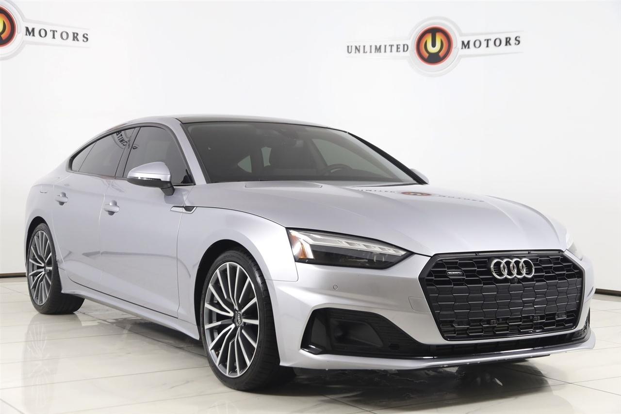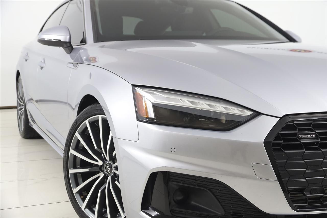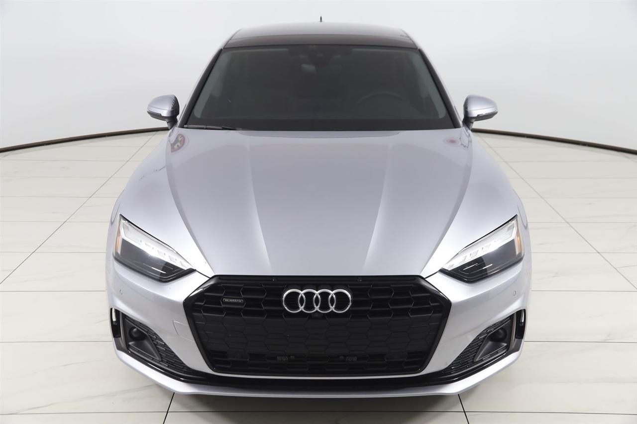 Navigation, Back Up Camera, Bluetooth, Sun/Moon Roof, Touch Screen, Heated Front Seats, Blind Spot, Memory Driver Seat, Apple CarPlay/Android Auto, A5 Sportback Premium Plus quattro, 4D Hatchback, 2.0L 4-Cylinder TFSI, 7-Speed Automatic S tronic, quattro, Florett Silver Metallic, Black Leather, Navigation System.