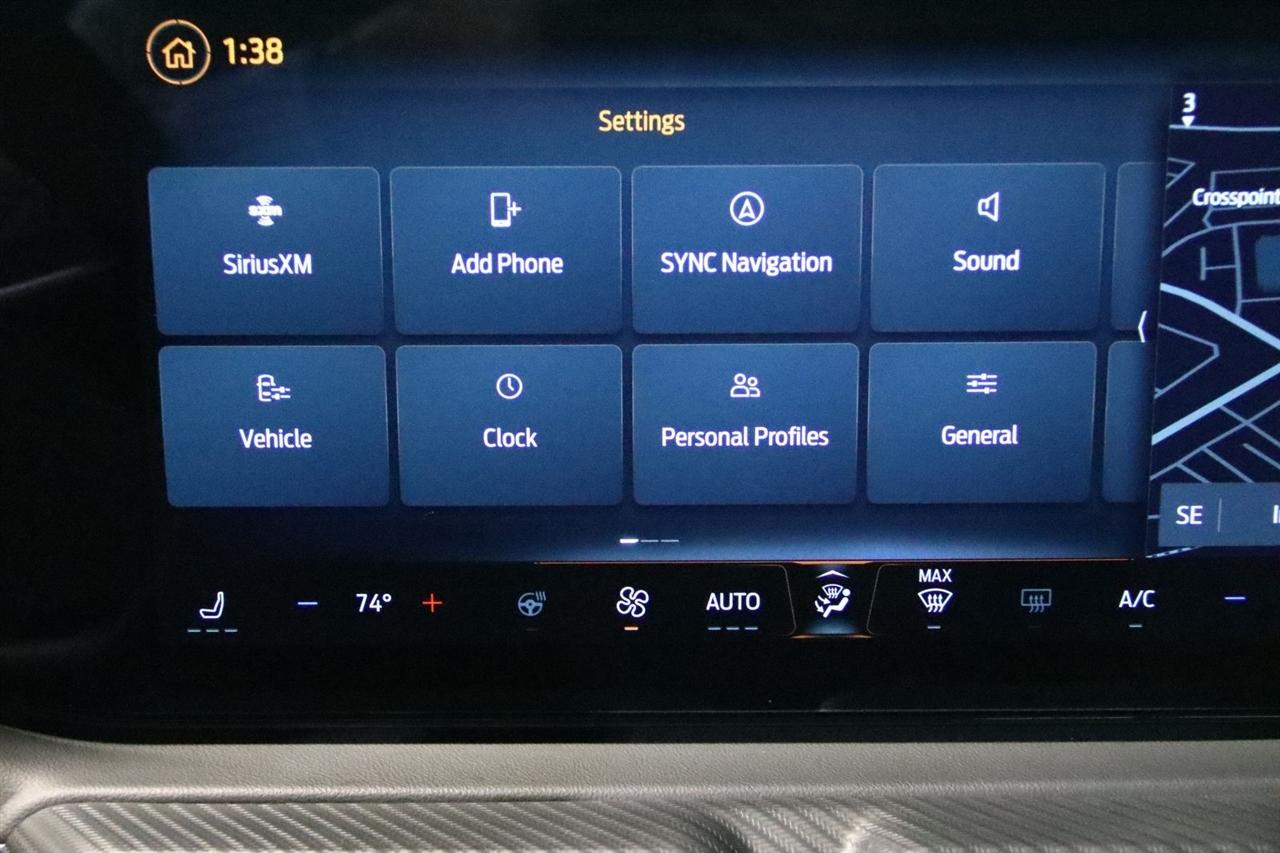 Navigation, Bluetooth, Back Up Camera, Touch Screen, 3.15 Limited-Slip Rear-Axle, 4-Wheel Disc Brakes, 9 Speakers, ABS brakes, Active Anti-Theft System, Air Conditioning, Alloy wheels, AM/FM radio: SiriusXM with 360L, AM/FM Stereo, Auto High-beam Headlights, Auto-dimming Rear-View mirror, Automatic temperature control, B&O Sound System by Bang & Olufsen, Brake assist, Bumpers: body-color, Climate Controlled Heated/Cooled Front Seats, Compass, Connected Built-In Navigation, Delay-off headlights, Driver door bin, Driver vanity mirror, Dual front impact airbags, Dual front side impact airbags, Electronic Stability Control, Emergency communication system: 911 Assist, Equipment Group 401A High Package, Exterior Parking Camera Rear, Ford Co-Pilot360 Assist+, Four wheel independent suspension, Front anti-roll bar, Front Bucket Seats, Front Center Armrest, Front dual zone A/C, Front reading lights, Fully automatic headlights, Garage door transmitter, HD Radio, Heated door mirrors, Heated front seats, Heated steering wheel, Illuminated Door-Sill Scuff Plates, Illuminated entry, Integrated Turn Signals, Knee airbag, Leather Shift Knob, Leather steering wheel, Leather-Trimmed Bucket Seats, Leather-Trimmed Bucket Seats w/Color Accents, Locking Center Console, Low tire pressure warning, Memory Driver Seat & Mirrors, Navigation System, Occupant sensing airbag, Outside temperature display, Overhead airbag, Overhead console, Panic alarm, Passenger door bin, Passenger vanity mirror, Power door mirrors, Power driver seat, Power passenger seat, Power steering, Power windows, Pre-Collision Assist w/Automatic Emergency Braking, Premium Floor Mats w/Metal Gray Accent Stitch, Radio data system, Rain sensing wipers, Rear anti-roll bar, Rear Parking Sensors, Rear window defroster, Remote keyless entry, Seat Belt w/Color Accent, Security Package, SiriusXM w/360L, Speed control, Speed-sensing steering, Speed-Sensitive Wipers, Split folding rear seat, Spoiler, Sport steering wheel, Start/Stop System (DISC), Steering wheel mounted audio controls, SYNC 4.0 QNX, Tachometer, Telescoping steering wheel, Tilt steering wheel, Traction control, Trip computer, Turn signal indicator mirrors, Variably intermittent wipers, Ventilated front seats, Voltmeter, Wheel Locking Kit, Wheels: 19" x 8.5" Shadow Silver-Painted Aluminum. CARFAX One-Owner. Clean CARFAX. Odometer is 1699 miles below market average!