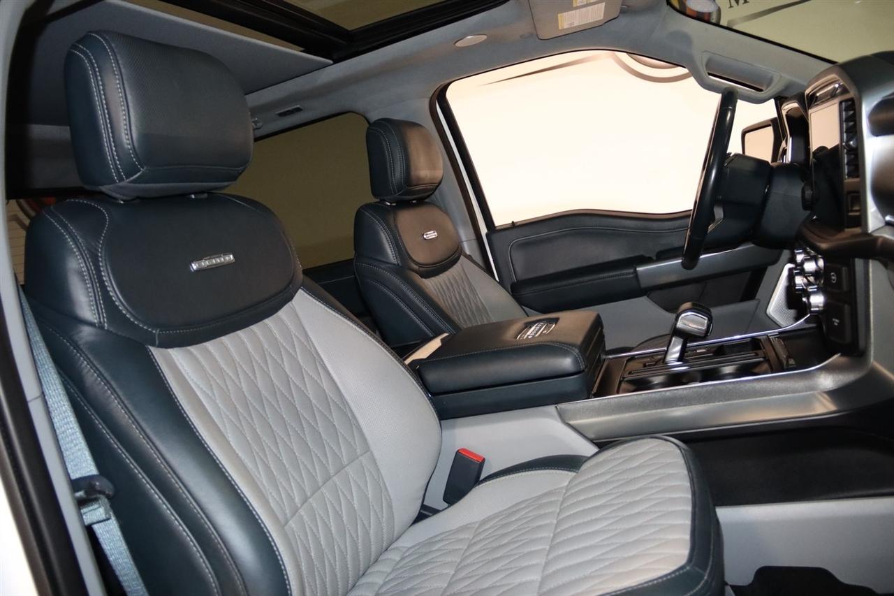 Navigation, Bluetooth, Back Up Camera, Towing, Touch Screen, 18 Speakers, 22" Polished Aluminum Wheels, 4-Wheel Disc Brakes, ABS brakes, Active Park Assist 2.0 Removal, Adaptive suspension, Adjustable pedals, Air Conditioning, Alloy wheels, AM/FM radio: SiriusXM with 360L, Auto High-beam Headlights, Auto tilt-away steering wheel, Auto-dimming door mirrors, Auto-dimming Rear-View mirror, Automatic temperature control, Brake assist, Bumpers: body-color, Compass, Delay-off headlights, Driver door bin, Driver vanity mirror, Dual front impact airbags, Dual front side impact airbags, Electronic Locking w/3.73 Axle Ratio, Electronic Stability Control, Emergency communication system: SYNC 4 911 Assist, Equipment Group 900A Standard, Exterior Parking Camera Rear, Front anti-roll bar, Front Bucket Seats, Front Center Armrest, Front dual zone A/C, Front fog lights, Front reading lights, Front wheel independent suspension, Fully automatic headlights, Garage door transmitter, GVWR: 7,050 lbs Payload Package, Heated door mirrors, Heated front seats, Heated rear seats, Heated steering wheel, Illuminated entry, Inclination/Intrusion Sensor Removal, Low tire pressure warning, Memory seat, Multicontour Seats w/Active Motion Removal, Navigation System, Navigation system: Connected Navigation, Occupant sensing airbag, Outside temperature display, Overhead airbag, Overhead console, Panic alarm, Passenger door bin, Passenger vanity mirror, Pedal memory, Power door mirrors, Power driver seat, Power moonroof, Power passenger seat, Power steering, Power windows, Radio data system, Radio: B&O Unleashed Sound System by Bang & Olufsen, Rain sensing wipers, Rear reading lights, Rear seat center armrest, Rear step bumper, Rear window defroster, Remote keyless entry, Security system, Speed control, Speed-sensing steering, Split folding rear seat, Steering Wheel Heat Removal (DISC), Steering wheel memory, Steering wheel mounted audio controls, Tachometer, Telescoping steering wheel, Tilt steering wheel, Traction control, Trip computer, Turn signal indicator mirrors, Unique Leather Bucket Seats, Variably intermittent wipers, Ventilated front seats, Voltmeter. Priced below KBB Fair Purchase Price!