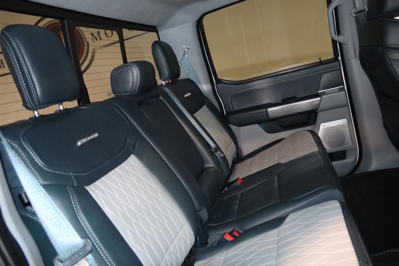 Navigation, Bluetooth, Back Up Camera, Towing, Touch Screen, 18 Speakers, 22" Polished Aluminum Wheels, 4-Wheel Disc Brakes, ABS brakes, Active Park Assist 2.0 Removal, Adaptive suspension, Adjustable pedals, Air Conditioning, Alloy wheels, AM/FM radio: SiriusXM with 360L, Auto High-beam Headlights, Auto tilt-away steering wheel, Auto-dimming door mirrors, Auto-dimming Rear-View mirror, Automatic temperature control, Brake assist, Bumpers: body-color, Compass, Delay-off headlights, Driver door bin, Driver vanity mirror, Dual front impact airbags, Dual front side impact airbags, Electronic Locking w/3.73 Axle Ratio, Electronic Stability Control, Emergency communication system: SYNC 4 911 Assist, Equipment Group 900A Standard, Exterior Parking Camera Rear, Front anti-roll bar, Front Bucket Seats, Front Center Armrest, Front dual zone A/C, Front fog lights, Front reading lights, Front wheel independent suspension, Fully automatic headlights, Garage door transmitter, GVWR: 7,050 lbs Payload Package, Heated door mirrors, Heated front seats, Heated rear seats, Heated steering wheel, Illuminated entry, Inclination/Intrusion Sensor Removal, Low tire pressure warning, Memory seat, Multicontour Seats w/Active Motion Removal, Navigation System, Navigation system: Connected Navigation, Occupant sensing airbag, Outside temperature display, Overhead airbag, Overhead console, Panic alarm, Passenger door bin, Passenger vanity mirror, Pedal memory, Power door mirrors, Power driver seat, Power moonroof, Power passenger seat, Power steering, Power windows, Radio data system, Radio: B&O Unleashed Sound System by Bang & Olufsen, Rain sensing wipers, Rear reading lights, Rear seat center armrest, Rear step bumper, Rear window defroster, Remote keyless entry, Security system, Speed control, Speed-sensing steering, Split folding rear seat, Steering Wheel Heat Removal (DISC), Steering wheel memory, Steering wheel mounted audio controls, Tachometer, Telescoping steering wheel, Tilt steering wheel, Traction control, Trip computer, Turn signal indicator mirrors, Unique Leather Bucket Seats, Variably intermittent wipers, Ventilated front seats, Voltmeter. Priced below KBB Fair Purchase Price!