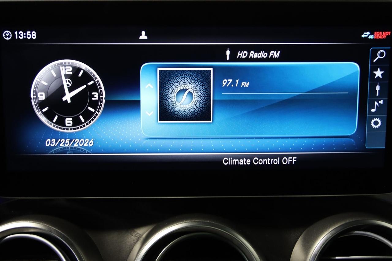 Bluetooth, Back Up Camera, Sun/Moon Roof, Heated Seats, Touch Screen, 4-way Power Driver's Lumbar Support, 4-Wheel Disc Brakes, 5 Speakers, ABS brakes, Air Conditioning, Alloy wheels, Aluminum Pedals, AM/FM radio, AMG® Body Styling, AMG® Line, AMG® Line Exterior, AMG® Line Interior, Android Auto®, Anti-whiplash front head restraints, Apple CarPlay®, Apple CarPlay®/Android Auto®, Auto tilt-away steering wheel, Auto-dimming door mirrors, Auto-dimming Rear-View mirror, Automatic temperature control, Black Fabric Headliner, Brake assist, Bumpers: body-color, Burmester® Surround Sound System, Child-Seat-Sensing Airbag, Compass, Delay-off headlights, Diamond Grille in Chrome, Driver door bin, Driver vanity mirror, Dual front impact airbags, Dual front side impact airbags, Electronic Stability Control, Electronic Trunk Closer, Emergency communication system, Exterior Parking Camera Rear, Flat-Bottom Steering Wheel, Four wheel independent suspension, Front anti-roll bar, Front Brakes w/Perforated Discs, Front Bucket Seats, Front Center Armrest, Front dual zone A/C, Front reading lights, Fully automatic headlights, Garage door transmitter: Homelink, Genuine wood console insert, HANDS-FREE ACCESS, HANDS-FREE Comfort Package, HD Radio, Head restraints memory, Heated door mirrors, Illuminated entry, KEYLESS GO®, Knee airbag, Low tire pressure warning, MB-Tex Upholstery, Memory seat, Occupant sensing airbag, Outside temperature display, Overhead airbag, Overhead console, Panic alarm, Passenger door bin, Passenger vanity mirror, Power adjustable front head restraints, Power door mirrors, Power driver seat, Power Folding Mirrors, Power Front Seats w/Driver Memory, Power moonroof: Panorama, Power passenger seat, Power steering, Power windows, Premium Package, Radio data system, Radio: Audio 20, Rain sensing wipers, Rear anti-roll bar, Rear fog lights, Rear window defroster, Remote keyless entry, Security system, SiriusXM Satellite Radio, Speed control, Speed-sensing steering, Split folding rear seat, Sport Suspension, Steering wheel memory, Steering wheel mounted audio controls, Tachometer, Telescoping steering wheel, Tilt steering wheel, Traction control, Trip computer, Turn signal indicator mirrors, Variably intermittent wipers, Weather band radio, Wheels: 19" AMG® Multispoke. Clean CARFAX. 22/31 City/Highway MPG