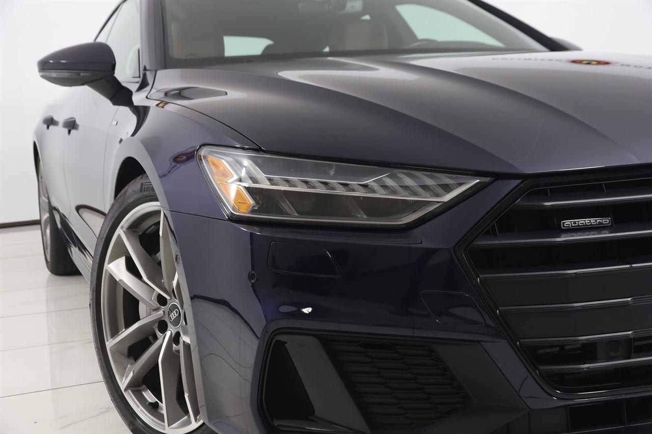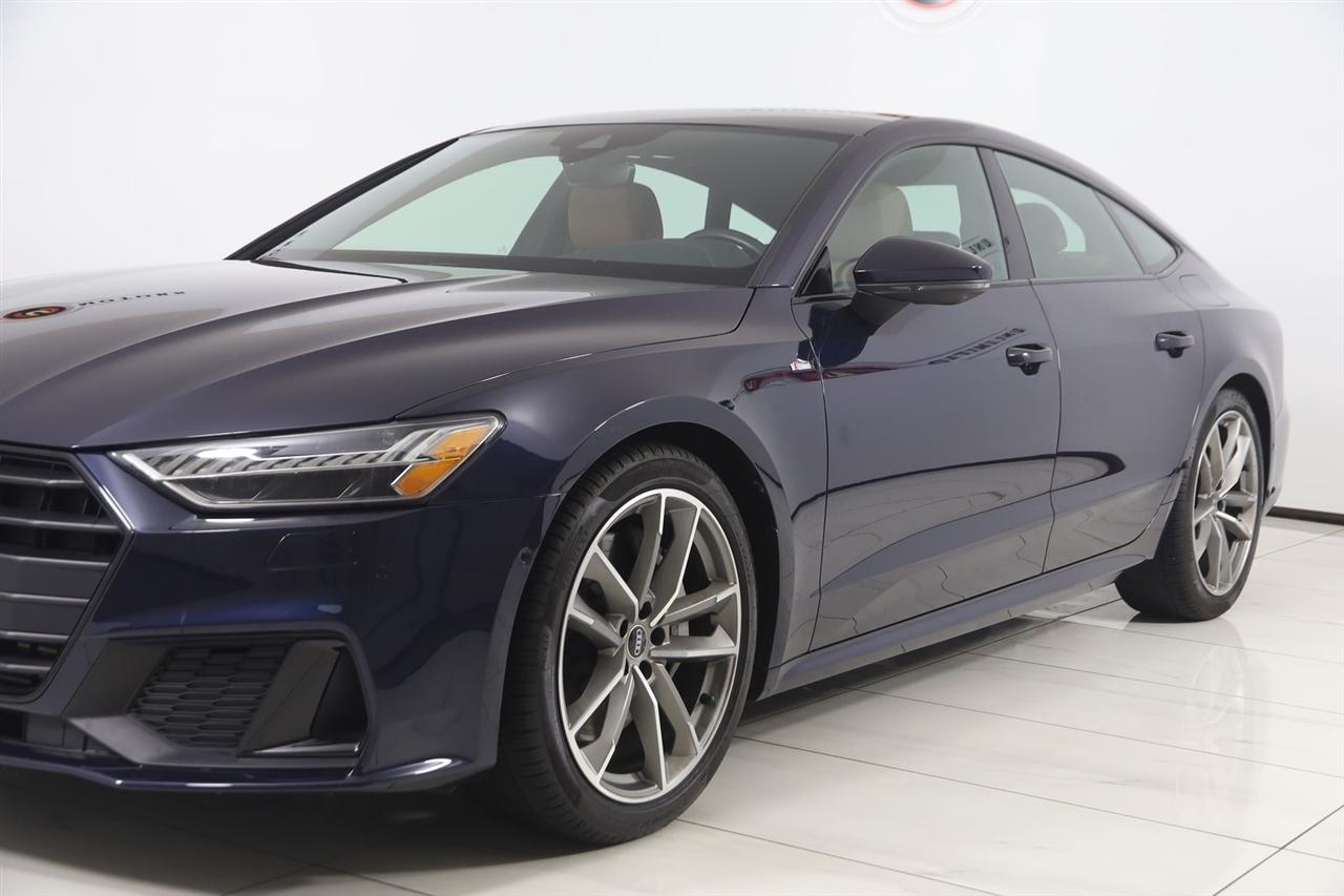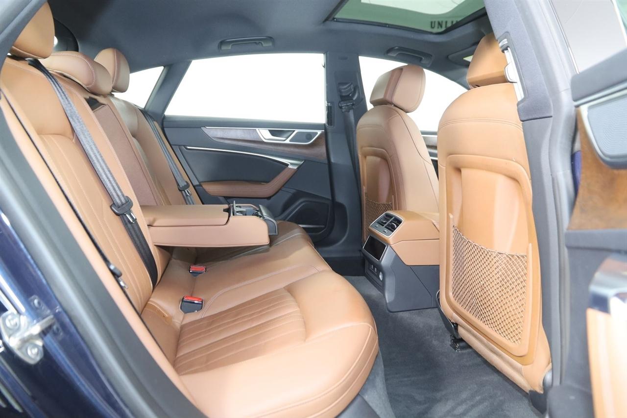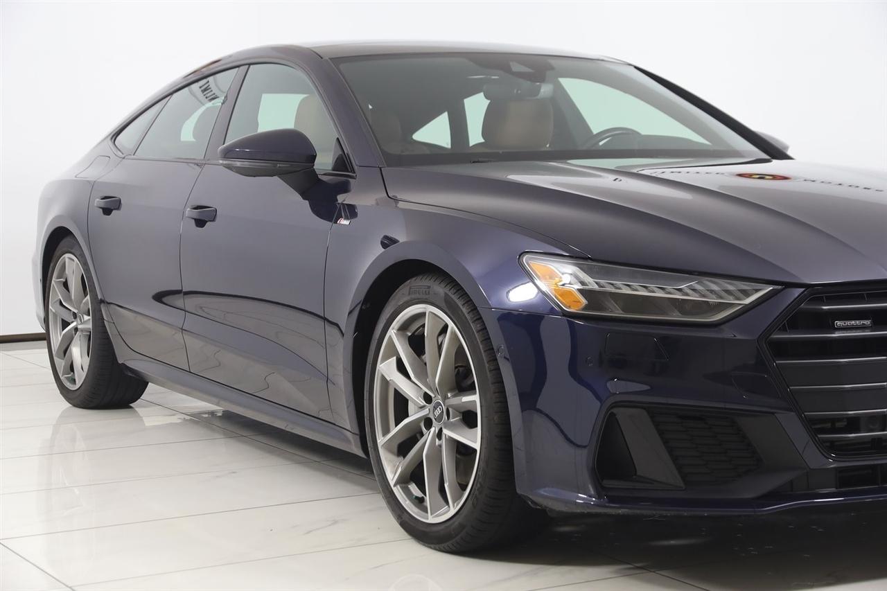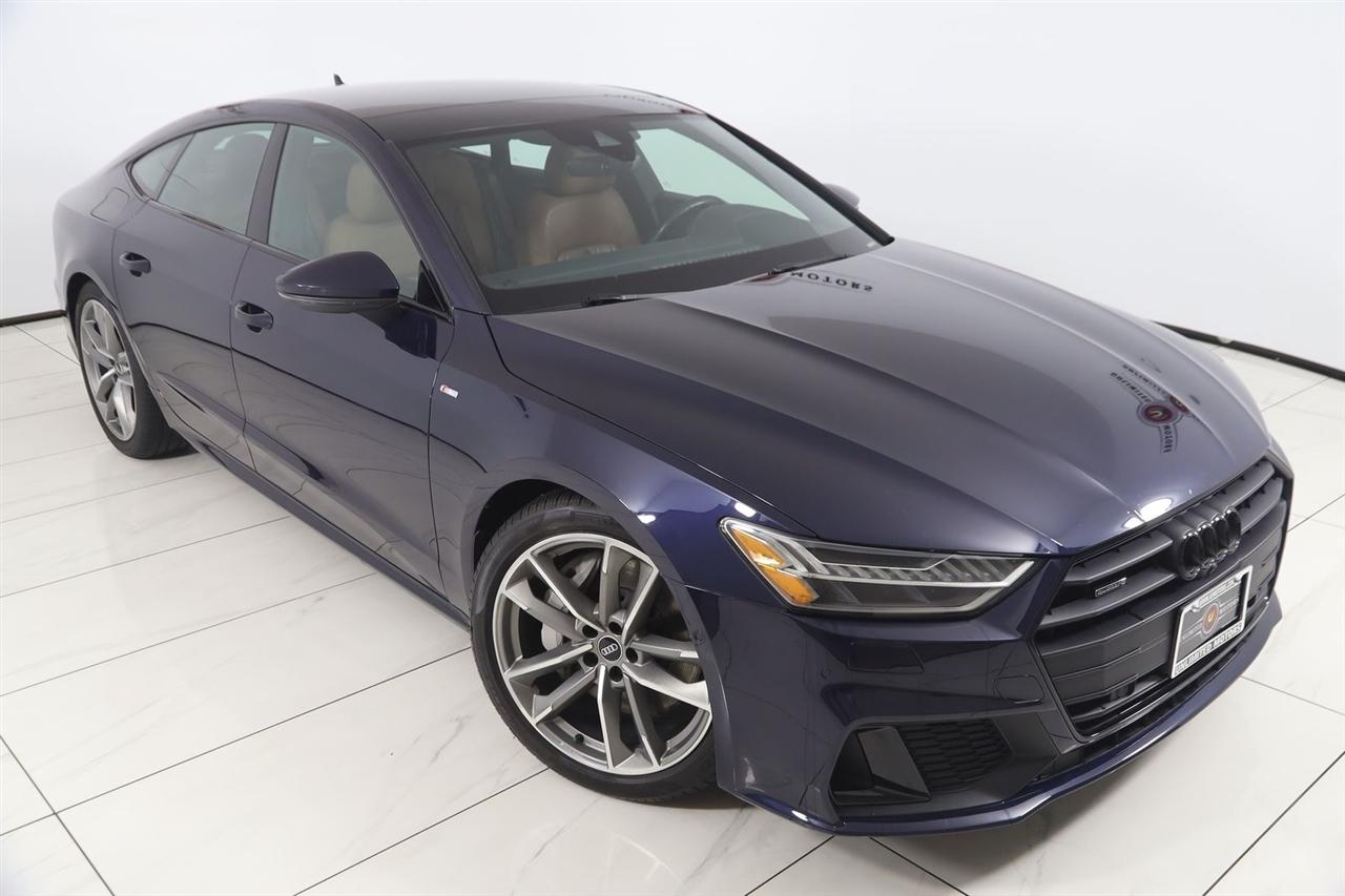 Navigation, Back Up Camera, Bluetooth, Sun/Moon Roof, Touch Screen, Heated Front Seats, Blind Spot, Apple CarPlay/Android Auto, A7 e Premium Plus quattro, 4D Hatchback, 2.0L I4 Turbocharged DOHC 16V LEV3-SULEV30, 7-Speed Automatic, quattro, Blue Metallic, Brown Leather, Navigation System, Navigation system: MMI Navigation plus.