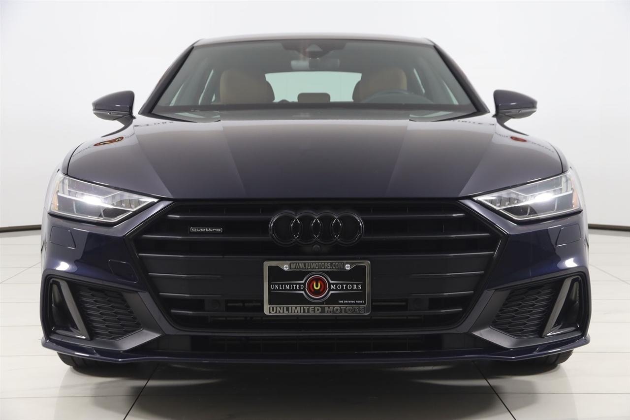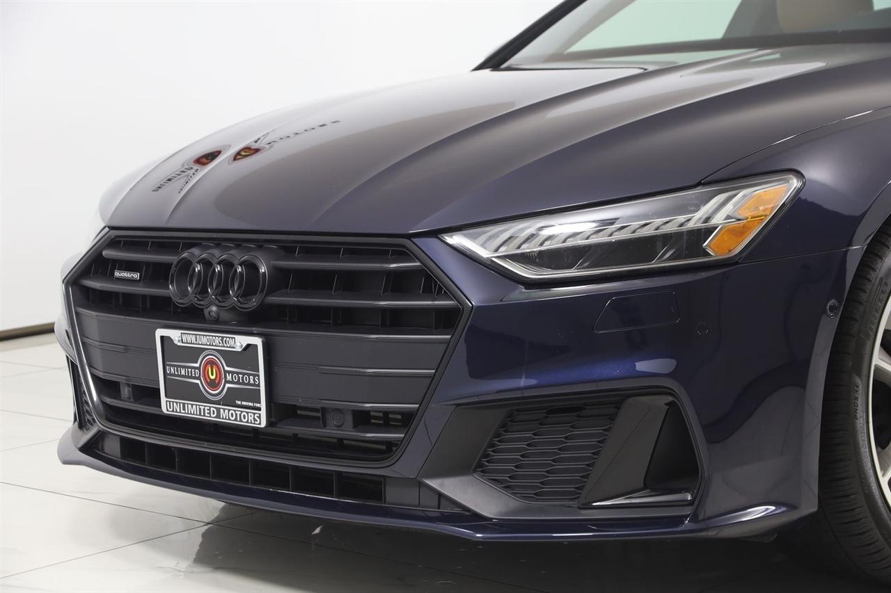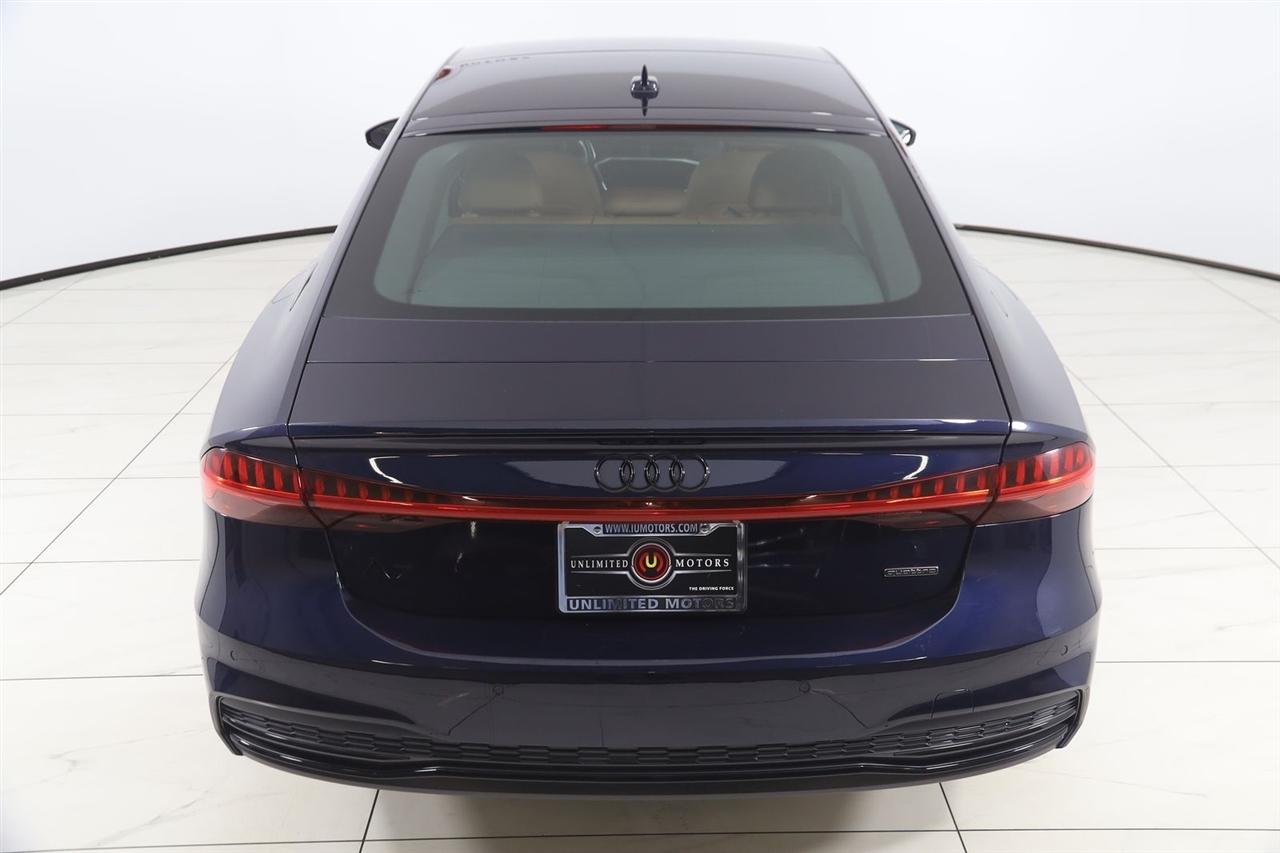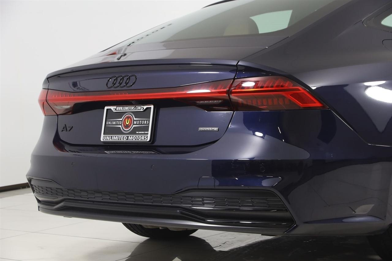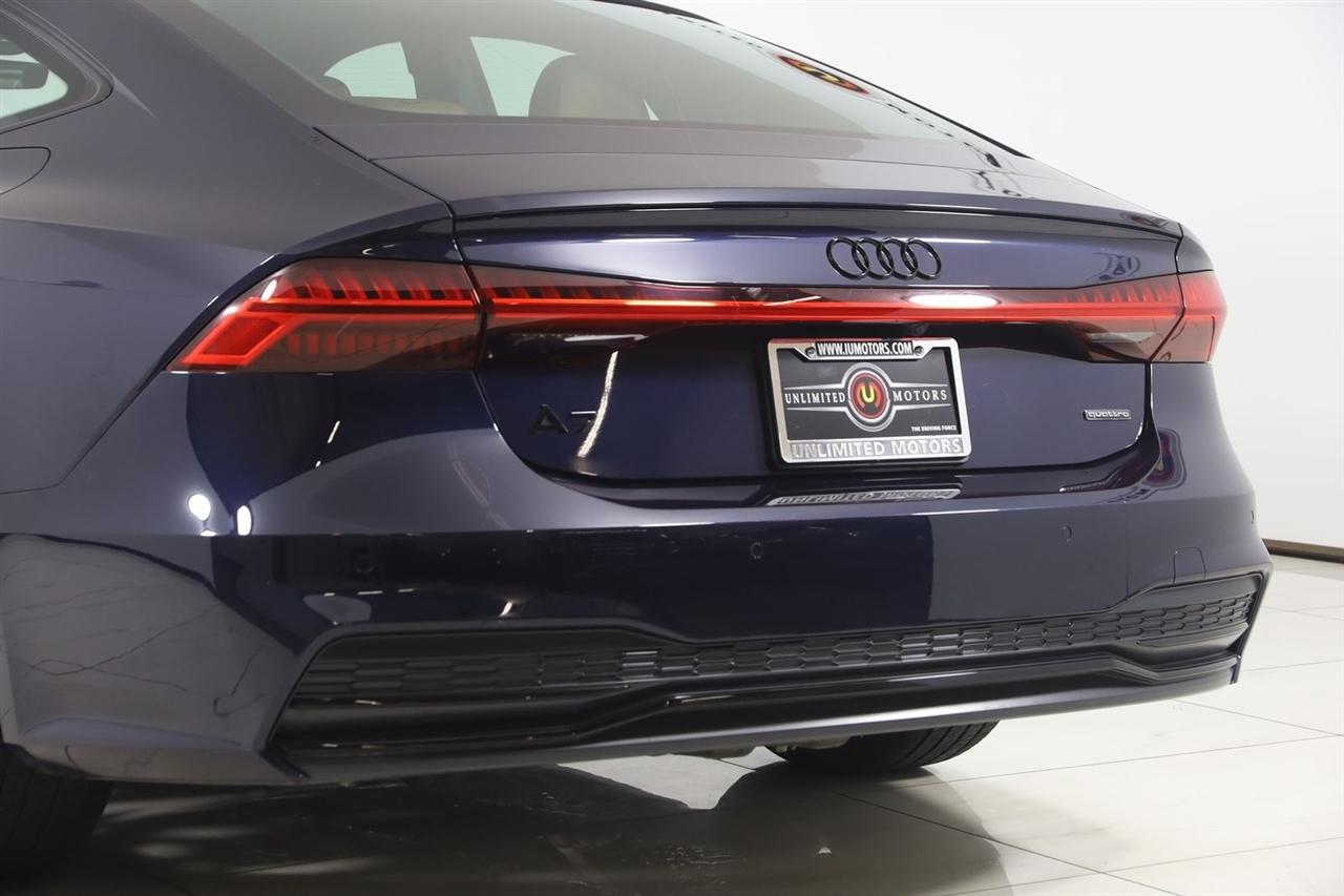 Navigation, Back Up Camera, Bluetooth, Sun/Moon Roof, Touch Screen, Heated Front Seats, Blind Spot, Apple CarPlay/Android Auto, A7 e Premium Plus quattro, 4D Hatchback, 2.0L I4 Turbocharged DOHC 16V LEV3-SULEV30, 7-Speed Automatic, quattro, Blue Metallic, Brown Leather, Navigation System, Navigation system: MMI Navigation plus.
