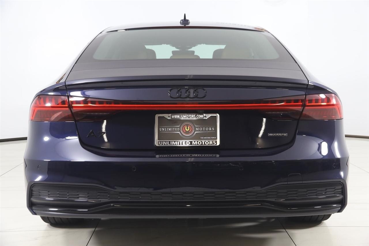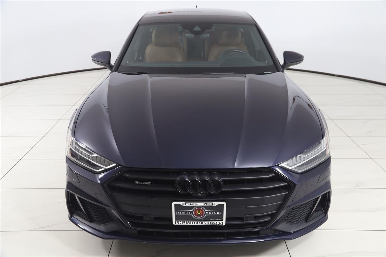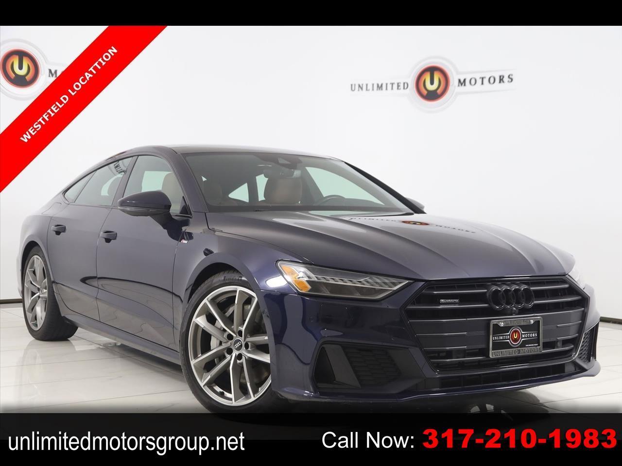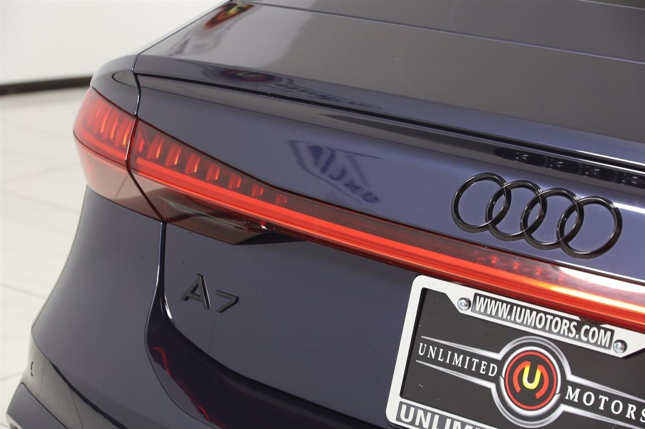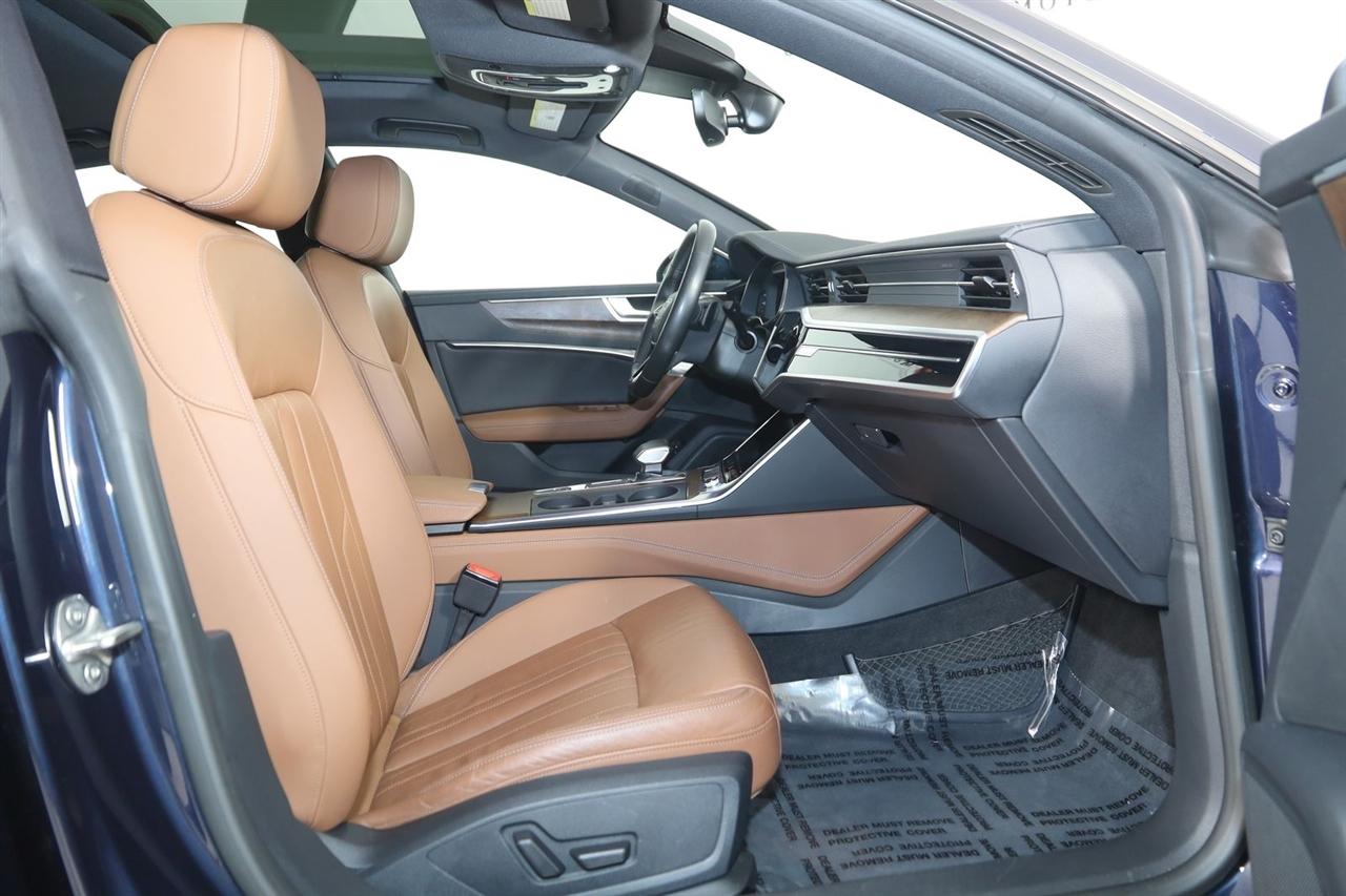 Navigation, Back Up Camera, Bluetooth, Sun/Moon Roof, Touch Screen, Heated Front Seats, Blind Spot, Apple CarPlay/Android Auto, A7 e Premium Plus quattro, 4D Hatchback, 2.0L I4 Turbocharged DOHC 16V LEV3-SULEV30, 7-Speed Automatic, quattro, Blue Metallic, Brown Leather, Navigation System, Navigation system: MMI Navigation plus.