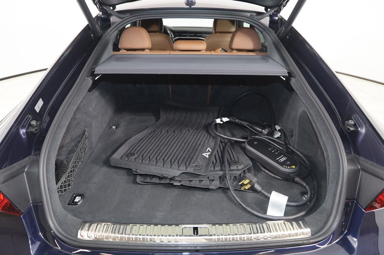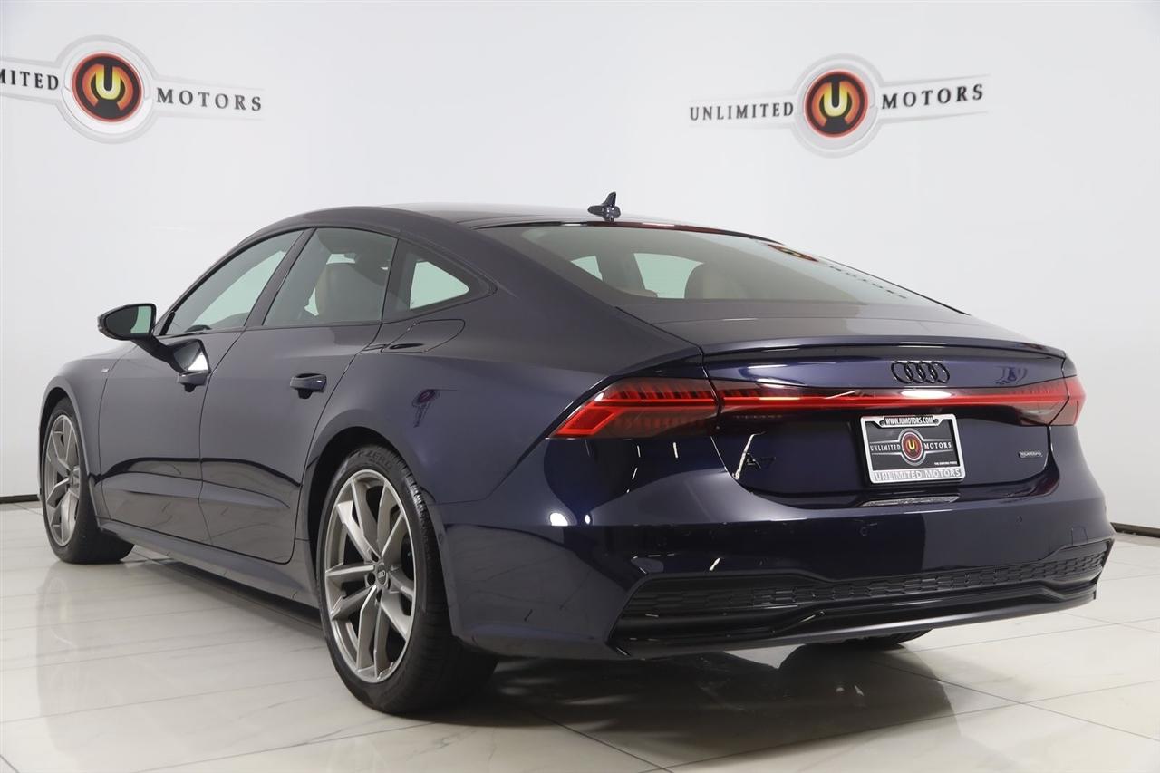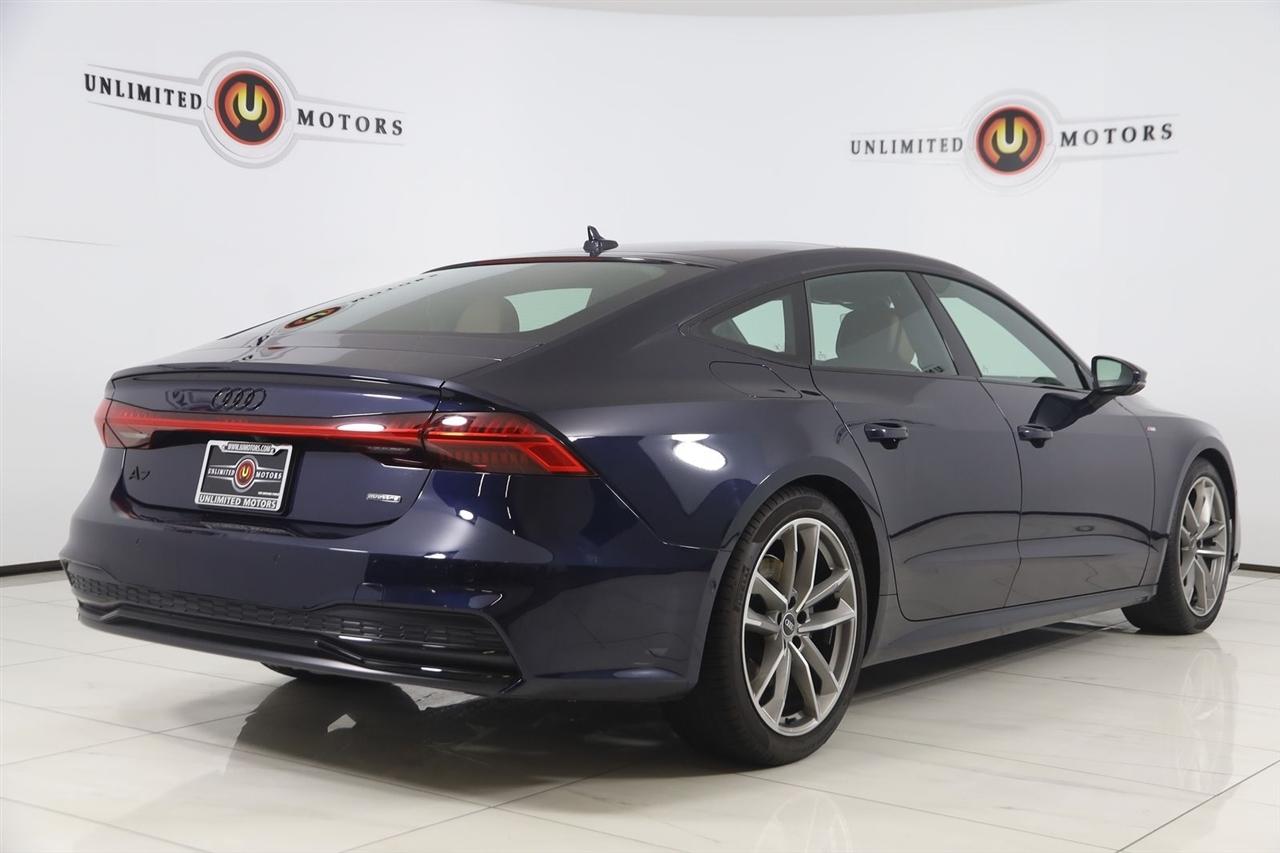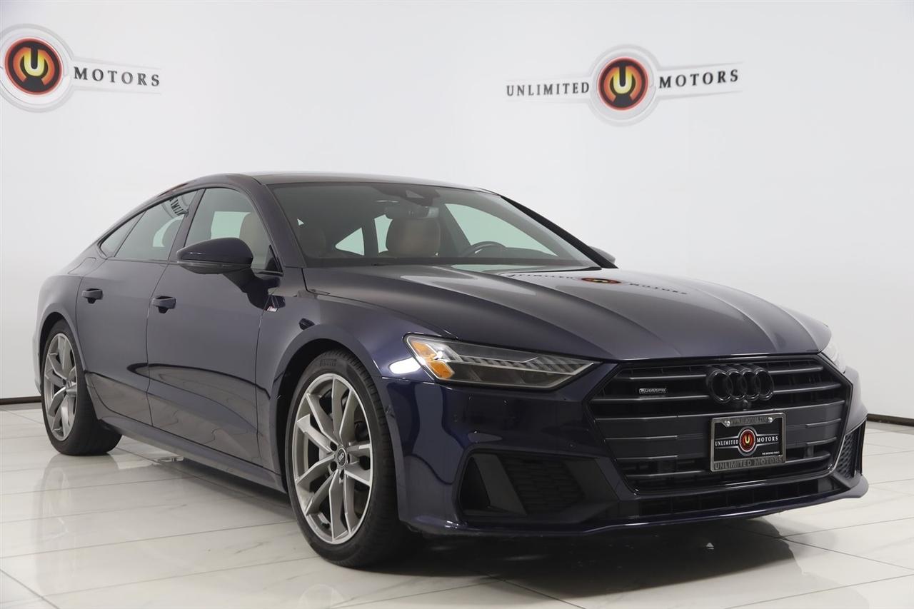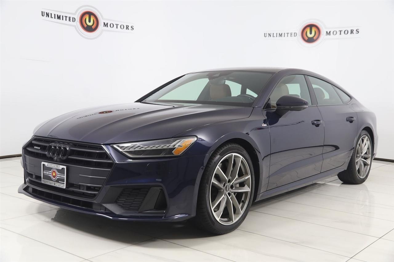 Navigation, Back Up Camera, Bluetooth, Sun/Moon Roof, Touch Screen, Heated Front Seats, Blind Spot, Apple CarPlay/Android Auto, A7 e Premium Plus quattro, 4D Hatchback, 2.0L I4 Turbocharged DOHC 16V LEV3-SULEV30, 7-Speed Automatic, quattro, Blue Metallic, Brown Leather, Navigation System, Navigation system: MMI Navigation plus.