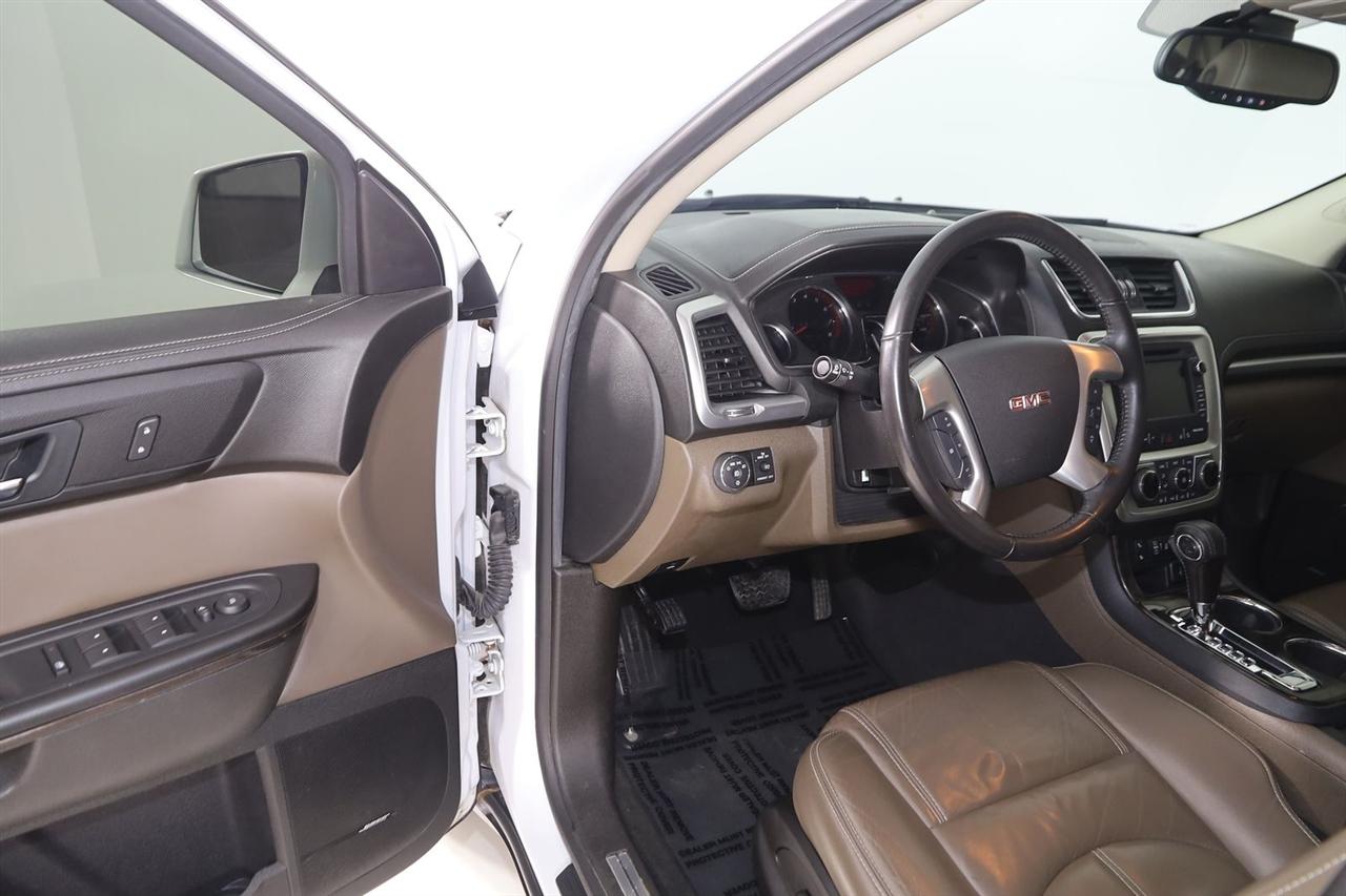 Navigation, Back Up Camera, Bluetooth, Panoramic Roof, Winch, Touch Screen, Heated Front Seats, Acadia SLT-1, 4D Sport Utility, 3.6L V6 SIDI, 6-Speed Automatic, FWD, White Frost Tricoat, Dark Cashmere Leather, 8-Way Power Driver Seat, 8-Way Power Passenger Seat Adjuster, Acoustical Insulation Package, Body-Color Bodyside Moldings, Body-Color Heated Power-Adjustable Outside Mirrors, Bose Premium 10-Speaker Audio System, Carpeted Removable Front 2nd & 3rd Row Floor Mats, Dual SkyScape 2-Panel Power Sunroof, Forward Collision Alert & Lane Departure Warning, Inside Rear-View Auto-Dimming Mirror, Leather-Wrapped Steering Wheel, Navigation System, Open Road Package, Power Rear Liftgate Body, Preferred Equipment Group 4SA, Radio: Color Touch Navigation w/IntelliLink, Rear Audio System Controls, Remote Vehicle Start, Single Outlet Exhaust, Tilt & Telescopic Steering Column, Trailering Equipment, Tri-Zone Automatic Climate Control, Universal Home Remote, Variable Effort Power Steering.