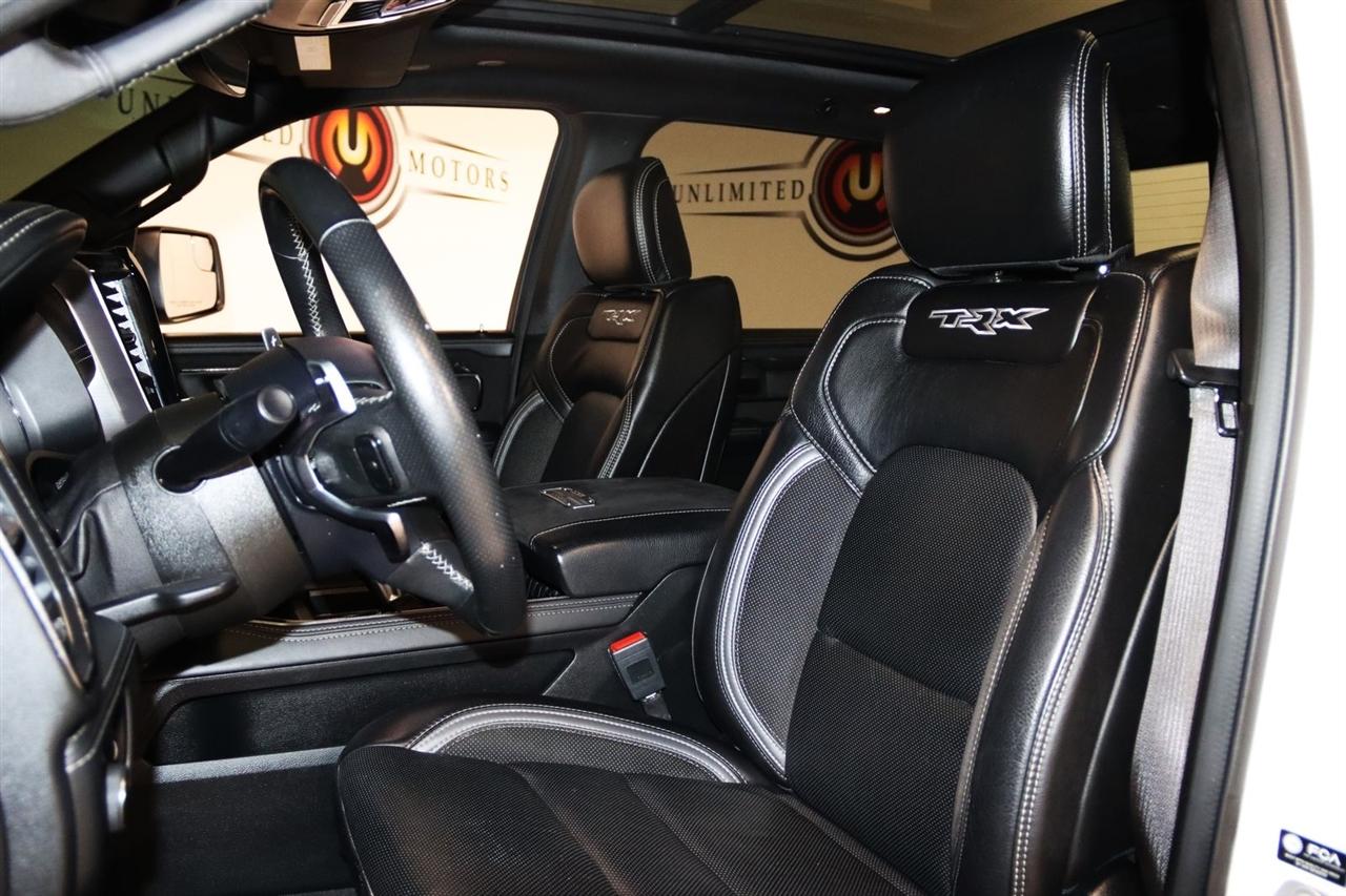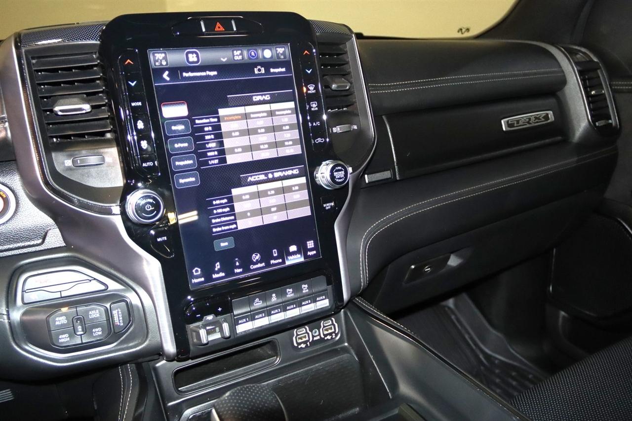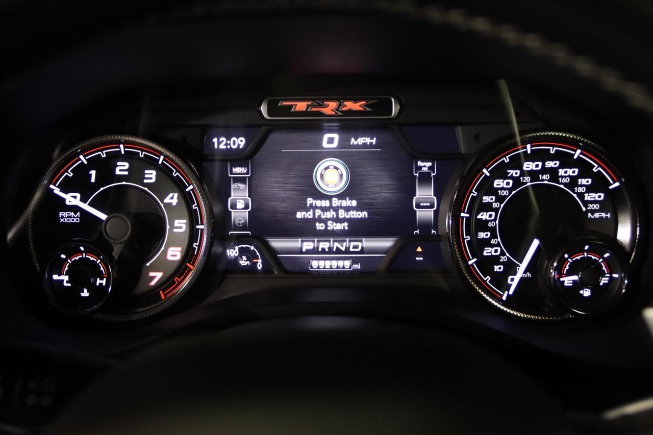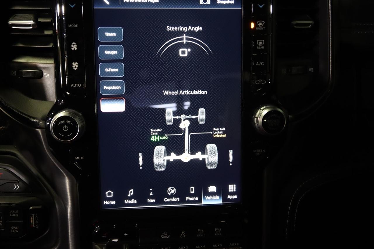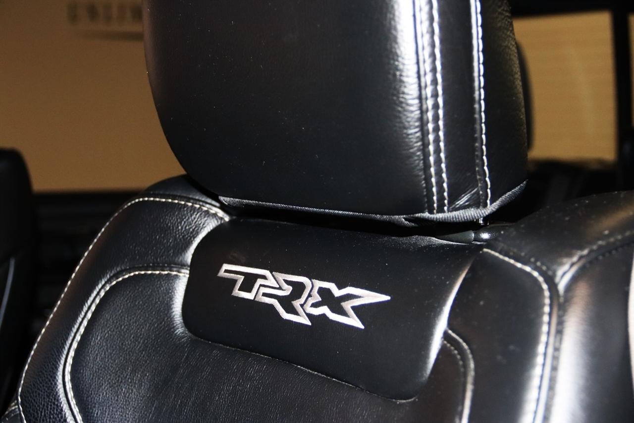 Navigation, Bluetooth, Back Up Camera, Panoramic Roof, Heated Seats, Touch Screen, #2 Seat Foam Cushion, 10 Speakers, 3.55 Rear Axle Ratio, 4 Way Front Headrests, 4-Wheel Disc Brakes, ABS brakes, Adaptive suspension, Air Conditioning, Alloy wheels, AM/FM radio: SiriusXM with 360L, Apple CarPlay/Android Auto, Auto High-beam Headlights, Auto-dimming door mirrors, Auto-dimming Rear-View mirror, Automatic temperature control, Black Exterior Mirrors, Body Color Door Handles, Brake assist, Bucket Seats, Center Console Parts Module, Cloth/Vinyl Bucket Seats, Compass, Delay-off headlights, Dome Dual LED Reading Lamp, Driver door bin, Driver/Passenger Wrapped Assist Handles, Dual front impact airbags, Dual front side impact airbags, Dual-Pane Panoramic Sunroof, Electronic Stability Control, Exterior Mirrors Courtesy Lamps, Exterior Mirrors w/Heating Element, Exterior Mirrors w/Supplemental Signals, Front anti-roll bar, Front Bucket Seats, Front Center Armrest w/Storage, Front Door Accent Lighting, Front dual zone A/C, Front fog lights, Front License Plate Bracket, Front reading lights, Front Seat Back Map Pockets, Front wheel independent suspension, Full Length Premium Upgraded Floor Console, Fully automatic headlights, Heated door mirrors, Heated Front Seats, Heated Steering Wheel, Illuminated entry, IP LED Ambient Light Pipe, Leather Shift Knob, Leather steering wheel, Leather Trimmed Bucket Seats, Low tire pressure warning, Luxury Front Door Trim Panel, MOPAR Bright Pedal Kit, Navigation System, Occupant sensing airbag, Outside temperature display, Overhead airbag, Overhead console, Panic alarm, ParkSense Front/Rear Park Assist w/Stop, ParkView Rear Back-Up Camera, Passenger door bin, Passenger vanity mirror, Pick-Up Box Lighting, Power 4-Way Driver Lumbar Adjust, Power 4-Way Passenger Lumbar Adjust, Power 8-Way Driver & Passenger Seats, Power Adjustable Pedals, Power door mirrors, Power driver seat, Power steering, Power windows, Power-Folding Mirrors, Premium Wrapped IP Bezel, Quick Order Package 29Y, Radio data system, Radio: Uconnect 5 Nav w/12.0" Display, Rain Sensitive Windshield Wipers, Rear 60/40 Folding Seat, Rear Door Accent Lighting, Rear seat center armrest, Rear step bumper, Rear Underseat Compartment Storage, Rear Window Defroster, Remote keyless entry, Security system, Speed control, Split folding rear seat, Sport steering wheel, Steering wheel mounted audio controls, Sun Visors w/Illuminated Vanity Mirrors, Tachometer, Telescoping steering wheel, Tilt steering wheel, Traction control, Trailer Brake Control, Trailer Light Check, Trailer Tow Group (B) (DISC), Trip computer, TRX Level 1 Equipment Group, Turn signal indicator mirrors, Universal Garage Door Opener, Variably intermittent wipers, Voltmeter, Wheels: 18" x 9" Black Paint/Polish Aluminum.
