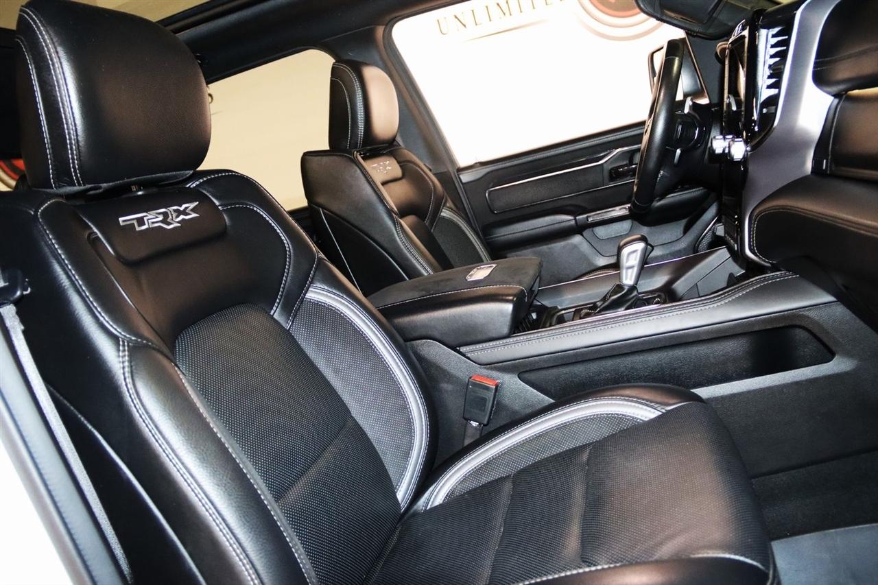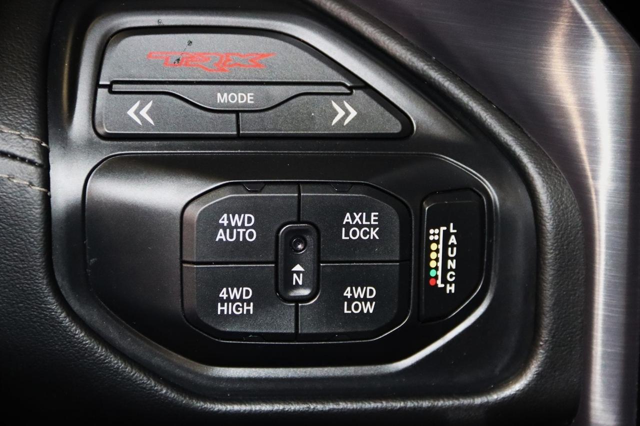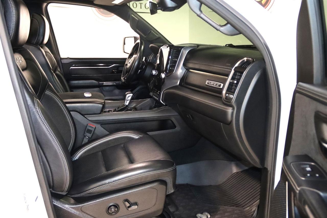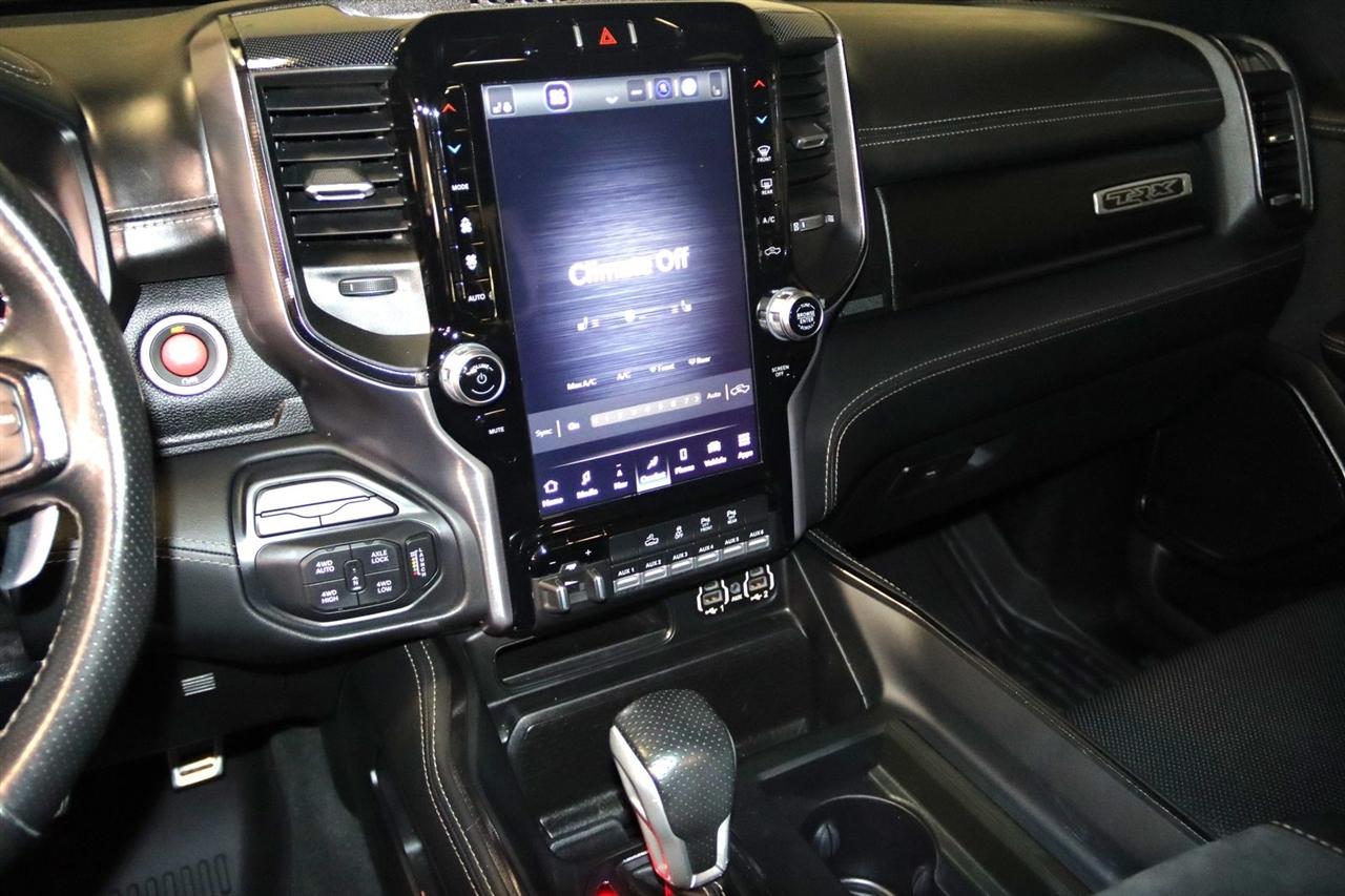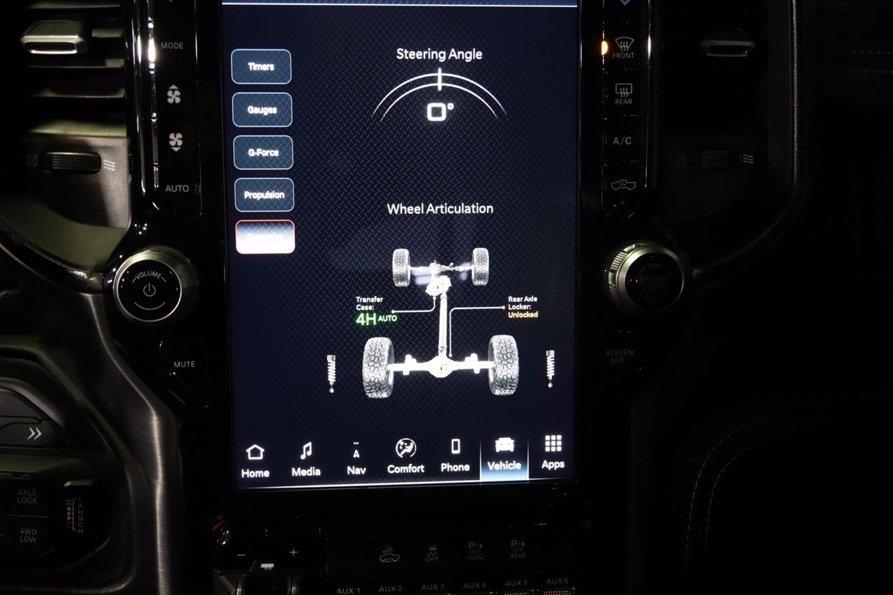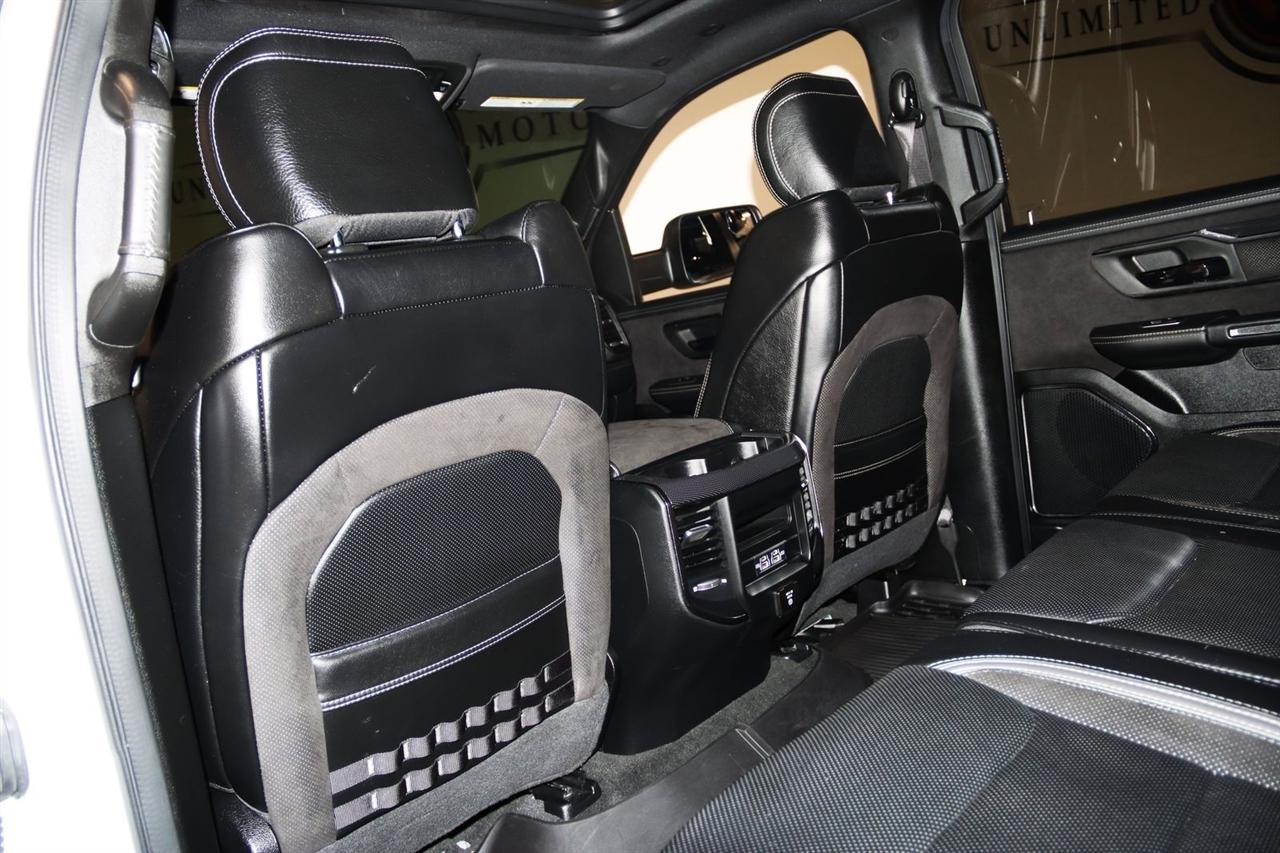 Navigation, Bluetooth, Back Up Camera, Panoramic Roof, Heated Seats, Touch Screen, #2 Seat Foam Cushion, 10 Speakers, 3.55 Rear Axle Ratio, 4 Way Front Headrests, 4-Wheel Disc Brakes, ABS brakes, Adaptive suspension, Air Conditioning, Alloy wheels, AM/FM radio: SiriusXM with 360L, Apple CarPlay/Android Auto, Auto High-beam Headlights, Auto-dimming door mirrors, Auto-dimming Rear-View mirror, Automatic temperature control, Black Exterior Mirrors, Body Color Door Handles, Brake assist, Bucket Seats, Center Console Parts Module, Cloth/Vinyl Bucket Seats, Compass, Delay-off headlights, Dome Dual LED Reading Lamp, Driver door bin, Driver/Passenger Wrapped Assist Handles, Dual front impact airbags, Dual front side impact airbags, Dual-Pane Panoramic Sunroof, Electronic Stability Control, Exterior Mirrors Courtesy Lamps, Exterior Mirrors w/Heating Element, Exterior Mirrors w/Supplemental Signals, Front anti-roll bar, Front Bucket Seats, Front Center Armrest w/Storage, Front Door Accent Lighting, Front dual zone A/C, Front fog lights, Front License Plate Bracket, Front reading lights, Front Seat Back Map Pockets, Front wheel independent suspension, Full Length Premium Upgraded Floor Console, Fully automatic headlights, Heated door mirrors, Heated Front Seats, Heated Steering Wheel, Illuminated entry, IP LED Ambient Light Pipe, Leather Shift Knob, Leather steering wheel, Leather Trimmed Bucket Seats, Low tire pressure warning, Luxury Front Door Trim Panel, MOPAR Bright Pedal Kit, Navigation System, Occupant sensing airbag, Outside temperature display, Overhead airbag, Overhead console, Panic alarm, ParkSense Front/Rear Park Assist w/Stop, ParkView Rear Back-Up Camera, Passenger door bin, Passenger vanity mirror, Pick-Up Box Lighting, Power 4-Way Driver Lumbar Adjust, Power 4-Way Passenger Lumbar Adjust, Power 8-Way Driver & Passenger Seats, Power Adjustable Pedals, Power door mirrors, Power driver seat, Power steering, Power windows, Power-Folding Mirrors, Premium Wrapped IP Bezel, Quick Order Package 29Y, Radio data system, Radio: Uconnect 5 Nav w/12.0" Display, Rain Sensitive Windshield Wipers, Rear 60/40 Folding Seat, Rear Door Accent Lighting, Rear seat center armrest, Rear step bumper, Rear Underseat Compartment Storage, Rear Window Defroster, Remote keyless entry, Security system, Speed control, Split folding rear seat, Sport steering wheel, Steering wheel mounted audio controls, Sun Visors w/Illuminated Vanity Mirrors, Tachometer, Telescoping steering wheel, Tilt steering wheel, Traction control, Trailer Brake Control, Trailer Light Check, Trailer Tow Group (B) (DISC), Trip computer, TRX Level 1 Equipment Group, Turn signal indicator mirrors, Universal Garage Door Opener, Variably intermittent wipers, Voltmeter, Wheels: 18" x 9" Black Paint/Polish Aluminum.