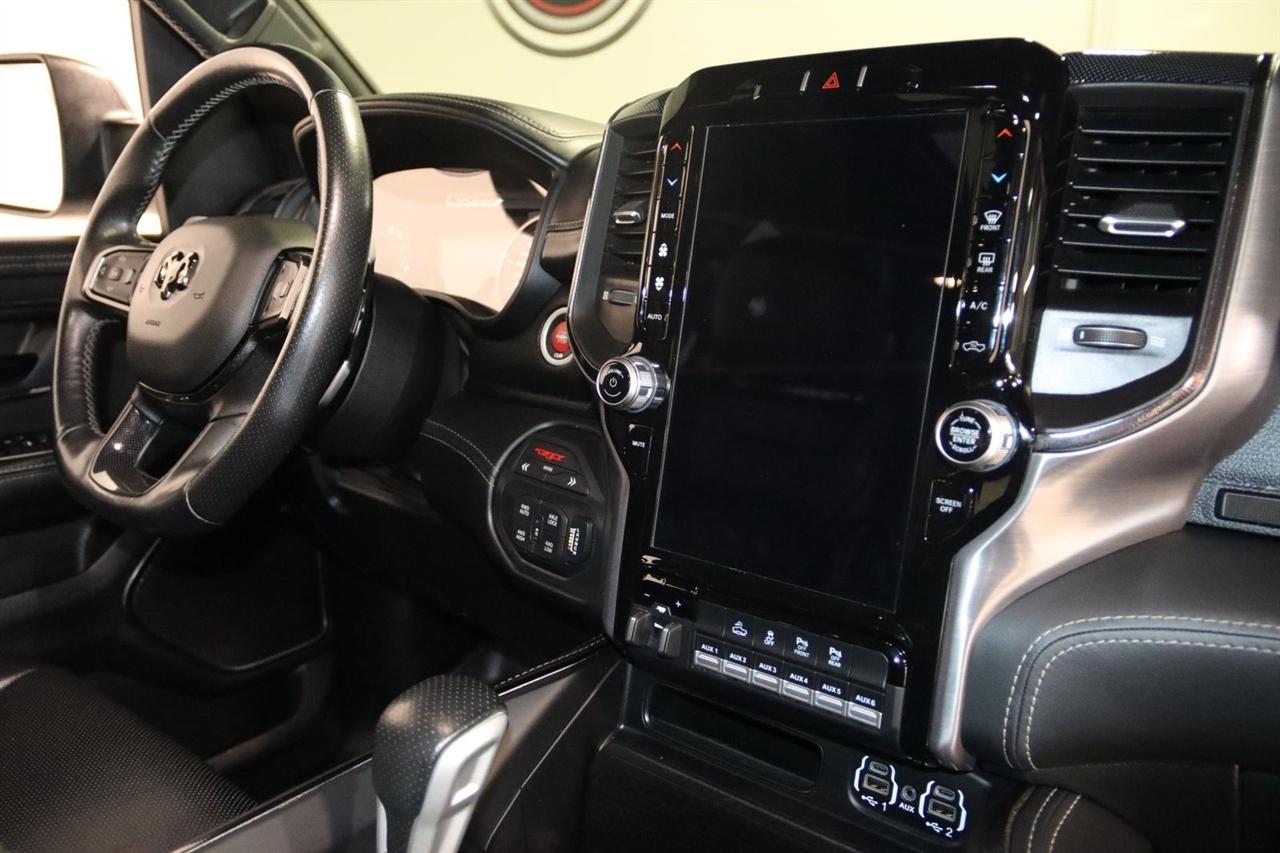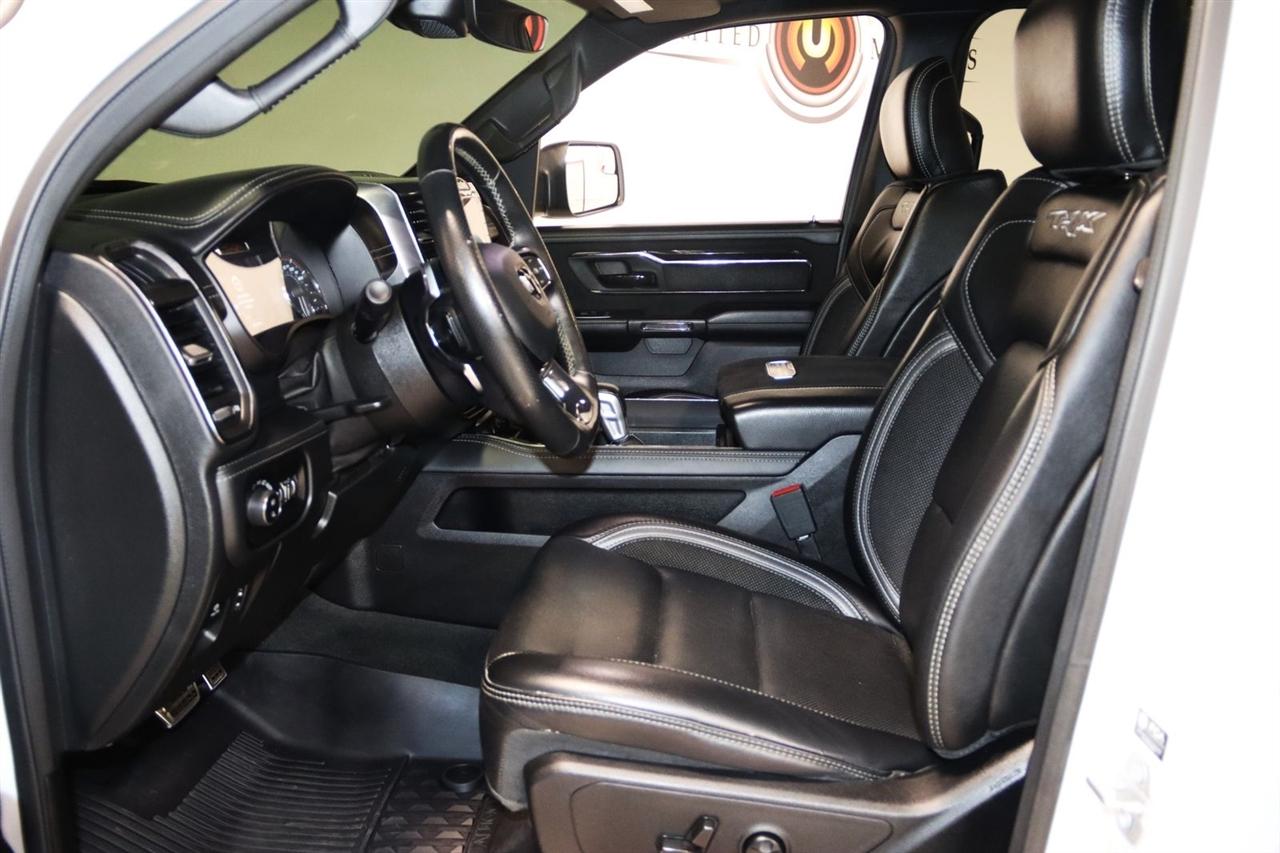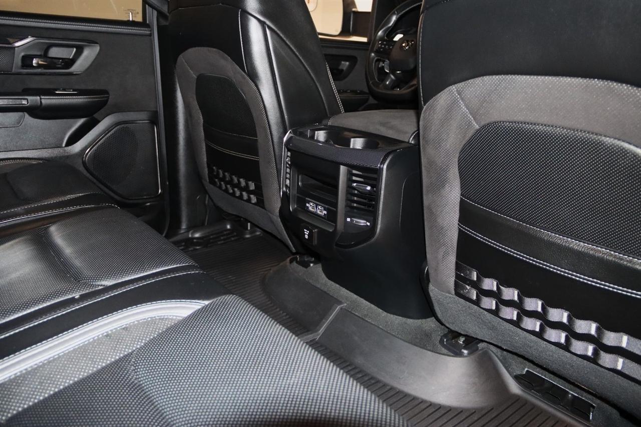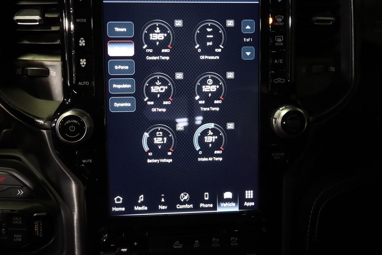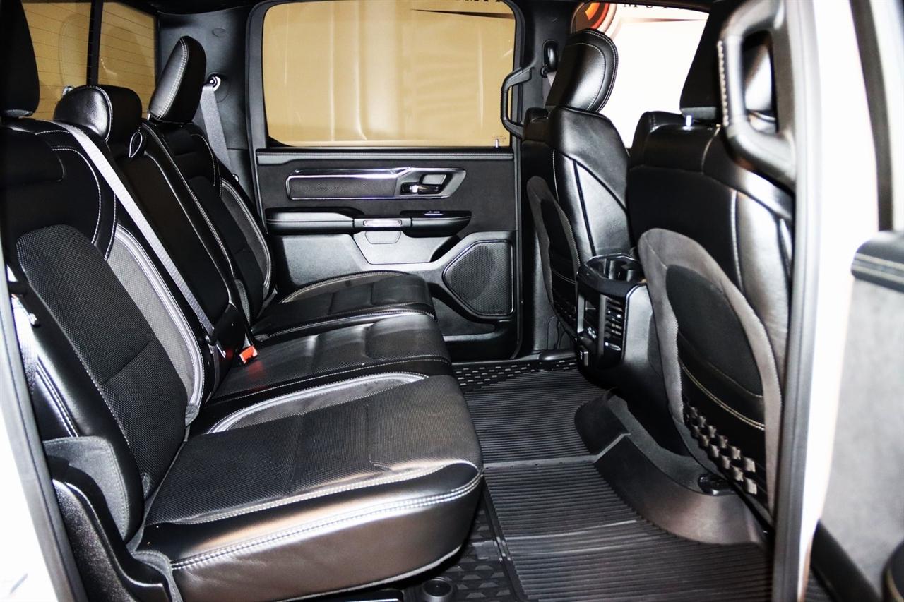 Navigation, Bluetooth, Back Up Camera, Panoramic Roof, Heated Seats, Touch Screen, #2 Seat Foam Cushion, 10 Speakers, 3.55 Rear Axle Ratio, 4 Way Front Headrests, 4-Wheel Disc Brakes, ABS brakes, Adaptive suspension, Air Conditioning, Alloy wheels, AM/FM radio: SiriusXM with 360L, Apple CarPlay/Android Auto, Auto High-beam Headlights, Auto-dimming door mirrors, Auto-dimming Rear-View mirror, Automatic temperature control, Black Exterior Mirrors, Body Color Door Handles, Brake assist, Bucket Seats, Center Console Parts Module, Cloth/Vinyl Bucket Seats, Compass, Delay-off headlights, Dome Dual LED Reading Lamp, Driver door bin, Driver/Passenger Wrapped Assist Handles, Dual front impact airbags, Dual front side impact airbags, Dual-Pane Panoramic Sunroof, Electronic Stability Control, Exterior Mirrors Courtesy Lamps, Exterior Mirrors w/Heating Element, Exterior Mirrors w/Supplemental Signals, Front anti-roll bar, Front Bucket Seats, Front Center Armrest w/Storage, Front Door Accent Lighting, Front dual zone A/C, Front fog lights, Front License Plate Bracket, Front reading lights, Front Seat Back Map Pockets, Front wheel independent suspension, Full Length Premium Upgraded Floor Console, Fully automatic headlights, Heated door mirrors, Heated Front Seats, Heated Steering Wheel, Illuminated entry, IP LED Ambient Light Pipe, Leather Shift Knob, Leather steering wheel, Leather Trimmed Bucket Seats, Low tire pressure warning, Luxury Front Door Trim Panel, MOPAR Bright Pedal Kit, Navigation System, Occupant sensing airbag, Outside temperature display, Overhead airbag, Overhead console, Panic alarm, ParkSense Front/Rear Park Assist w/Stop, ParkView Rear Back-Up Camera, Passenger door bin, Passenger vanity mirror, Pick-Up Box Lighting, Power 4-Way Driver Lumbar Adjust, Power 4-Way Passenger Lumbar Adjust, Power 8-Way Driver & Passenger Seats, Power Adjustable Pedals, Power door mirrors, Power driver seat, Power steering, Power windows, Power-Folding Mirrors, Premium Wrapped IP Bezel, Quick Order Package 29Y, Radio data system, Radio: Uconnect 5 Nav w/12.0" Display, Rain Sensitive Windshield Wipers, Rear 60/40 Folding Seat, Rear Door Accent Lighting, Rear seat center armrest, Rear step bumper, Rear Underseat Compartment Storage, Rear Window Defroster, Remote keyless entry, Security system, Speed control, Split folding rear seat, Sport steering wheel, Steering wheel mounted audio controls, Sun Visors w/Illuminated Vanity Mirrors, Tachometer, Telescoping steering wheel, Tilt steering wheel, Traction control, Trailer Brake Control, Trailer Light Check, Trailer Tow Group (B) (DISC), Trip computer, TRX Level 1 Equipment Group, Turn signal indicator mirrors, Universal Garage Door Opener, Variably intermittent wipers, Voltmeter, Wheels: 18" x 9" Black Paint/Polish Aluminum.