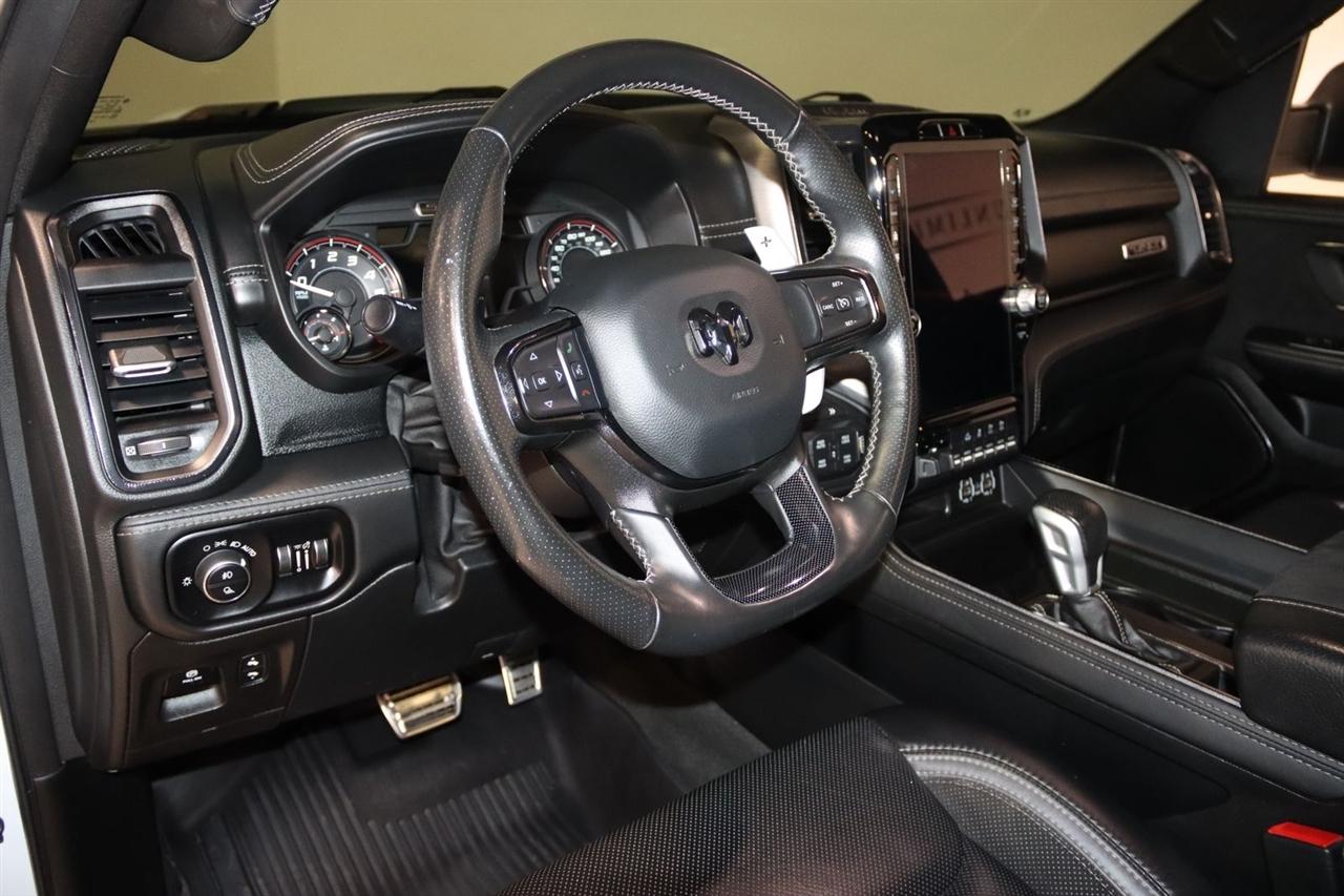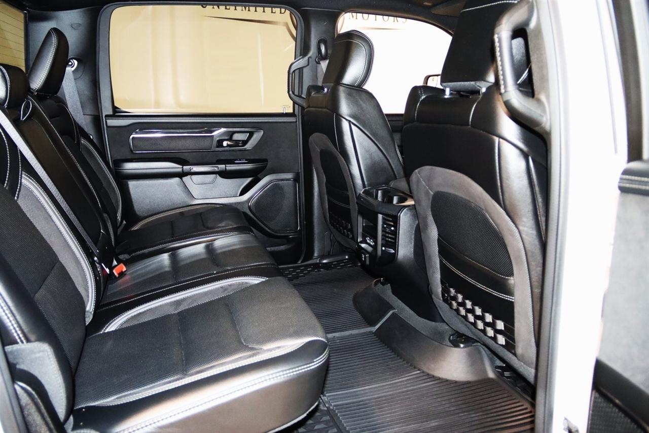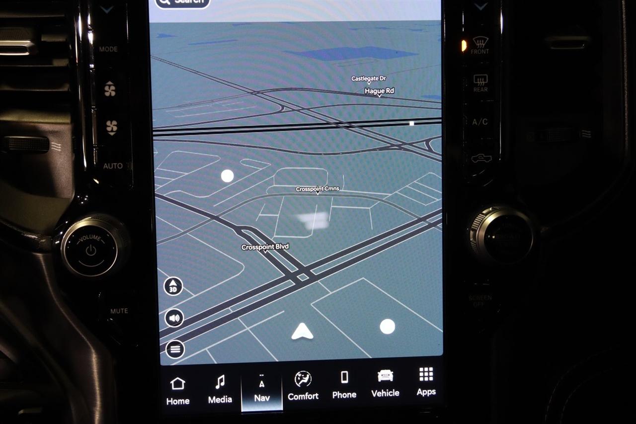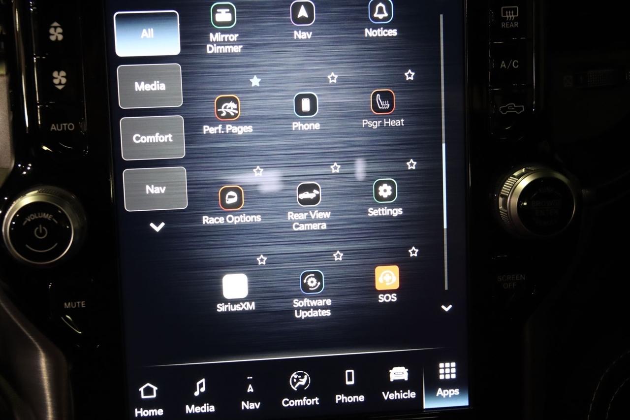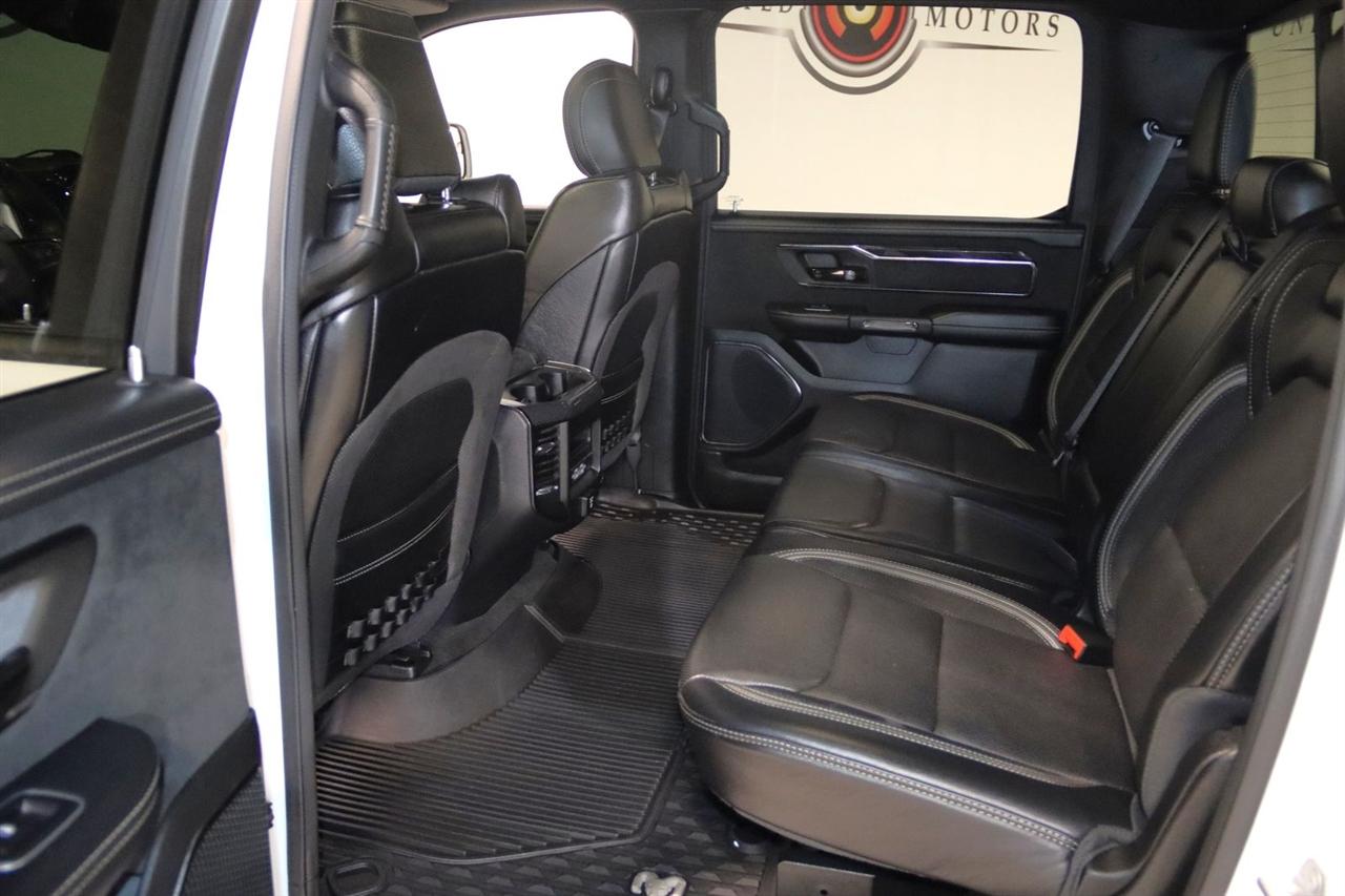 Navigation, Bluetooth, Back Up Camera, Panoramic Roof, Heated Seats, Touch Screen, #2 Seat Foam Cushion, 10 Speakers, 3.55 Rear Axle Ratio, 4 Way Front Headrests, 4-Wheel Disc Brakes, ABS brakes, Adaptive suspension, Air Conditioning, Alloy wheels, AM/FM radio: SiriusXM with 360L, Apple CarPlay/Android Auto, Auto High-beam Headlights, Auto-dimming door mirrors, Auto-dimming Rear-View mirror, Automatic temperature control, Black Exterior Mirrors, Body Color Door Handles, Brake assist, Bucket Seats, Center Console Parts Module, Cloth/Vinyl Bucket Seats, Compass, Delay-off headlights, Dome Dual LED Reading Lamp, Driver door bin, Driver/Passenger Wrapped Assist Handles, Dual front impact airbags, Dual front side impact airbags, Dual-Pane Panoramic Sunroof, Electronic Stability Control, Exterior Mirrors Courtesy Lamps, Exterior Mirrors w/Heating Element, Exterior Mirrors w/Supplemental Signals, Front anti-roll bar, Front Bucket Seats, Front Center Armrest w/Storage, Front Door Accent Lighting, Front dual zone A/C, Front fog lights, Front License Plate Bracket, Front reading lights, Front Seat Back Map Pockets, Front wheel independent suspension, Full Length Premium Upgraded Floor Console, Fully automatic headlights, Heated door mirrors, Heated Front Seats, Heated Steering Wheel, Illuminated entry, IP LED Ambient Light Pipe, Leather Shift Knob, Leather steering wheel, Leather Trimmed Bucket Seats, Low tire pressure warning, Luxury Front Door Trim Panel, MOPAR Bright Pedal Kit, Navigation System, Occupant sensing airbag, Outside temperature display, Overhead airbag, Overhead console, Panic alarm, ParkSense Front/Rear Park Assist w/Stop, ParkView Rear Back-Up Camera, Passenger door bin, Passenger vanity mirror, Pick-Up Box Lighting, Power 4-Way Driver Lumbar Adjust, Power 4-Way Passenger Lumbar Adjust, Power 8-Way Driver & Passenger Seats, Power Adjustable Pedals, Power door mirrors, Power driver seat, Power steering, Power windows, Power-Folding Mirrors, Premium Wrapped IP Bezel, Quick Order Package 29Y, Radio data system, Radio: Uconnect 5 Nav w/12.0" Display, Rain Sensitive Windshield Wipers, Rear 60/40 Folding Seat, Rear Door Accent Lighting, Rear seat center armrest, Rear step bumper, Rear Underseat Compartment Storage, Rear Window Defroster, Remote keyless entry, Security system, Speed control, Split folding rear seat, Sport steering wheel, Steering wheel mounted audio controls, Sun Visors w/Illuminated Vanity Mirrors, Tachometer, Telescoping steering wheel, Tilt steering wheel, Traction control, Trailer Brake Control, Trailer Light Check, Trailer Tow Group (B) (DISC), Trip computer, TRX Level 1 Equipment Group, Turn signal indicator mirrors, Universal Garage Door Opener, Variably intermittent wipers, Voltmeter, Wheels: 18" x 9" Black Paint/Polish Aluminum.