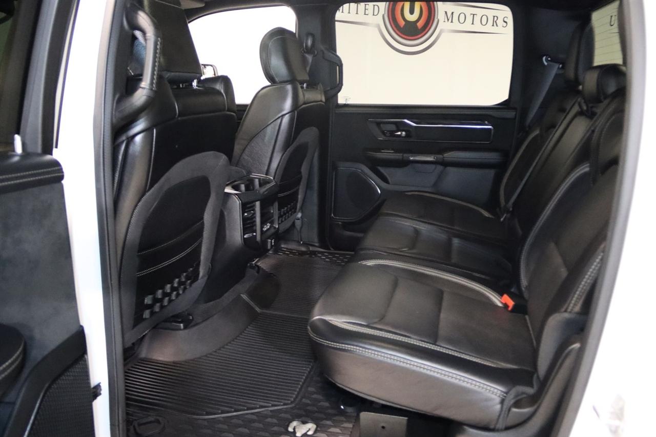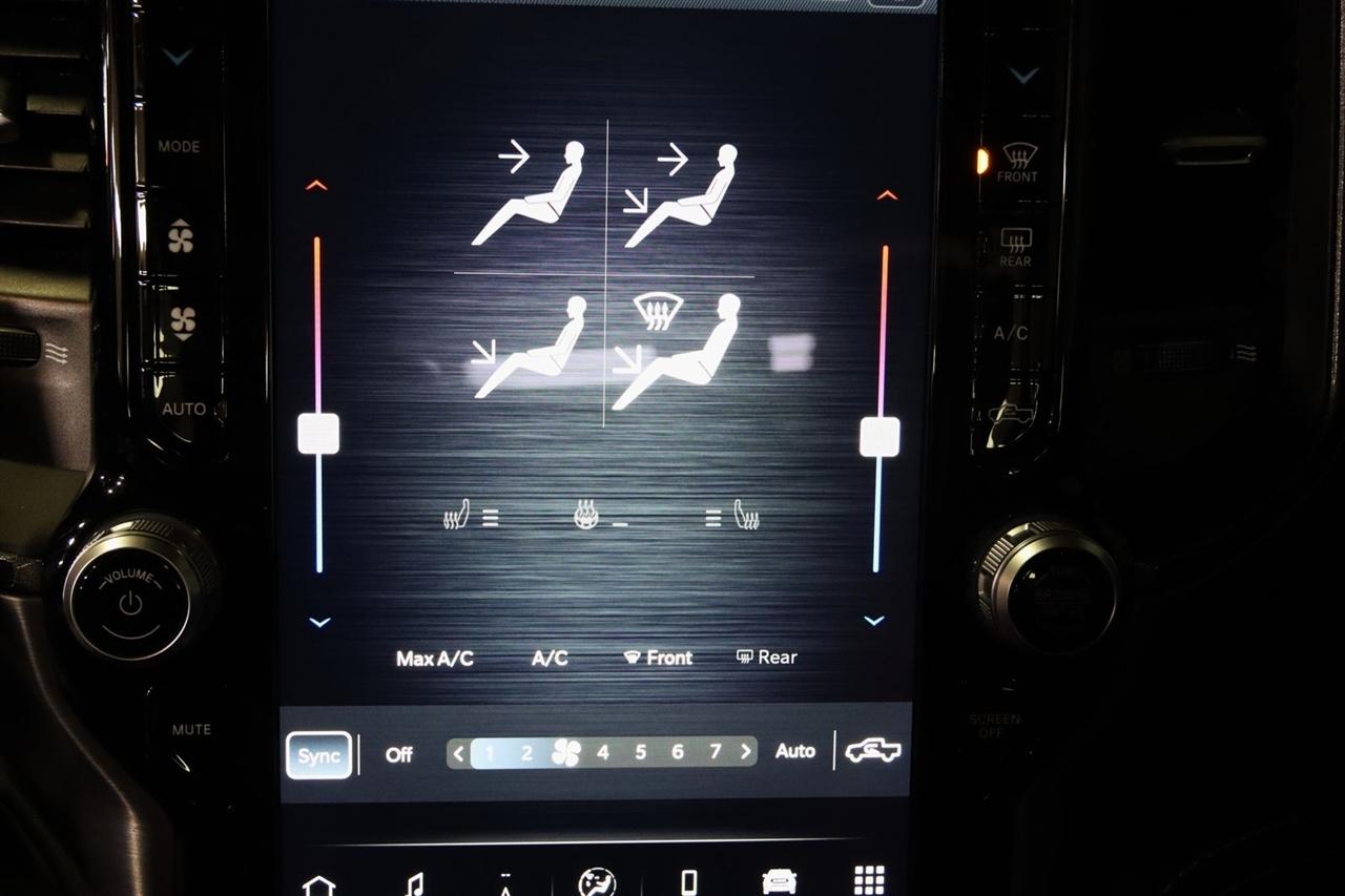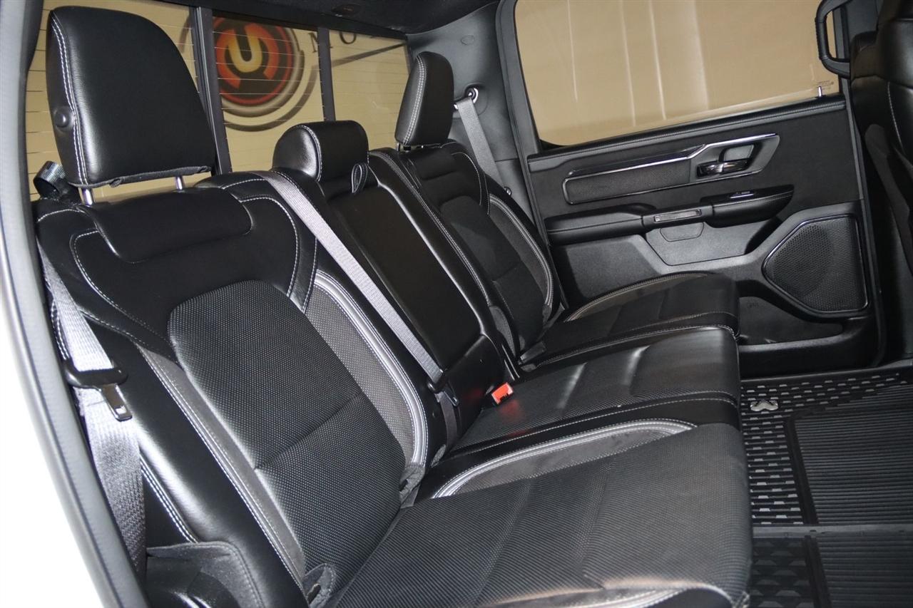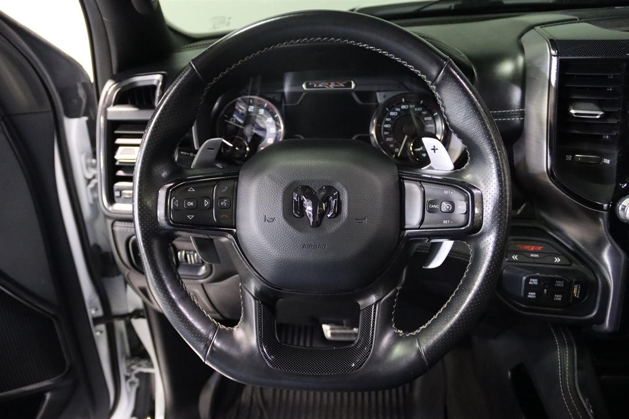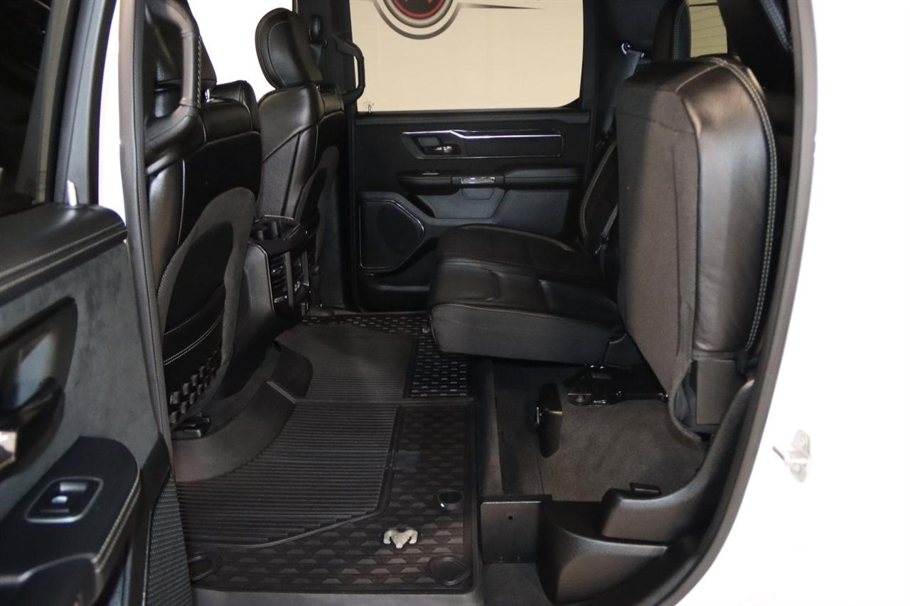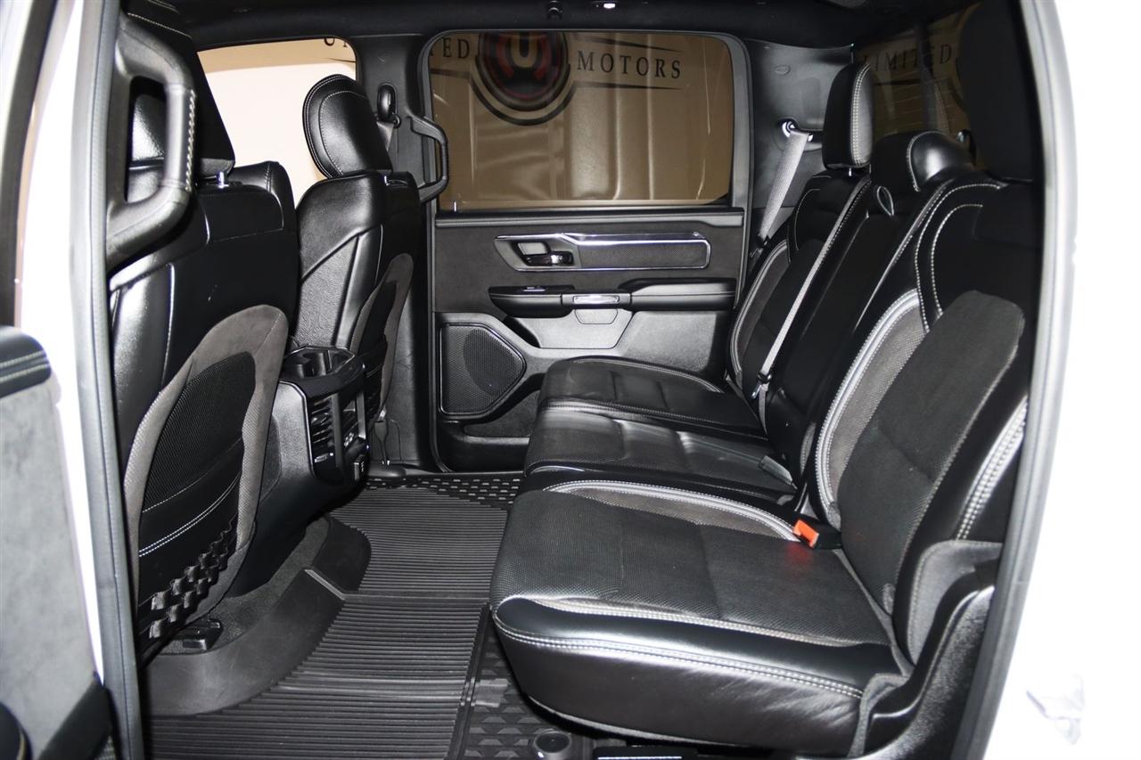 Navigation, Bluetooth, Back Up Camera, Panoramic Roof, Heated Seats, Touch Screen, #2 Seat Foam Cushion, 10 Speakers, 3.55 Rear Axle Ratio, 4 Way Front Headrests, 4-Wheel Disc Brakes, ABS brakes, Adaptive suspension, Air Conditioning, Alloy wheels, AM/FM radio: SiriusXM with 360L, Apple CarPlay/Android Auto, Auto High-beam Headlights, Auto-dimming door mirrors, Auto-dimming Rear-View mirror, Automatic temperature control, Black Exterior Mirrors, Body Color Door Handles, Brake assist, Bucket Seats, Center Console Parts Module, Cloth/Vinyl Bucket Seats, Compass, Delay-off headlights, Dome Dual LED Reading Lamp, Driver door bin, Driver/Passenger Wrapped Assist Handles, Dual front impact airbags, Dual front side impact airbags, Dual-Pane Panoramic Sunroof, Electronic Stability Control, Exterior Mirrors Courtesy Lamps, Exterior Mirrors w/Heating Element, Exterior Mirrors w/Supplemental Signals, Front anti-roll bar, Front Bucket Seats, Front Center Armrest w/Storage, Front Door Accent Lighting, Front dual zone A/C, Front fog lights, Front License Plate Bracket, Front reading lights, Front Seat Back Map Pockets, Front wheel independent suspension, Full Length Premium Upgraded Floor Console, Fully automatic headlights, Heated door mirrors, Heated Front Seats, Heated Steering Wheel, Illuminated entry, IP LED Ambient Light Pipe, Leather Shift Knob, Leather steering wheel, Leather Trimmed Bucket Seats, Low tire pressure warning, Luxury Front Door Trim Panel, MOPAR Bright Pedal Kit, Navigation System, Occupant sensing airbag, Outside temperature display, Overhead airbag, Overhead console, Panic alarm, ParkSense Front/Rear Park Assist w/Stop, ParkView Rear Back-Up Camera, Passenger door bin, Passenger vanity mirror, Pick-Up Box Lighting, Power 4-Way Driver Lumbar Adjust, Power 4-Way Passenger Lumbar Adjust, Power 8-Way Driver & Passenger Seats, Power Adjustable Pedals, Power door mirrors, Power driver seat, Power steering, Power windows, Power-Folding Mirrors, Premium Wrapped IP Bezel, Quick Order Package 29Y, Radio data system, Radio: Uconnect 5 Nav w/12.0" Display, Rain Sensitive Windshield Wipers, Rear 60/40 Folding Seat, Rear Door Accent Lighting, Rear seat center armrest, Rear step bumper, Rear Underseat Compartment Storage, Rear Window Defroster, Remote keyless entry, Security system, Speed control, Split folding rear seat, Sport steering wheel, Steering wheel mounted audio controls, Sun Visors w/Illuminated Vanity Mirrors, Tachometer, Telescoping steering wheel, Tilt steering wheel, Traction control, Trailer Brake Control, Trailer Light Check, Trailer Tow Group (B) (DISC), Trip computer, TRX Level 1 Equipment Group, Turn signal indicator mirrors, Universal Garage Door Opener, Variably intermittent wipers, Voltmeter, Wheels: 18" x 9" Black Paint/Polish Aluminum.