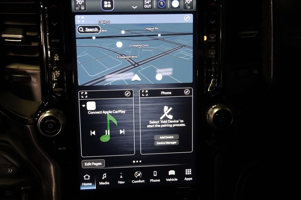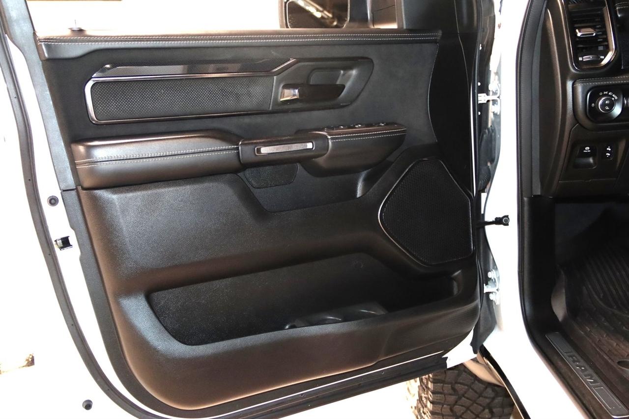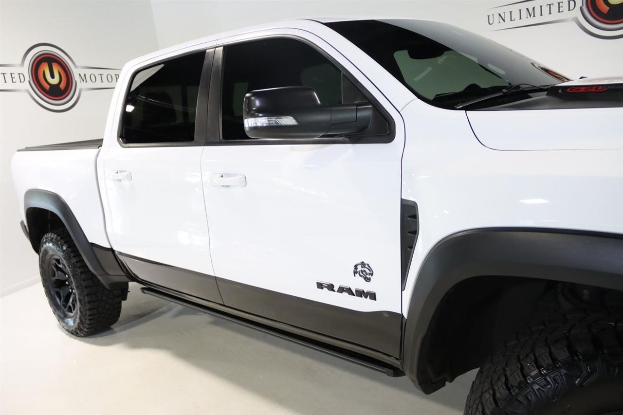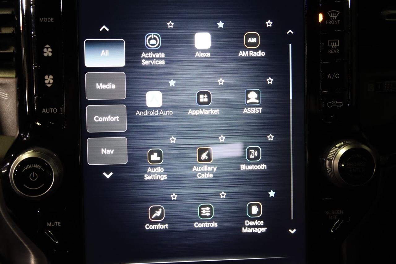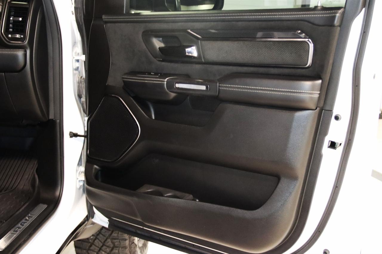 Navigation, Bluetooth, Back Up Camera, Panoramic Roof, Heated Seats, Touch Screen, #2 Seat Foam Cushion, 10 Speakers, 3.55 Rear Axle Ratio, 4 Way Front Headrests, 4-Wheel Disc Brakes, ABS brakes, Adaptive suspension, Air Conditioning, Alloy wheels, AM/FM radio: SiriusXM with 360L, Apple CarPlay/Android Auto, Auto High-beam Headlights, Auto-dimming door mirrors, Auto-dimming Rear-View mirror, Automatic temperature control, Black Exterior Mirrors, Body Color Door Handles, Brake assist, Bucket Seats, Center Console Parts Module, Cloth/Vinyl Bucket Seats, Compass, Delay-off headlights, Dome Dual LED Reading Lamp, Driver door bin, Driver/Passenger Wrapped Assist Handles, Dual front impact airbags, Dual front side impact airbags, Dual-Pane Panoramic Sunroof, Electronic Stability Control, Exterior Mirrors Courtesy Lamps, Exterior Mirrors w/Heating Element, Exterior Mirrors w/Supplemental Signals, Front anti-roll bar, Front Bucket Seats, Front Center Armrest w/Storage, Front Door Accent Lighting, Front dual zone A/C, Front fog lights, Front License Plate Bracket, Front reading lights, Front Seat Back Map Pockets, Front wheel independent suspension, Full Length Premium Upgraded Floor Console, Fully automatic headlights, Heated door mirrors, Heated Front Seats, Heated Steering Wheel, Illuminated entry, IP LED Ambient Light Pipe, Leather Shift Knob, Leather steering wheel, Leather Trimmed Bucket Seats, Low tire pressure warning, Luxury Front Door Trim Panel, MOPAR Bright Pedal Kit, Navigation System, Occupant sensing airbag, Outside temperature display, Overhead airbag, Overhead console, Panic alarm, ParkSense Front/Rear Park Assist w/Stop, ParkView Rear Back-Up Camera, Passenger door bin, Passenger vanity mirror, Pick-Up Box Lighting, Power 4-Way Driver Lumbar Adjust, Power 4-Way Passenger Lumbar Adjust, Power 8-Way Driver & Passenger Seats, Power Adjustable Pedals, Power door mirrors, Power driver seat, Power steering, Power windows, Power-Folding Mirrors, Premium Wrapped IP Bezel, Quick Order Package 29Y, Radio data system, Radio: Uconnect 5 Nav w/12.0" Display, Rain Sensitive Windshield Wipers, Rear 60/40 Folding Seat, Rear Door Accent Lighting, Rear seat center armrest, Rear step bumper, Rear Underseat Compartment Storage, Rear Window Defroster, Remote keyless entry, Security system, Speed control, Split folding rear seat, Sport steering wheel, Steering wheel mounted audio controls, Sun Visors w/Illuminated Vanity Mirrors, Tachometer, Telescoping steering wheel, Tilt steering wheel, Traction control, Trailer Brake Control, Trailer Light Check, Trailer Tow Group (B) (DISC), Trip computer, TRX Level 1 Equipment Group, Turn signal indicator mirrors, Universal Garage Door Opener, Variably intermittent wipers, Voltmeter, Wheels: 18" x 9" Black Paint/Polish Aluminum.