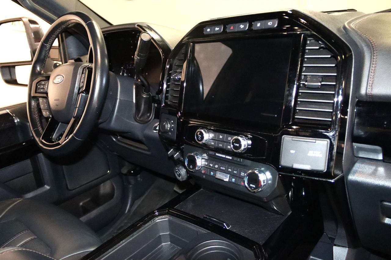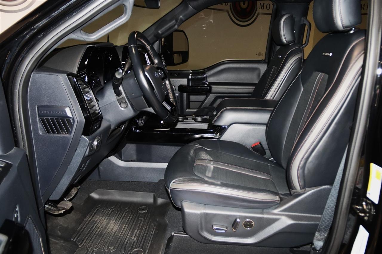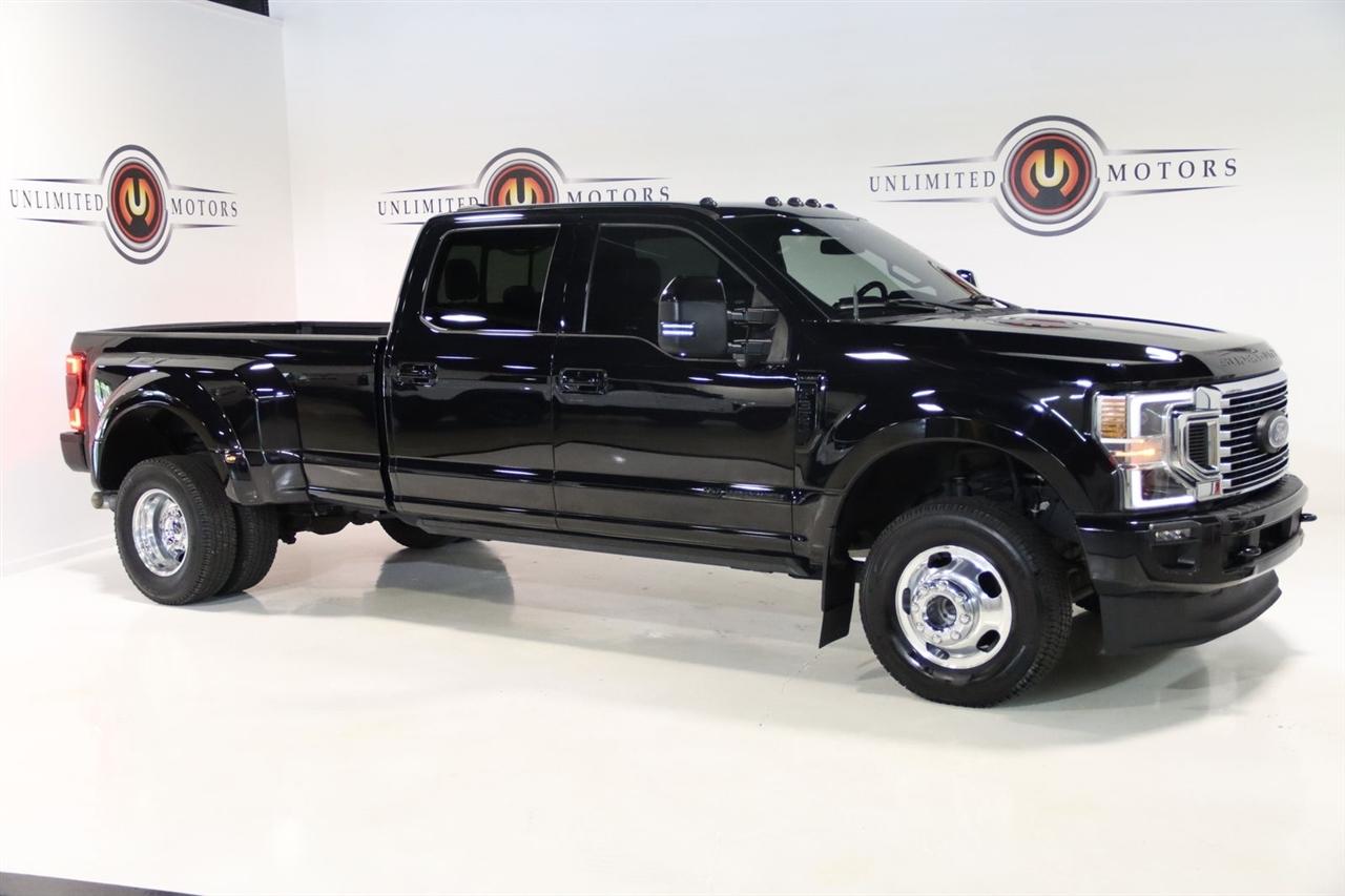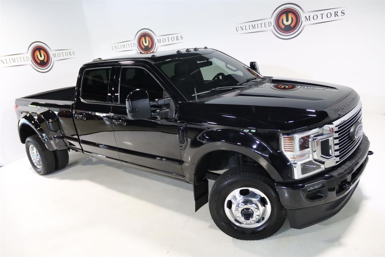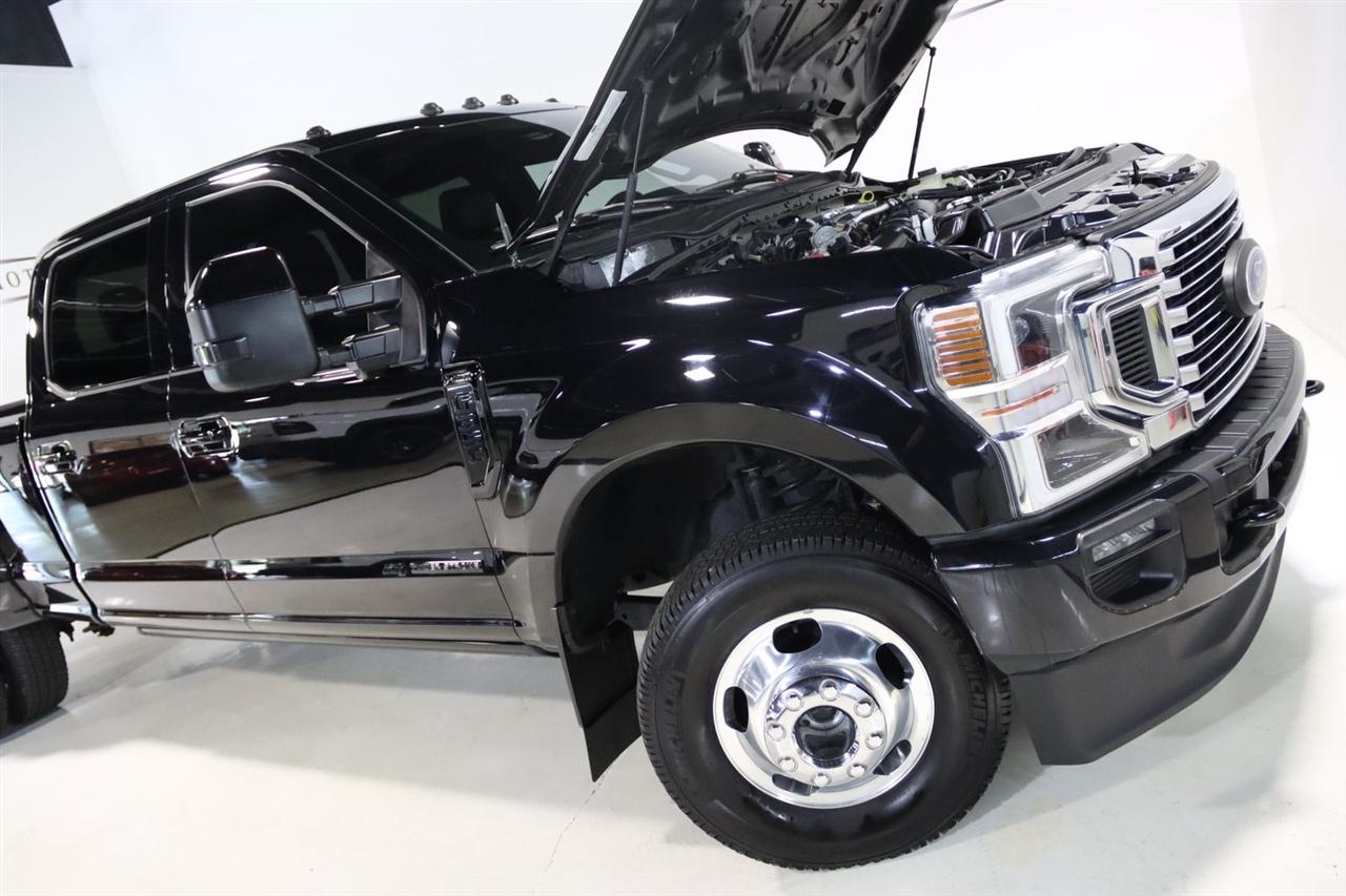 Navigation, Bluetooth, Back Up Camera, Panoramic Roof, Towing, Touch Screen, 10 Speakers, 17" Forged Polished Aluminum Wheels, 397 Amp Alternator, 4-Wheel Disc Brakes, 5th Wheel/Gooseneck Hitch Prep Package, ABS brakes, Adjustable pedals, Advanced Security Pack Inclination Sensor Removal, Air Conditioning, Alloy wheels, AM/FM radio: SiriusXM with 360L, Auto High-beam Headlights, Auto tilt-away steering wheel, Auto-dimming Rear-View mirror, Automatic temperature control, Bed Step, Brake assist, Bumpers: body-color, Compass, Delay-off headlights, Driver door bin, Driver vanity mirror, Dual front impact airbags, Dual front side impact airbags, Dual rear wheels, Electronic Stability Control, Emergency communication system: SYNC 4 911 Assist, Engine Block Heater, Exterior Parking Camera Rear, Flow-Through Console, Front anti-roll bar, Front Bucket Seats, Front Center Armrest, Front dual zone A/C, Front fog lights, Front reading lights, Fully automatic headlights, FX4 Off-Road Package, Garage door transmitter, Gooseneck Hitch Kit (Pre-Installed), GVWR: 14,000 lb Payload Package, Heated door mirrors, Heated front seats, Heated rear seats, Heated steering wheel, Heavy-Service Front Suspension Package, Hill Descent Control, Illuminated entry, Leather steering wheel, Limited Slip w/3.55 Axle Ratio, Low tire pressure warning, Memory seat, Navigation system: Connected Navigation, Off-Road Specifically Tuned Shock Absorbers, Order Code 723A, Outside temperature display, Overhead airbag, Overhead console, Panic alarm, Passenger door bin, Passenger vanity mirror, Pedal memory, Power door mirrors, Power driver seat, Power passenger seat, Power steering, Power windows, Radio data system, Radio: B&O Sound System by Bang & Olufsen, Rain sensing wipers, Rapid-Heat Supplemental Cab Heater, Rear anti-roll bar, Rear Parking Sensors, Rear reading lights, Rear seat center armrest, Rear step bumper, Rear window defroster, Remote keyless entry, Security system, SiriusXM Radio w/360L, Speed control, Speed-sensing steering, Split folding rear seat, Steering wheel memory, Steering wheel mounted A/C controls, Steering wheel mounted audio controls, Stowable Loading Ramps (Pre-Installed), SYNC 4 w/Enhanced Voice Recognition, Tachometer, Telescoping steering wheel, Tilt steering wheel, Traction control, Trip computer, Turn signal indicator mirrors, Twin Panel Power Moonroof, Unique FX4 Off-Road Box Decal, Unique Platinum Leather 40/Console/40 Seats, Upfitter Switches (6), Variably intermittent wipers, Ventilated front seats. CARFAX One-Owner.