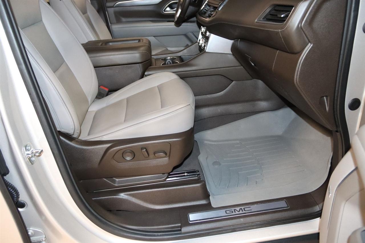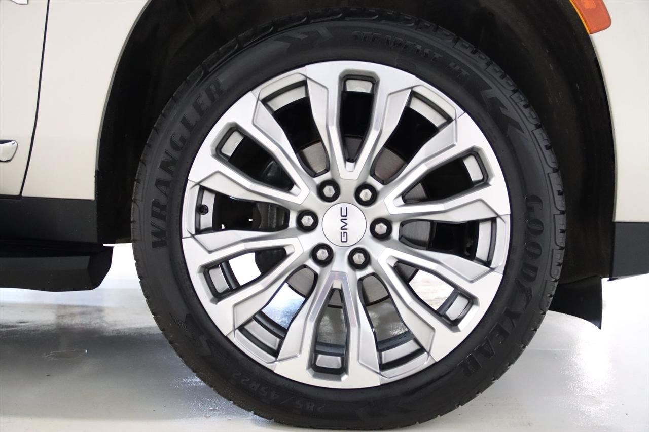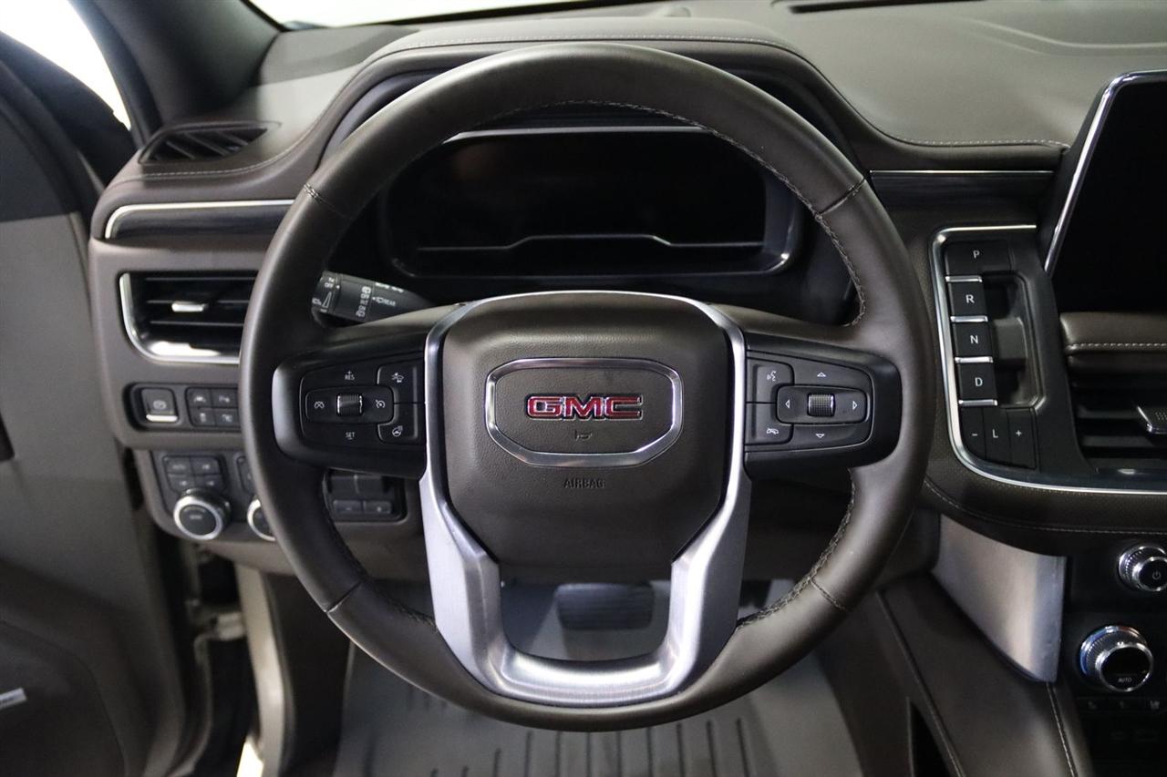 Navigation, Bluetooth, Back Up Camera, Entertainment, Panoramic Roof, 3rd Row, Heated Seats, Touch Screen, 1.5 kW Heater/Defrost Air System, 2 Presets For Outside Rearview Mirrors, 2 Presets For Power Driver Seat, 250 Amps Alternator, 3.23 Rear Axle Ratio, 3rd Row 60/40 Power-Folding Split-Bench Seat, 3rd row seats: split-bench, 4-Wheel Disc Brakes, 850 Cold-Cranking Amps Battery, 9 Speakers, ABS brakes, Adaptive Cruise Control, Air Conditioning, Alloy wheels, AM/FM radio: SiriusXM with 360L, AM/FM Stereo, Apple CarPlay/Android Auto, Auto High-beam Headlights, Auto-dimming Rear-View mirror, Automatic Emergency Braking, Automatic temperature control, Bodyside moldings, Bose 9-Speaker Stereo Audio System Feature, Brake assist, Bright Chrome Bodyside Moldings, Bright Front & Rear Door Sill Plates, Bumpers: body-color, Chrome Door Handles w/Body-Color Strip, Compass, Delay-off headlights, Diesel B20 Fuel, Driver door bin, Driver vanity mirror, Dual front impact airbags, Dual front side impact airbags, Electronic Stability Control, Emergency communication system: OnStar and GMC connected services capable, Engine Block Heater, Enhanced Automatic Emergency Braking, Floor Console, Following Distance Indicator, Forward Collision Alert, Four wheel independent suspension, Front & Rear Park Assist, Front anti-roll bar, Front Bucket Seats, Front Center Armrest, Front dual zone A/C, Front fog lights, Front Pedestrian Braking, Front reading lights, Fully automatic headlights, Garage door transmitter, Hands-Free Power Programmable Rear Liftgate, HD Surround Vision, Heated & Ventilated Driver & Front Passenger Seats, Heated 2nd Row Outboard Position Seats, Heated door mirrors, Heated Driver & Front Passenger Seats, Heated front seats, Heated Steering Wheel, Hitch Guidance w/Hitch View, Illuminated entry, Inside Rear-View Auto-Dimming Mirror, Integrated Trailer Brake Controller, IntelliBeam Automatic High Beam On/Off, Lane Change Alert w/Side Blind Zone Alert, Lane Keep Assist w/Lane Departure Warning, License Plate Front Mounting Package, Low tire pressure warning, Max Trailering Package, Memory seat, Navigation System, Occupant sensing airbag, Outside Heated Power-Adjustable Mirrors, Outside temperature display, Overhead airbag, Overhead console, Panic alarm, Passenger door bin, Passenger vanity mirror, Perforated Leather-Appointed Seating, Power door mirrors, Power driver seat, Power Liftgate, Power passenger seat, Power Release 2nd Row Bucket Seats, Power steering, Power Tilt & Telescopic Steering Column, Power windows, Preferred Equipment Group 4SA, Premium Smooth Ride Suspension, Rain sensing wipers, Rear air conditioning, Rear anti-roll bar, Rear Cross Traffic Alert, Rear Pedestrian Alert, Rear reading lights, Rear seat center armrest, Rear Seat Media System, Rear window defroster, Rear window wiper, Remote keyless entry, Roof rack: rails only, Safety Alert Seat, Security system, SiriusXM w/360L, SLT Luxury Package, SLT Premium Package, Smart Trailer Integration Indicator, Speed control, Speed-sensing steering, Split folding rear seat, Spoiler, Steering wheel mounted audio controls, Tachometer, Telescoping steering wheel, Tilt steering wheel, Traction control, Trailer Side Blind Zone Alert, Trailer Tire Pressure Monitor Sensors, Trip computer, Universal Home Remote, Upper & Lower Active Aero Shutters, Variably intermittent wipers, Ventilated front seats, Voltmeter, Wheels: 20" x 9" 6-Spoke Polished Aluminum, Wireless Charging. CARFAX One-Owner. Clean CARFAX. 20/26 City/Highway MPG