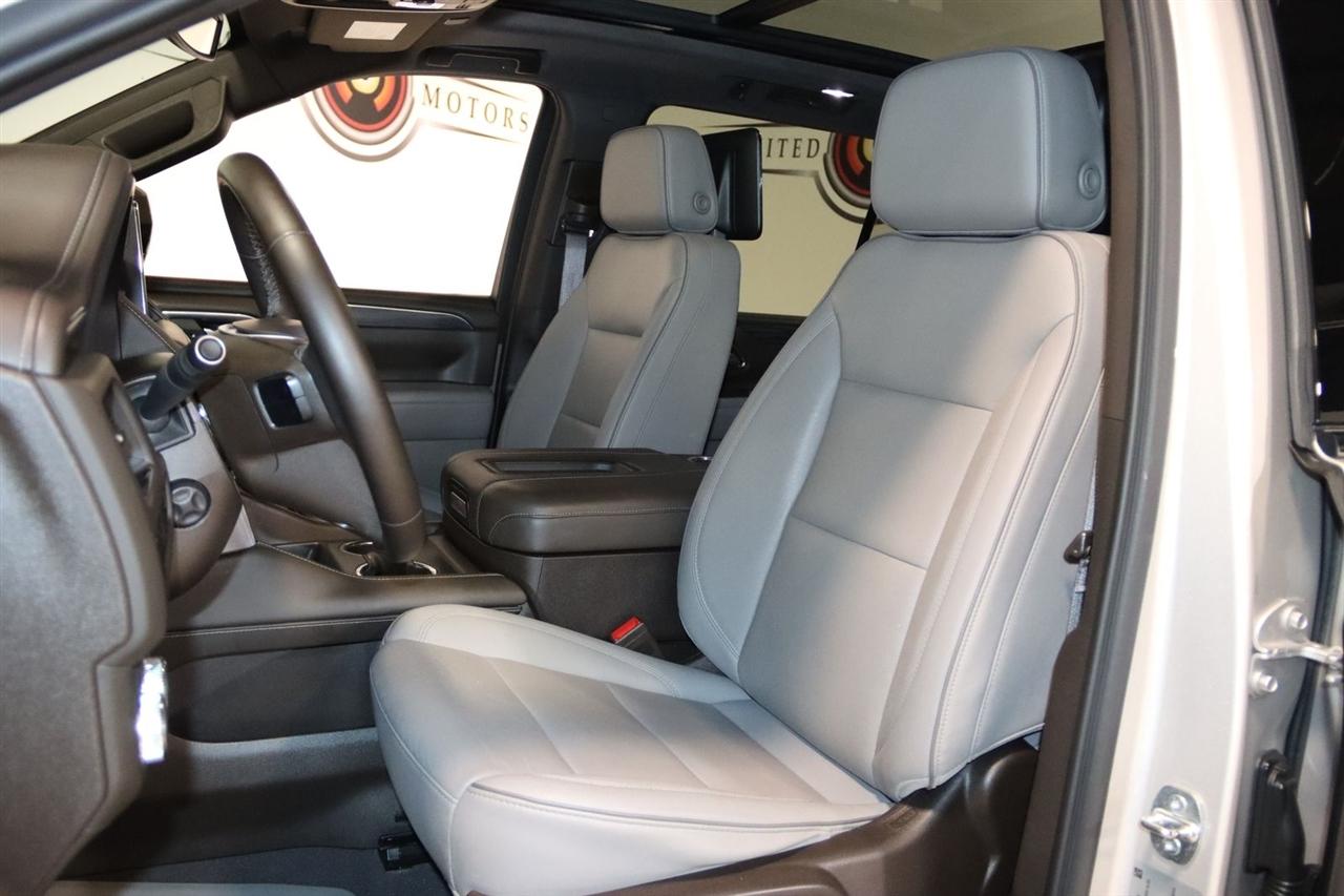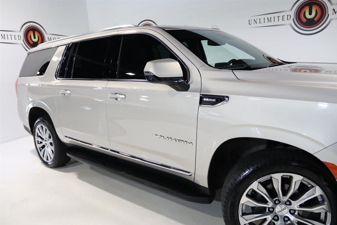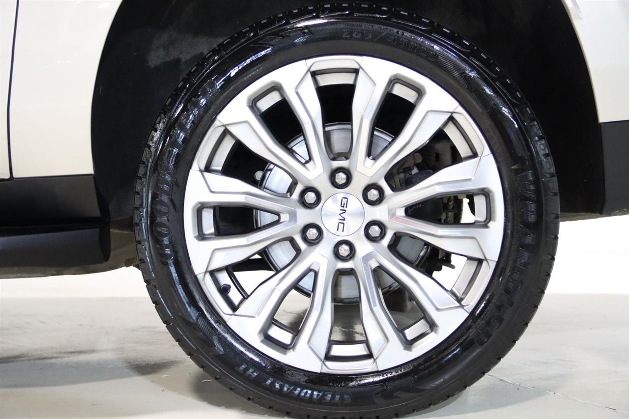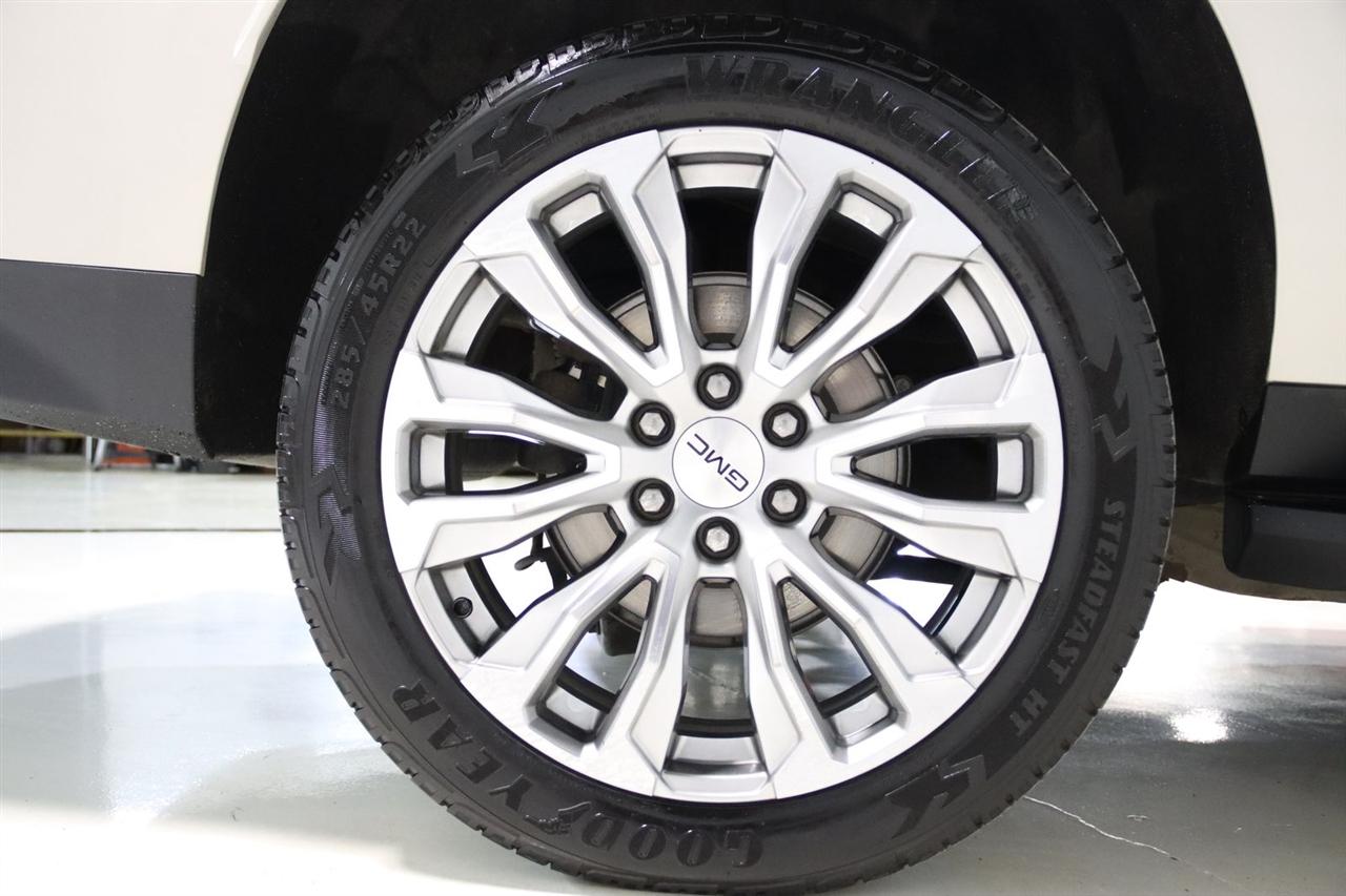 Navigation, Bluetooth, Back Up Camera, Entertainment, Panoramic Roof, 3rd Row, Heated Seats, Touch Screen, 1.5 kW Heater/Defrost Air System, 2 Presets For Outside Rearview Mirrors, 2 Presets For Power Driver Seat, 250 Amps Alternator, 3.23 Rear Axle Ratio, 3rd Row 60/40 Power-Folding Split-Bench Seat, 3rd row seats: split-bench, 4-Wheel Disc Brakes, 850 Cold-Cranking Amps Battery, 9 Speakers, ABS brakes, Adaptive Cruise Control, Air Conditioning, Alloy wheels, AM/FM radio: SiriusXM with 360L, AM/FM Stereo, Apple CarPlay/Android Auto, Auto High-beam Headlights, Auto-dimming Rear-View mirror, Automatic Emergency Braking, Automatic temperature control, Bodyside moldings, Bose 9-Speaker Stereo Audio System Feature, Brake assist, Bright Chrome Bodyside Moldings, Bright Front & Rear Door Sill Plates, Bumpers: body-color, Chrome Door Handles w/Body-Color Strip, Compass, Delay-off headlights, Diesel B20 Fuel, Driver door bin, Driver vanity mirror, Dual front impact airbags, Dual front side impact airbags, Electronic Stability Control, Emergency communication system: OnStar and GMC connected services capable, Engine Block Heater, Enhanced Automatic Emergency Braking, Floor Console, Following Distance Indicator, Forward Collision Alert, Four wheel independent suspension, Front & Rear Park Assist, Front anti-roll bar, Front Bucket Seats, Front Center Armrest, Front dual zone A/C, Front fog lights, Front Pedestrian Braking, Front reading lights, Fully automatic headlights, Garage door transmitter, Hands-Free Power Programmable Rear Liftgate, HD Surround Vision, Heated & Ventilated Driver & Front Passenger Seats, Heated 2nd Row Outboard Position Seats, Heated door mirrors, Heated Driver & Front Passenger Seats, Heated front seats, Heated Steering Wheel, Hitch Guidance w/Hitch View, Illuminated entry, Inside Rear-View Auto-Dimming Mirror, Integrated Trailer Brake Controller, IntelliBeam Automatic High Beam On/Off, Lane Change Alert w/Side Blind Zone Alert, Lane Keep Assist w/Lane Departure Warning, License Plate Front Mounting Package, Low tire pressure warning, Max Trailering Package, Memory seat, Navigation System, Occupant sensing airbag, Outside Heated Power-Adjustable Mirrors, Outside temperature display, Overhead airbag, Overhead console, Panic alarm, Passenger door bin, Passenger vanity mirror, Perforated Leather-Appointed Seating, Power door mirrors, Power driver seat, Power Liftgate, Power passenger seat, Power Release 2nd Row Bucket Seats, Power steering, Power Tilt & Telescopic Steering Column, Power windows, Preferred Equipment Group 4SA, Premium Smooth Ride Suspension, Rain sensing wipers, Rear air conditioning, Rear anti-roll bar, Rear Cross Traffic Alert, Rear Pedestrian Alert, Rear reading lights, Rear seat center armrest, Rear Seat Media System, Rear window defroster, Rear window wiper, Remote keyless entry, Roof rack: rails only, Safety Alert Seat, Security system, SiriusXM w/360L, SLT Luxury Package, SLT Premium Package, Smart Trailer Integration Indicator, Speed control, Speed-sensing steering, Split folding rear seat, Spoiler, Steering wheel mounted audio controls, Tachometer, Telescoping steering wheel, Tilt steering wheel, Traction control, Trailer Side Blind Zone Alert, Trailer Tire Pressure Monitor Sensors, Trip computer, Universal Home Remote, Upper & Lower Active Aero Shutters, Variably intermittent wipers, Ventilated front seats, Voltmeter, Wheels: 20" x 9" 6-Spoke Polished Aluminum, Wireless Charging. CARFAX One-Owner. Clean CARFAX. 20/26 City/Highway MPG