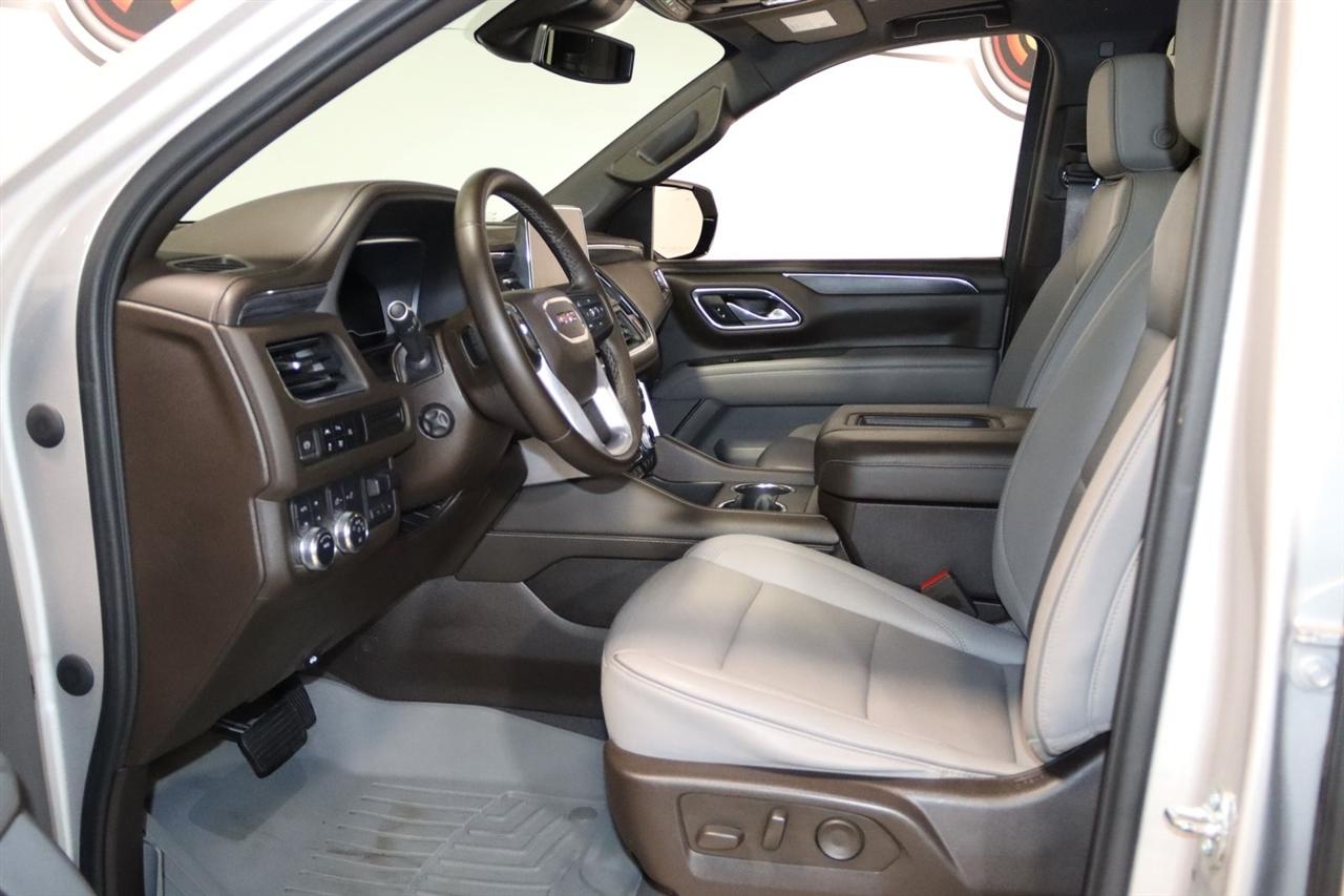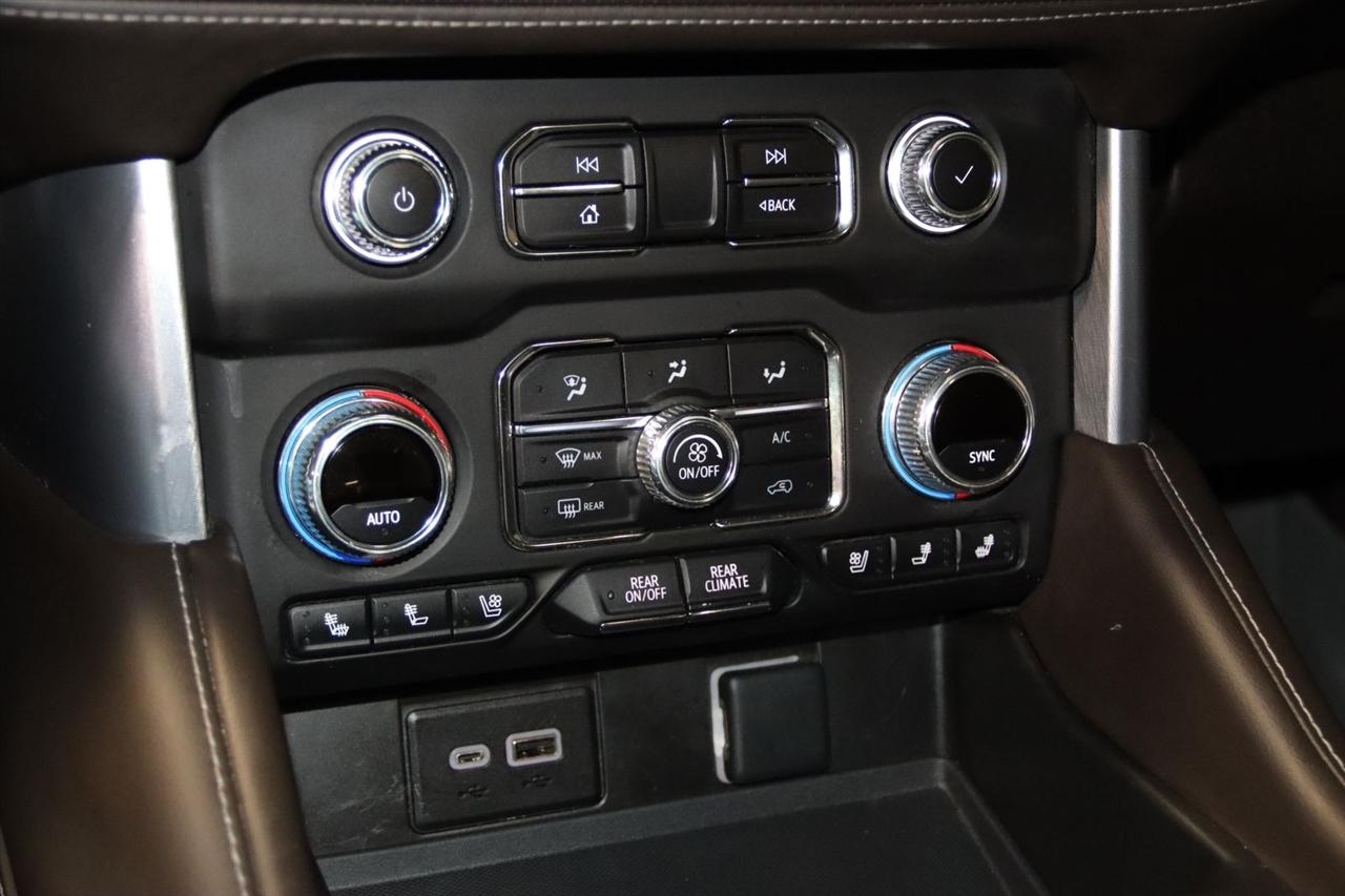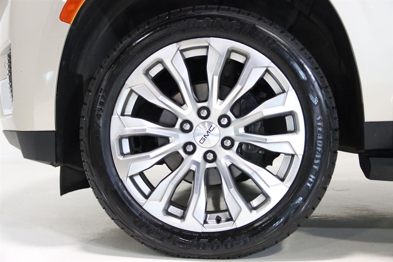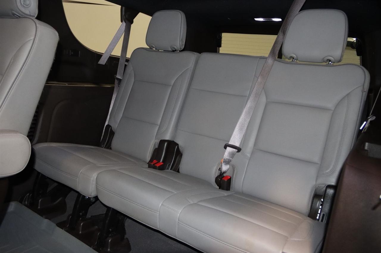 Navigation, Bluetooth, Back Up Camera, Entertainment, Panoramic Roof, 3rd Row, Heated Seats, Touch Screen, 1.5 kW Heater/Defrost Air System, 2 Presets For Outside Rearview Mirrors, 2 Presets For Power Driver Seat, 250 Amps Alternator, 3.23 Rear Axle Ratio, 3rd Row 60/40 Power-Folding Split-Bench Seat, 3rd row seats: split-bench, 4-Wheel Disc Brakes, 850 Cold-Cranking Amps Battery, 9 Speakers, ABS brakes, Adaptive Cruise Control, Air Conditioning, Alloy wheels, AM/FM radio: SiriusXM with 360L, AM/FM Stereo, Apple CarPlay/Android Auto, Auto High-beam Headlights, Auto-dimming Rear-View mirror, Automatic Emergency Braking, Automatic temperature control, Bodyside moldings, Bose 9-Speaker Stereo Audio System Feature, Brake assist, Bright Chrome Bodyside Moldings, Bright Front & Rear Door Sill Plates, Bumpers: body-color, Chrome Door Handles w/Body-Color Strip, Compass, Delay-off headlights, Diesel B20 Fuel, Driver door bin, Driver vanity mirror, Dual front impact airbags, Dual front side impact airbags, Electronic Stability Control, Emergency communication system: OnStar and GMC connected services capable, Engine Block Heater, Enhanced Automatic Emergency Braking, Floor Console, Following Distance Indicator, Forward Collision Alert, Four wheel independent suspension, Front & Rear Park Assist, Front anti-roll bar, Front Bucket Seats, Front Center Armrest, Front dual zone A/C, Front fog lights, Front Pedestrian Braking, Front reading lights, Fully automatic headlights, Garage door transmitter, Hands-Free Power Programmable Rear Liftgate, HD Surround Vision, Heated & Ventilated Driver & Front Passenger Seats, Heated 2nd Row Outboard Position Seats, Heated door mirrors, Heated Driver & Front Passenger Seats, Heated front seats, Heated Steering Wheel, Hitch Guidance w/Hitch View, Illuminated entry, Inside Rear-View Auto-Dimming Mirror, Integrated Trailer Brake Controller, IntelliBeam Automatic High Beam On/Off, Lane Change Alert w/Side Blind Zone Alert, Lane Keep Assist w/Lane Departure Warning, License Plate Front Mounting Package, Low tire pressure warning, Max Trailering Package, Memory seat, Navigation System, Occupant sensing airbag, Outside Heated Power-Adjustable Mirrors, Outside temperature display, Overhead airbag, Overhead console, Panic alarm, Passenger door bin, Passenger vanity mirror, Perforated Leather-Appointed Seating, Power door mirrors, Power driver seat, Power Liftgate, Power passenger seat, Power Release 2nd Row Bucket Seats, Power steering, Power Tilt & Telescopic Steering Column, Power windows, Preferred Equipment Group 4SA, Premium Smooth Ride Suspension, Rain sensing wipers, Rear air conditioning, Rear anti-roll bar, Rear Cross Traffic Alert, Rear Pedestrian Alert, Rear reading lights, Rear seat center armrest, Rear Seat Media System, Rear window defroster, Rear window wiper, Remote keyless entry, Roof rack: rails only, Safety Alert Seat, Security system, SiriusXM w/360L, SLT Luxury Package, SLT Premium Package, Smart Trailer Integration Indicator, Speed control, Speed-sensing steering, Split folding rear seat, Spoiler, Steering wheel mounted audio controls, Tachometer, Telescoping steering wheel, Tilt steering wheel, Traction control, Trailer Side Blind Zone Alert, Trailer Tire Pressure Monitor Sensors, Trip computer, Universal Home Remote, Upper & Lower Active Aero Shutters, Variably intermittent wipers, Ventilated front seats, Voltmeter, Wheels: 20" x 9" 6-Spoke Polished Aluminum, Wireless Charging. CARFAX One-Owner. Clean CARFAX. 20/26 City/Highway MPG