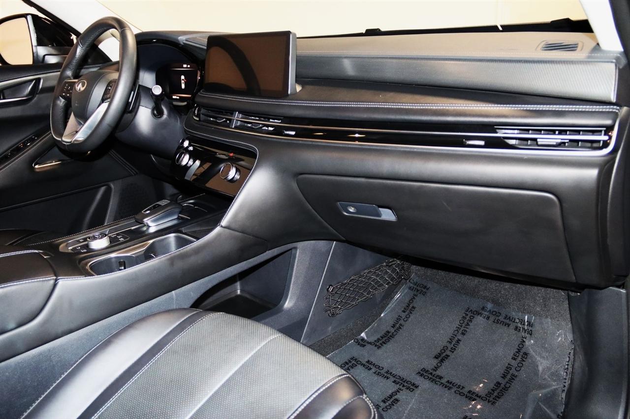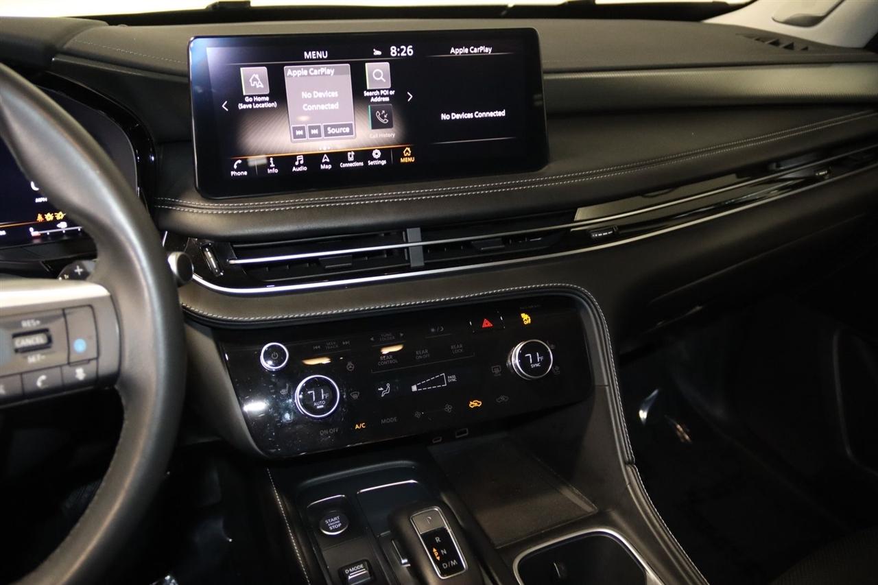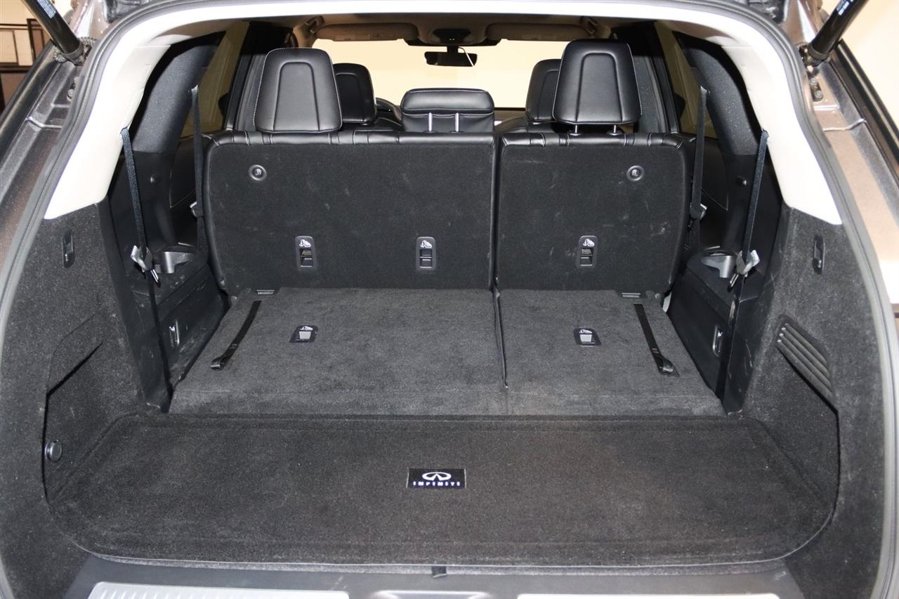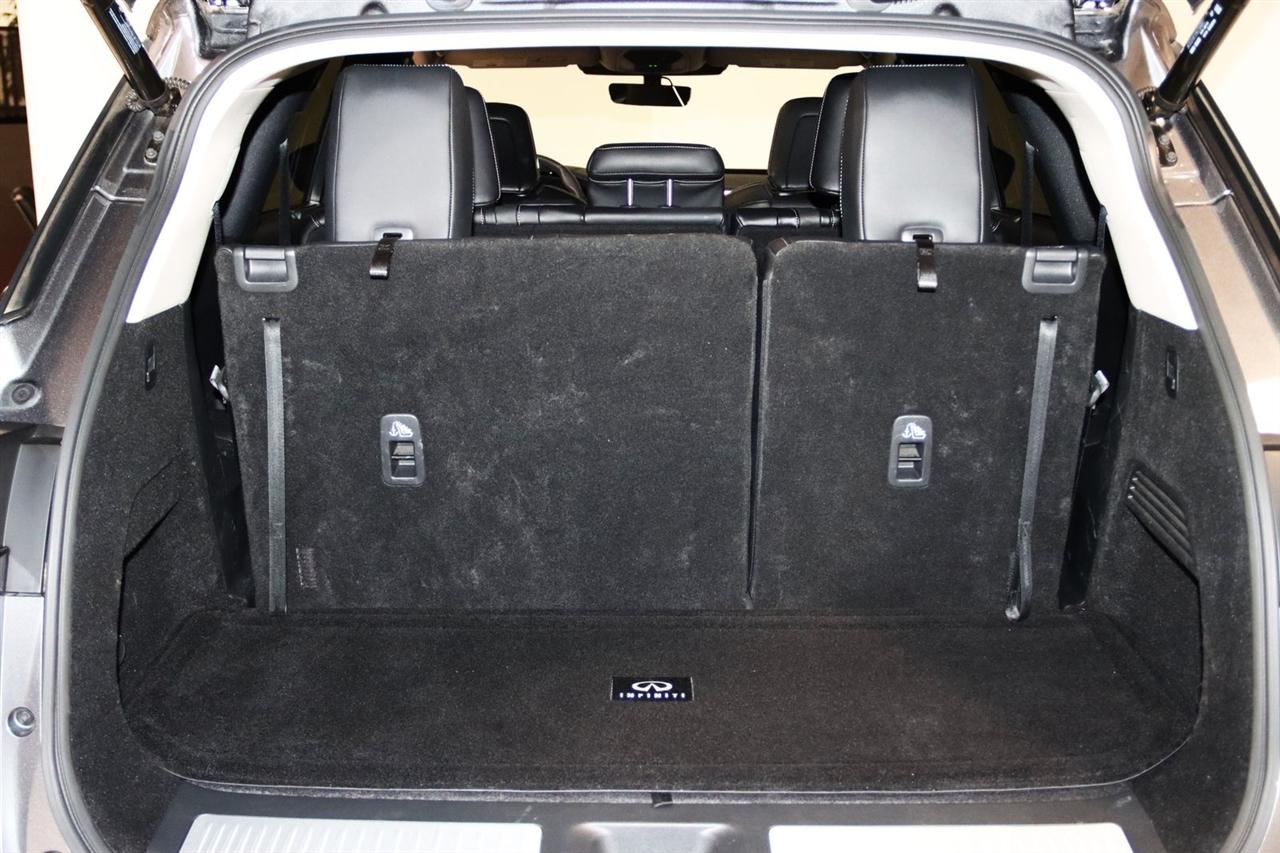 Navigation, Bluetooth, Back Up Camera, Panoramic Roof, Towing, Heated Seats, Touch Screen, 3rd row seats: bench, 4-Wheel Disc Brakes, 4.334 Axle Ratio, 9 Speakers, ABS brakes, Air Conditioning, Alloy wheels, AM/FM radio: SiriusXM, Anti-whiplash front head restraints, Auto High-beam Headlights, Auto-dimming door mirrors, Auto-dimming Rear-View mirror, Automatic temperature control, Bose Performance Series 17-Speaker Sound System, Brake assist, Bumpers: body-color, Cargo Mat (Reversible), Cargo Package, Climate-Controlled Front Bucket Seats, Delay-off headlights, Driver door bin, Driver vanity mirror, Dual front impact airbags, Dual front side impact airbags, Electronic Stability Control, Emergency communication system, First Aid Kit, Floor Mats on Bench Seats w/3rd Row Tray, Four wheel independent suspension, Front anti-roll bar, Front Bucket Seats, Front Center Armrest, Front dual zone A/C, Front reading lights, Fully automatic headlights, Garage door transmitter: HomeLink, Heated door mirrors, Heated front seats, Heated steering wheel, Illuminated entry, Knee airbag, Leather Shift Knob, Leather steering wheel, Leather-Appointed Seating Surfaces, Literature Kit, Low tire pressure warning, Memory seat, Navigation System, Navigation system: INFINITI InTouch Navigation, Occupant sensing airbag, Outside temperature display, Overhead airbag, Overhead console, Panic alarm, Passenger door bin, Passenger vanity mirror, Performance Audio Package, Power door mirrors, Power driver seat, Power Liftgate, Power moonroof, Power passenger seat, Power steering, Power windows, Radio data system, Radio: AM/FM Audio System, Rain sensing wipers, Rear air conditioning, Rear anti-roll bar, Rear reading lights, Rear seat center armrest, Rear side impact airbag, Rear window defroster, Rear window wiper, Reclining 3rd row seat, Remote keyless entry, Security system, Speed control, Speed-sensing steering, Speed-Sensitive Wipers, Splash Guards, Split folding rear seat, Spoiler, Steering wheel memory, Steering wheel mounted audio controls, Tachometer, Telescoping steering wheel, Tilt steering wheel, Traction control, Trip computer, Turn signal indicator mirrors, Variably intermittent wipers, Ventilated front seats, Wheels: 20" x 8J Sporty Machined Aluminum Alloy. CARFAX One-Owner. Clean CARFAX.