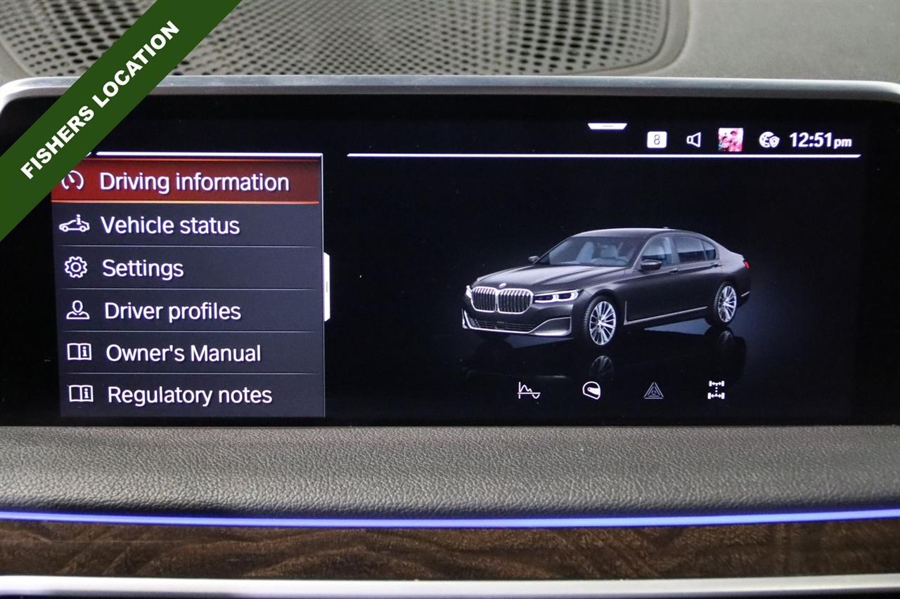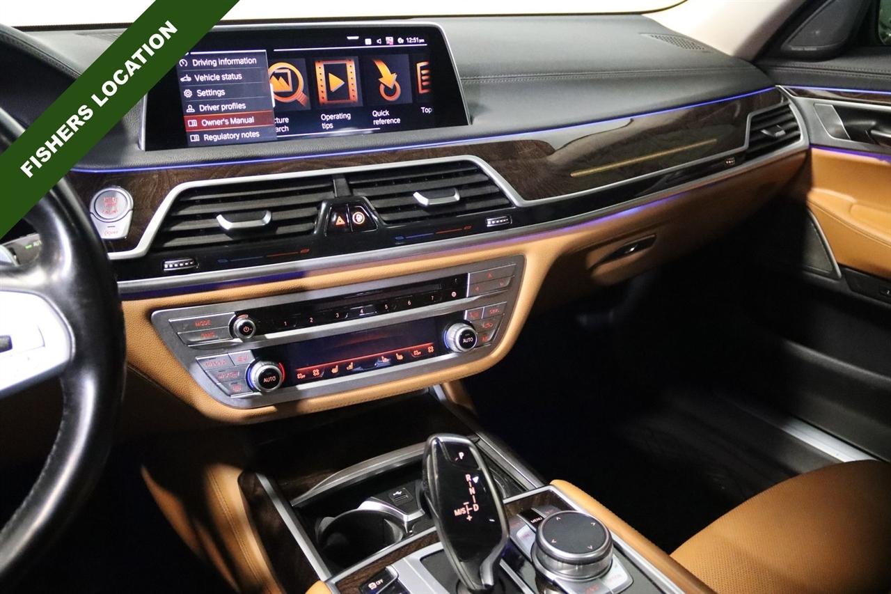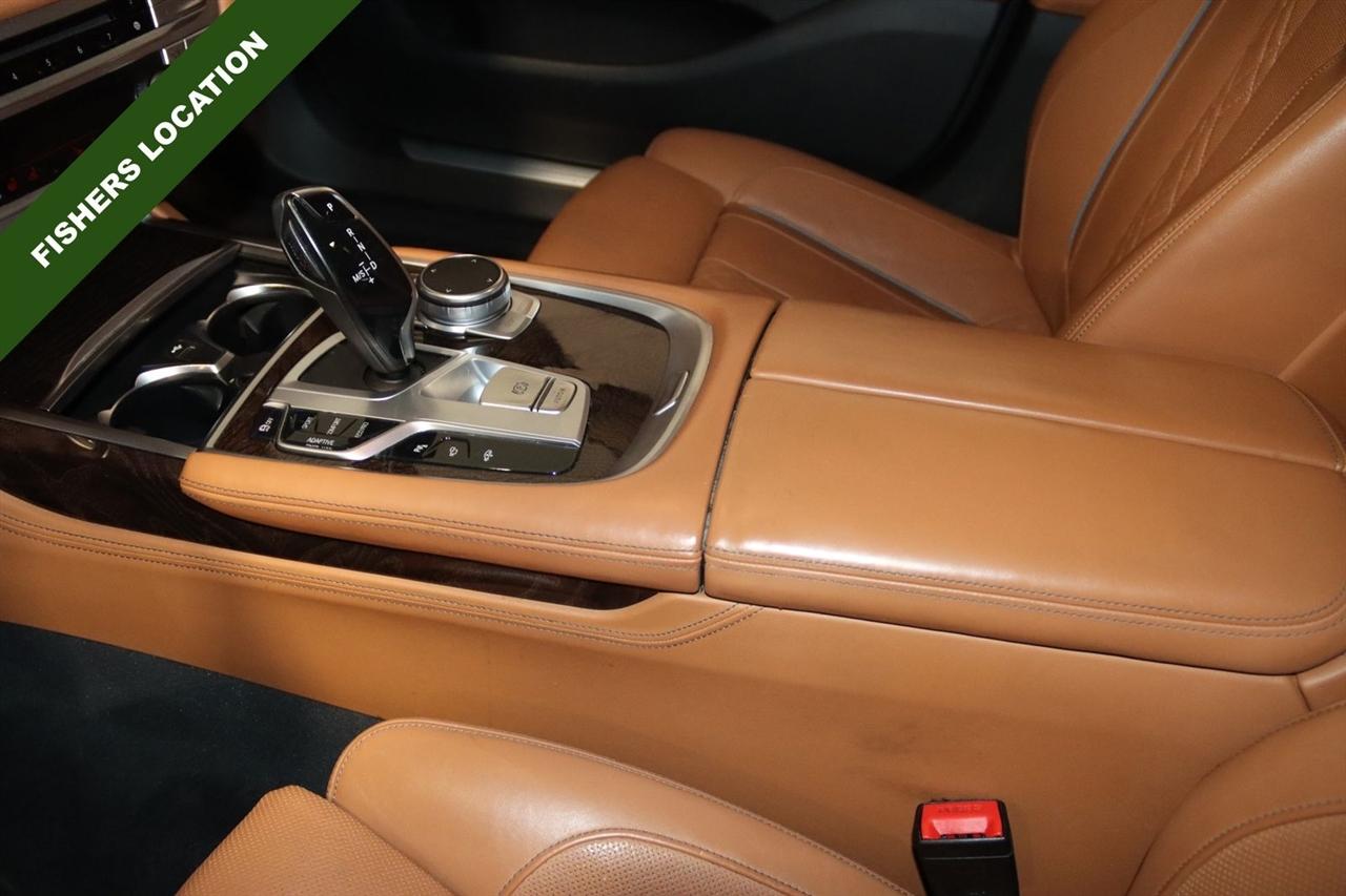 Navigation, Bluetooth, Back Up Camera, Panoramic Roof, Heated Seats, Touch Screen, 16 Speakers, 4-Wheel Disc Brakes, ABS brakes, Adaptive suspension, Air Conditioning, Alloy wheels, AM/FM radio: SiriusXM, Anti-whiplash front head restraints, Apple CarPlay Compatibility, Auto High-beam Headlights, Auto tilt-away steering wheel, Auto-dimming door mirrors, Auto-dimming Rear-View mirror, Auto-leveling suspension, Automatic temperature control, Brake assist, Bumpers: body-color, CD player, Chestnut Wood Trim w/Wooden Inlay, Cold Weather Package, Delay-off headlights, Door auto-latch, Driver door bin, Driver vanity mirror, Dual front impact airbags, Dual front side impact airbags, Electronic Stability Control, Emergency communication system: BMW Assist eCall, Four wheel independent suspension, Front & Rear Heated Seats, Front anti-roll bar, Front Bucket Seats, Front Center Armrest, Front dual zone A/C, Front Massaging Seats, Front reading lights, Front Ventilated Seats, Fully automatic headlights, Garage door transmitter, Genuine wood console insert, Genuine wood dashboard insert, Genuine wood door panel insert, harman/kardon Surround Sound System, harman/kardon® Speakers, Head restraints memory, Heads-Up Display, Heated door mirrors, Heated Front Seats, Heated front seats, Heated Front Seats Armrests & Steering Wheel, Heated steering wheel, Illuminated entry, Knee airbag, Leather Shift Knob, Leather steering wheel, Low tire pressure warning, Memory seat, Multi-Contour Seats, Navigation System, Occupant sensing airbag, Outside temperature display, Overhead airbag, Overhead console, Panic alarm, Passenger door bin, Passenger vanity mirror, Perforated Nappa Leather Upholstery, Power adjustable front head restraints, Power door mirrors, Power driver seat, Power moonroof, Power passenger seat, Power steering, Power windows, Radio data system, Radio: AM/FM/HD w/In-Dash Single CD, Rain sensing wipers, Rear air conditioning, Rear anti-roll bar, Rear dual zone A/C, Rear reading lights, Rear seat center armrest, Rear Window Blind, Rear window defroster, Remote Engine Start, Remote keyless entry, Security system, SiriusXM Satellite Radio, Speed control, Speed-sensing steering, Speed-Sensitive Wipers, Sport steering wheel, Steering wheel memory, Steering wheel mounted audio controls, Tachometer, Telescoping steering wheel, Tilt steering wheel, Traction control, Trip computer, Variably intermittent wipers, Weather band radio, Wheels: 19" x 8.5" Double-Spoke Style 630.