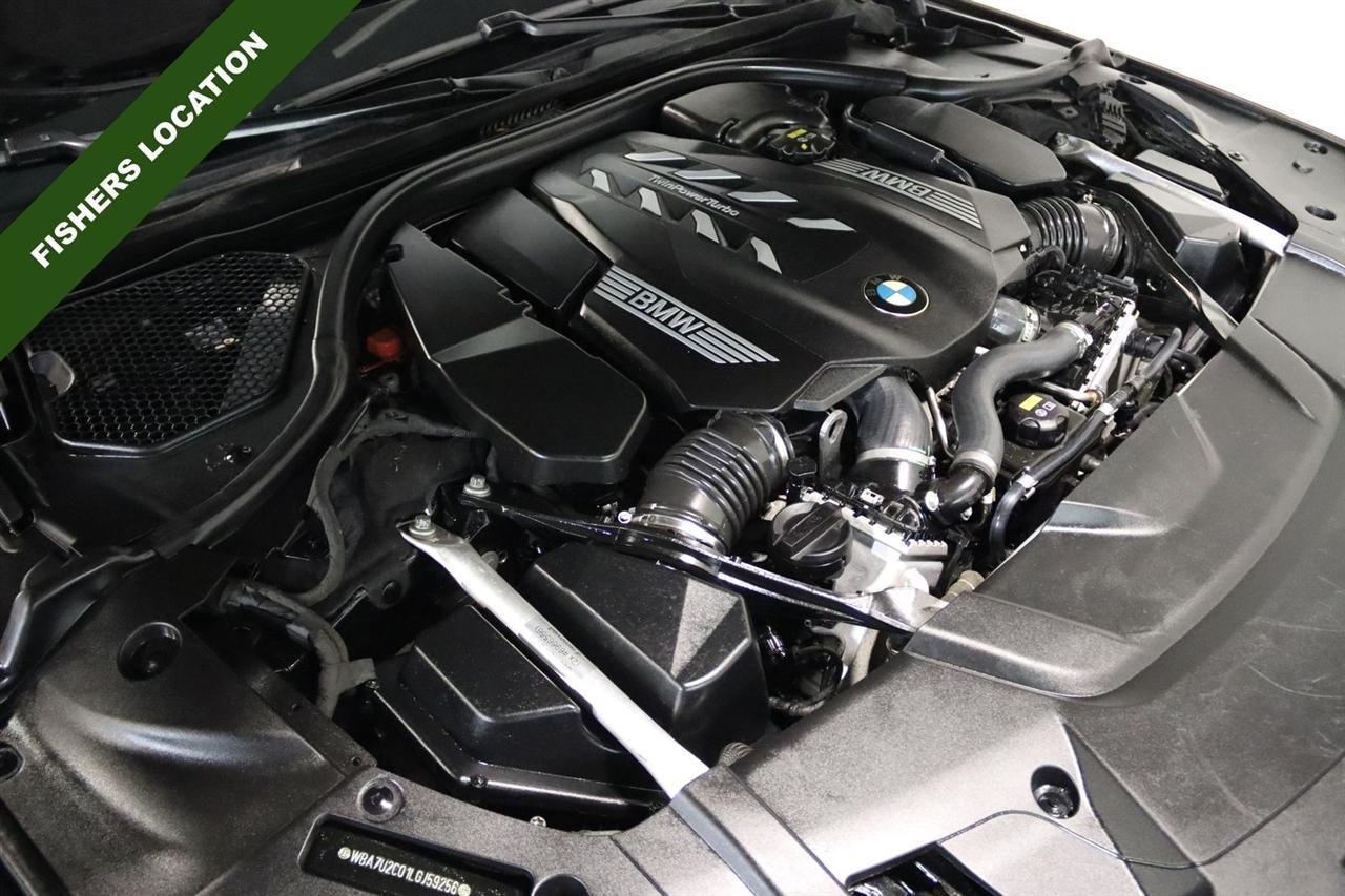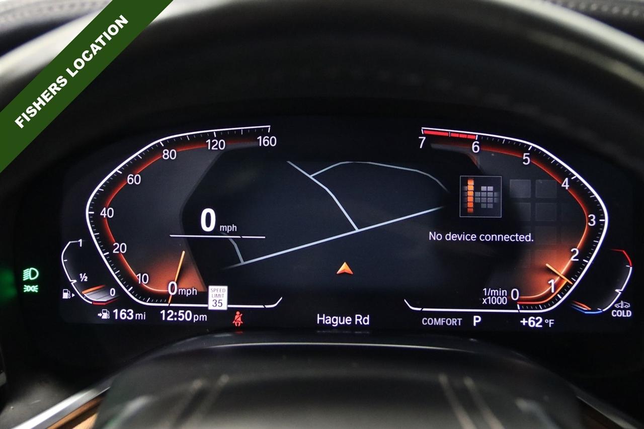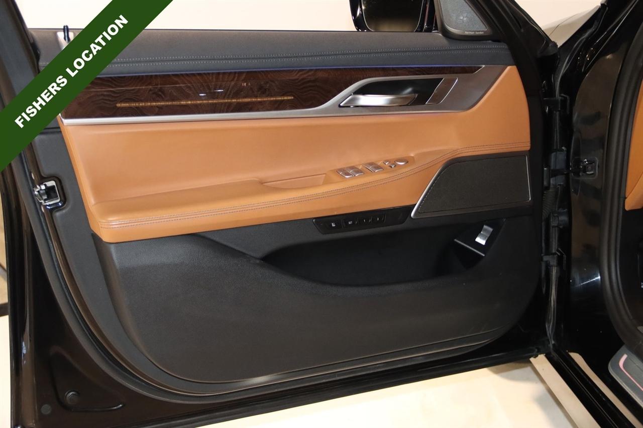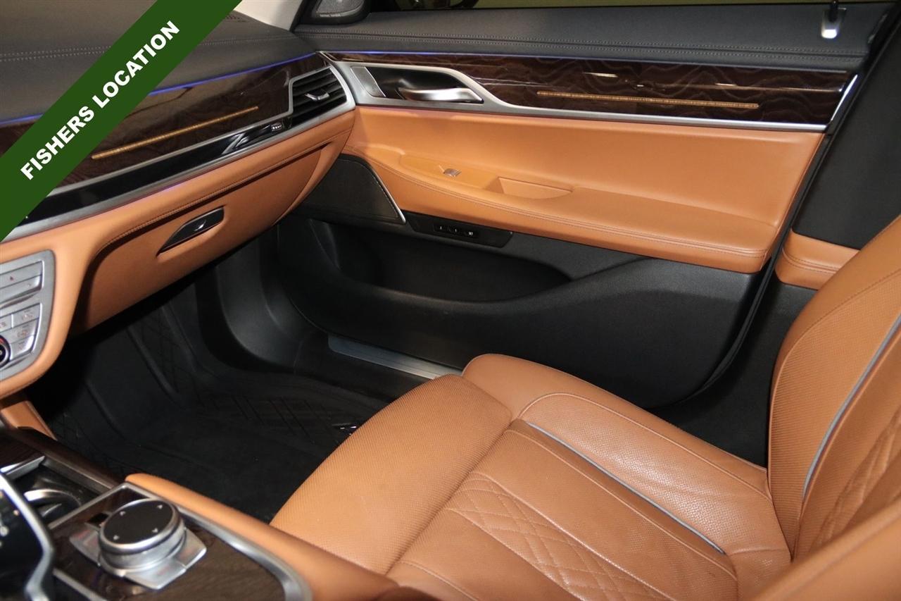 Navigation, Bluetooth, Back Up Camera, Panoramic Roof, Heated Seats, Touch Screen, 16 Speakers, 4-Wheel Disc Brakes, ABS brakes, Adaptive suspension, Air Conditioning, Alloy wheels, AM/FM radio: SiriusXM, Anti-whiplash front head restraints, Apple CarPlay Compatibility, Auto High-beam Headlights, Auto tilt-away steering wheel, Auto-dimming door mirrors, Auto-dimming Rear-View mirror, Auto-leveling suspension, Automatic temperature control, Brake assist, Bumpers: body-color, CD player, Chestnut Wood Trim w/Wooden Inlay, Cold Weather Package, Delay-off headlights, Door auto-latch, Driver door bin, Driver vanity mirror, Dual front impact airbags, Dual front side impact airbags, Electronic Stability Control, Emergency communication system: BMW Assist eCall, Four wheel independent suspension, Front & Rear Heated Seats, Front anti-roll bar, Front Bucket Seats, Front Center Armrest, Front dual zone A/C, Front Massaging Seats, Front reading lights, Front Ventilated Seats, Fully automatic headlights, Garage door transmitter, Genuine wood console insert, Genuine wood dashboard insert, Genuine wood door panel insert, harman/kardon Surround Sound System, harman/kardon® Speakers, Head restraints memory, Heads-Up Display, Heated door mirrors, Heated Front Seats, Heated front seats, Heated Front Seats Armrests & Steering Wheel, Heated steering wheel, Illuminated entry, Knee airbag, Leather Shift Knob, Leather steering wheel, Low tire pressure warning, Memory seat, Multi-Contour Seats, Navigation System, Occupant sensing airbag, Outside temperature display, Overhead airbag, Overhead console, Panic alarm, Passenger door bin, Passenger vanity mirror, Perforated Nappa Leather Upholstery, Power adjustable front head restraints, Power door mirrors, Power driver seat, Power moonroof, Power passenger seat, Power steering, Power windows, Radio data system, Radio: AM/FM/HD w/In-Dash Single CD, Rain sensing wipers, Rear air conditioning, Rear anti-roll bar, Rear dual zone A/C, Rear reading lights, Rear seat center armrest, Rear Window Blind, Rear window defroster, Remote Engine Start, Remote keyless entry, Security system, SiriusXM Satellite Radio, Speed control, Speed-sensing steering, Speed-Sensitive Wipers, Sport steering wheel, Steering wheel memory, Steering wheel mounted audio controls, Tachometer, Telescoping steering wheel, Tilt steering wheel, Traction control, Trip computer, Variably intermittent wipers, Weather band radio, Wheels: 19" x 8.5" Double-Spoke Style 630.
