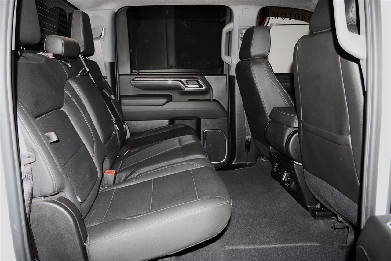 Bluetooth, Back Up Camera, Heated Seats, Touch Screen, 10-Way Power Driver Seat Adjuster w/Lumbar, 10-Way Power Passenger Seat Adjuster w/Lumbar, 120-Volt Bed Mounted Power Outlet, 120-Volt Interior Power Outlet, 170 Amp Alternator, 220 Amp Alternator, 3.42 Rear Axle Ratio, 4-Wheel Disc Brakes, 6 Speakers, 6-Speaker Audio System, 720 Cold-Cranking Amps Heavy-Duty Battery, ABS brakes, Air Conditioning, Alloy wheels, AM/FM radio: SiriusXM with 360L, Apple CarPlay/Android Auto, Auto High-beam Headlights, Auto-dimming door mirrors, Auto-Dimming Inside Rear-View Mirror, Auto-dimming Rear-View mirror, Automatic temperature control, Bluetooth® For Phone, Brake assist, Bumpers: chrome, Chevrolet Connected Access Capable, Chrome Door Handles, Chrome Mirror Caps, Color-Keyed Carpeting Floor Covering, Compass, Deep-Tinted Glass, Delay-off headlights, Deleted 3 Years of Remote Access, Driver door bin, Driver Memory, Driver vanity mirror, Dual front impact airbags, Dual front side impact airbags, Durabed Pickup Bed, Electric Rear-Window Defogger, Electronic Cruise Control w/Set & Resume Speed, Electronic Stability Control, Engine Block Heater, Exhaust Brake, EZ Lift Power Lock & Release Tailgate, Front 40/20/40 Split-Bench Seats w/Lockable Storage, Front anti-roll bar, Front Center Armrest w/Storage, Front dual zone A/C, Front fog lights, Front LED Fog Lamps, Front License Plate Kit, Front Rain-Sensing Wipers, Front reading lights, Front Rubberized Vinyl Floor Mats, Front wheel independent suspension, Fully automatic headlights, HD Rear Vision Camera, Heated door mirrors, Heated Driver & Front Outboard Passenger Seating, Heated front seats, Heated Steering Wheel, Heated steering wheel, Hitch Guidance w/Hitch View, Illuminated entry, In-Vehicle Trailering App System, Keyless Open & Start, LED Taillamps w/Fixed Signature, Low tire pressure warning, Manual Tilt & Telescoping Steering Column, Memory seat, Occupant sensing airbag, OnStar & Chevrolet Connected Services Capable, Outside temperature display, Overhead airbag, Overhead console, Panic alarm, Passenger door bin, Passenger vanity mirror, Perf Leather-Appointed Front Outboard Seat Trim, Power Door Locks, Power door mirrors, Power driver seat, Power Front Windows w/Driver Express Up/Down, Power Front Windows w/Passenger Express Up/Down, Power passenger seat, Power Rear Windows w/Express Down, Power steering, Power windows, Preferred Equipment Group 1LZ, Premium audio system: Chevrolet Infotainment 3 Premium, Push Button Start, Radio: Chevrolet Infotainment 3 Premium System, Rain sensing wipers, Rear reading lights, Rear Rubberized Vinyl Floor Mats, Rear seat center armrest, Rear step bumper, Rear Wheelhouse Liners, Rear window defroster, Remote keyless entry, Remote Vehicle Starter System, Security system, SiriusXM w/360L, Speed control, Speed-sensing steering, Split folding rear seat, Standard Tailgate, Steering Wheel Audio Controls, Steering wheel mounted audio controls, Suspension Package, Tachometer, Telescoping steering wheel, Tilt steering wheel, Traction control, Trip computer, Turn signal indicator mirrors, Unauthorized Entry Theft-Deterrent System, Up-Level Rear Seat w/Storage Package, Variably intermittent wipers, Voltmeter, Wheels: 18" Machined Alum w/Silver Painted Accents, Wi-Fi Hotspot Capable, Winter Grille Cover, Wireless Phone Projection, Wrapped Steering Wheel. CARFAX One-Owner. Clean CARFAX. Odometer is 30276 miles below market average! Priced below KBB Fair Purchase Price!