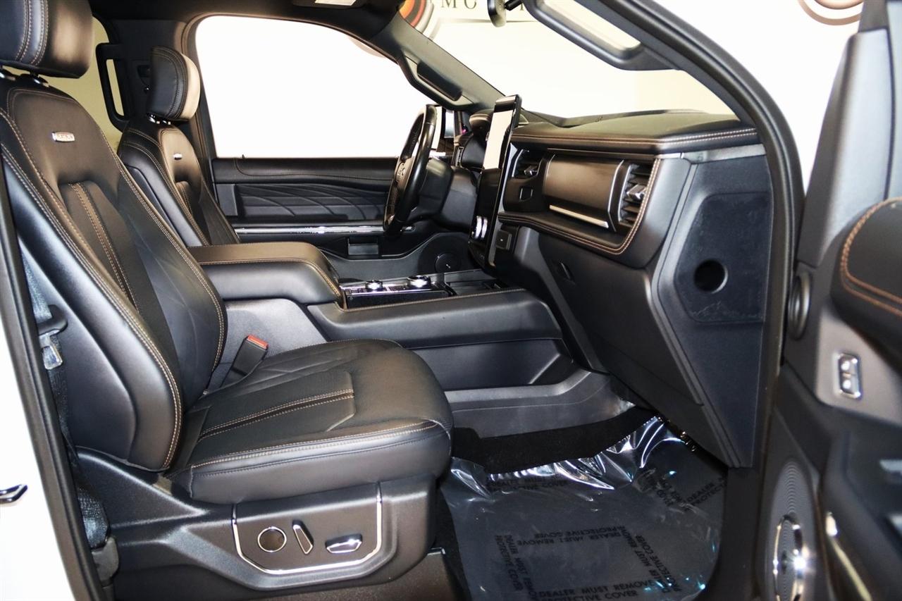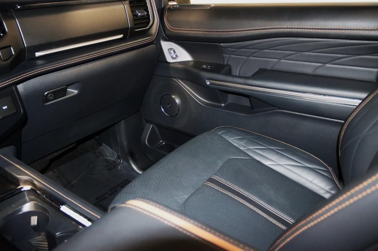 Navigation, Bluetooth, Back Up Camera, Panoramic Roof, 3rd Row, Heated Seats, Touch Screen, 22 Speakers, 26mm Engine Radiator, 3.73 Axle Ratio, 360-Degree Camera w/Trailer Reverse Guidance, 3rd row seats: split-bench, 4-Wheel Disc Brakes, ABS brakes, Active Park Assist 2.0 Removal, Adaptive suspension, Adjustable pedals, Air Conditioning, Alloy wheels, AM/FM radio: SiriusXM with 360L, Auto High-beam Headlights, Auto-dimming door mirrors, Auto-dimming Rear-View mirror, Automatic temperature control, Black Roof-Rail Crossbars, Brake assist, Bumpers: body-color, Compass, Continuous Controlled Damping (CCD), ControlTrac w/3.73 Axle Ratio, Delay-off headlights, Driver door bin, Driver vanity mirror, Dual front impact airbags, Dual front side impact airbags, Electronic Stability Control, Emergency communication system: SYNC 4 911 Assist, Equipment Group 600A Standard Package, Exterior Parking Camera Rear, Four wheel independent suspension, Front anti-roll bar, Front Bucket Seats, Front Center Armrest, Front dual zone A/C, Front fog lights, Front reading lights, Fully automatic headlights, Garage door transmitter, Genuine wood console insert, Genuine wood dashboard insert, Genuine wood door panel insert, Hands-Free Foot-Activated Liftgate Removal (DISC), Heated door mirrors, Heated front seats, Heated rear seats, Heated steering wheel, Heavy-Duty Trailer Tow Package, Htd/Ventilated Prem Lthr Front Captain's Chairs (DISC), Illuminated entry, Integrated Trailer Brake Controller, Leather steering wheel, Low tire pressure warning, Memory seat, Navigation System, Navigation system: Connected Navigation, Occupant sensing airbag, Outside temperature display, Overhead airbag, Overhead console, Panic alarm, Passenger door bin, Passenger vanity mirror, Pedal memory, Power door mirrors, Power driver seat, Power Liftgate, Power moonroof, Power passenger seat, Power steering, Power windows, Pro Trailer Backup Assist, Radio data system, Radio: B&O Unleashed Sound System by Bang & Olufsen, Rain sensing wipers, Rear air conditioning, Rear anti-roll bar, Rear audio controls, Rear reading lights, Rear window defroster, Rear window wiper, Reclining 3rd row seat, Remote keyless entry, Second Row Power Windows Removal, Security system, SiriusXM w/360L, Speed control, Speed-sensing steering, Speed-Sensitive Wipers, Split folding rear seat, Spoiler, Steering wheel memory, Steering wheel mounted audio controls, SYNC 4 w/Enhanced Voice Recognition, Tachometer, Telescoping steering wheel, Tilt steering wheel, Traction control, Trip computer, Turn signal indicator mirrors, Variably intermittent wipers, Ventilated front seats, Voltmeter, Wheels: 22" 6-Spoke Polished Aluminum. CARFAX One-Owner. Clean CARFAX.