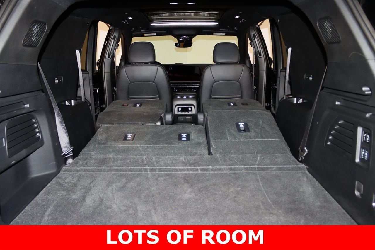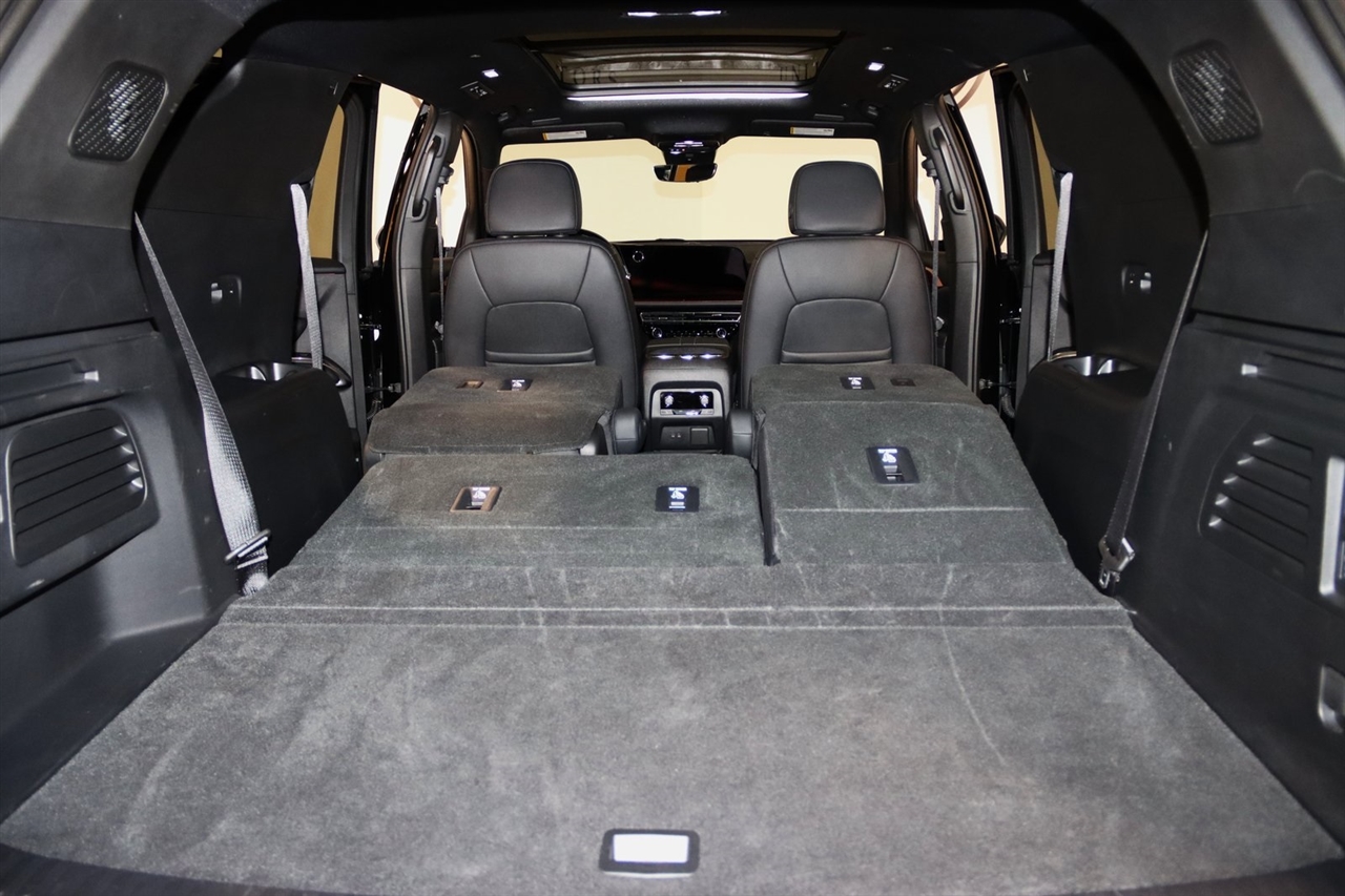 Navigation, Bluetooth, Back Up Camera, Panoramic Roof, 3rd Row, Heated Seats, Touch Screen, 10 Speakers, 1st & 2nd Row All-Weather Floor Liners (LPO), 3rd Row All-Weather Floor Liner (LPO), 3rd row seats: split-bench, 4-Wheel Disc Brakes, 6-Way Power Front Passenger Seat Adjuster, 8-Way Power Driver Seat Adjuster, ABS brakes, Air Conditioning, Alloy wheels, AM/FM radio: SiriusXM with 360L, Apple CarPlay/Android Auto, Auto High-beam Headlights, Auto-dimming door mirrors, Automatic temperature control, Bose Premium 10-Speaker Audio System Feature, Brake assist, Bumpers: body-color, Compass, Delay-off headlights, Driver 4-Way Power Lumbar Seat Adjuster, Driver door bin, Driver vanity mirror, Dual front impact airbags, Dual front side impact airbags, Electronic Stability Control, Emergency communication system, Exterior Parking Camera Rear, Floor Liner Package (LPO), Four wheel independent suspension, Front anti-roll bar, Front Bucket Seats, Front Center Armrest, Front dual zone A/C, Front Passenger 4-Way Power Lumbar Seat Adjuster, Front reading lights, Fully automatic headlights, Heated door mirrors, Heated front seats, Heated rear seats, Heated steering wheel, Illuminated entry, Low tire pressure warning, Navigation System, Not Equipped w/Heated Wiper Park, Occupant sensing airbag, Outside temperature display, Overhead airbag, Overhead console, Panic alarm, Passenger door bin, Passenger vanity mirror, Perforated Leather-Appointed Seat Trim, Power door mirrors, Power driver seat, Power Liftgate, Power moonroof, Power passenger seat, Power steering, Power windows, Preferred Equipment Group 2RS, Radio data system, Radio: 17.7" Diagonal Display, Rain sensing wipers, Rear air conditioning, Rear anti-roll bar, Rear reading lights, Rear window defroster, Rear window wiper, Remote keyless entry, Security system, SiriusXM w/360L, Speed control, Speed-sensing steering, Spoiler, Sport steering wheel, Steering wheel mounted audio controls, Tachometer, TBD Axle Ratio, Telescoping steering wheel, Tilt steering wheel, Traction control, Trip computer, Turn signal indicator mirrors, Variably intermittent wipers, Ventilated front seats, Voltmeter, Wheels: 22" High Gloss Black Painted Aluminum. Clean CARFAX.